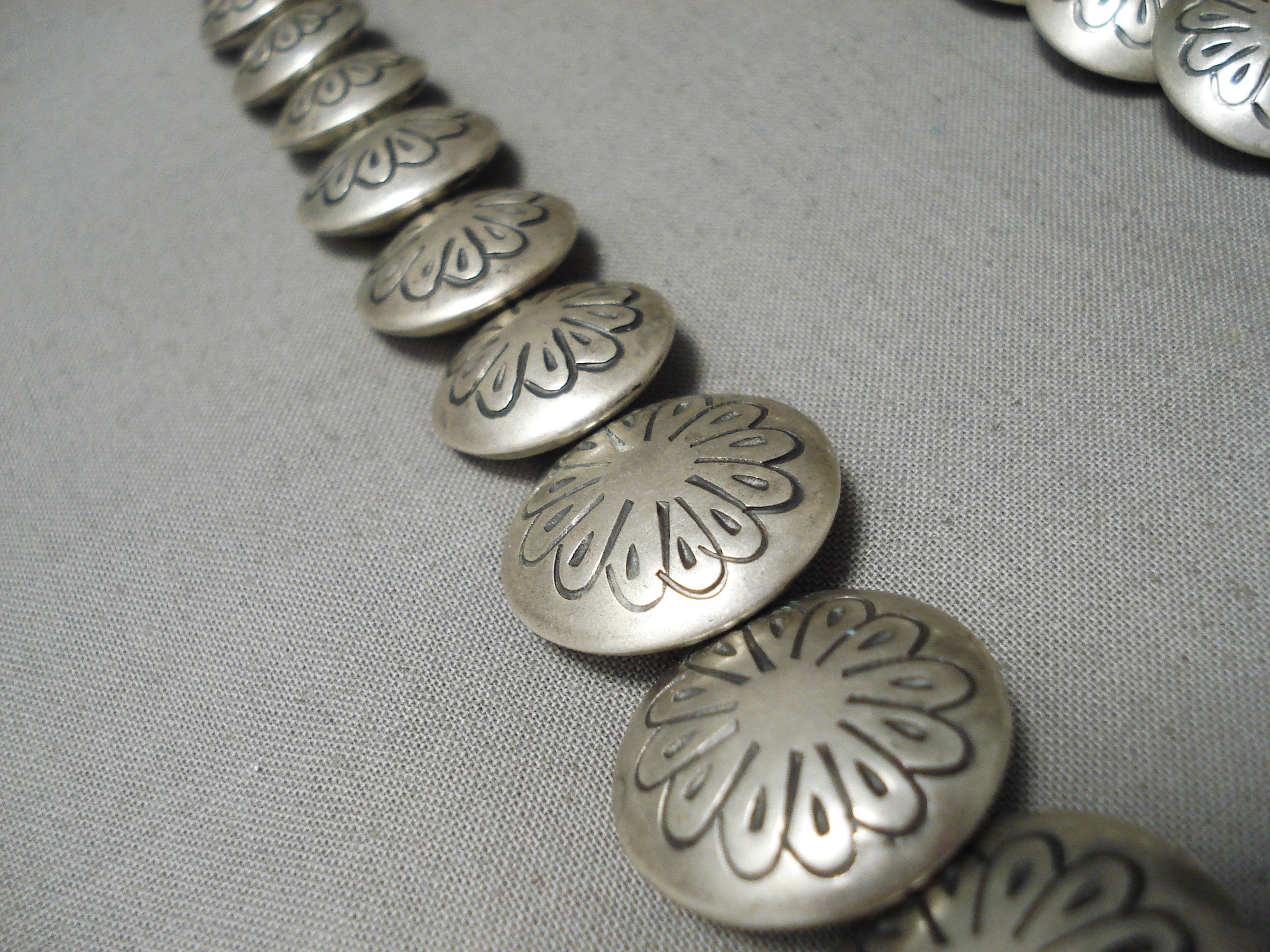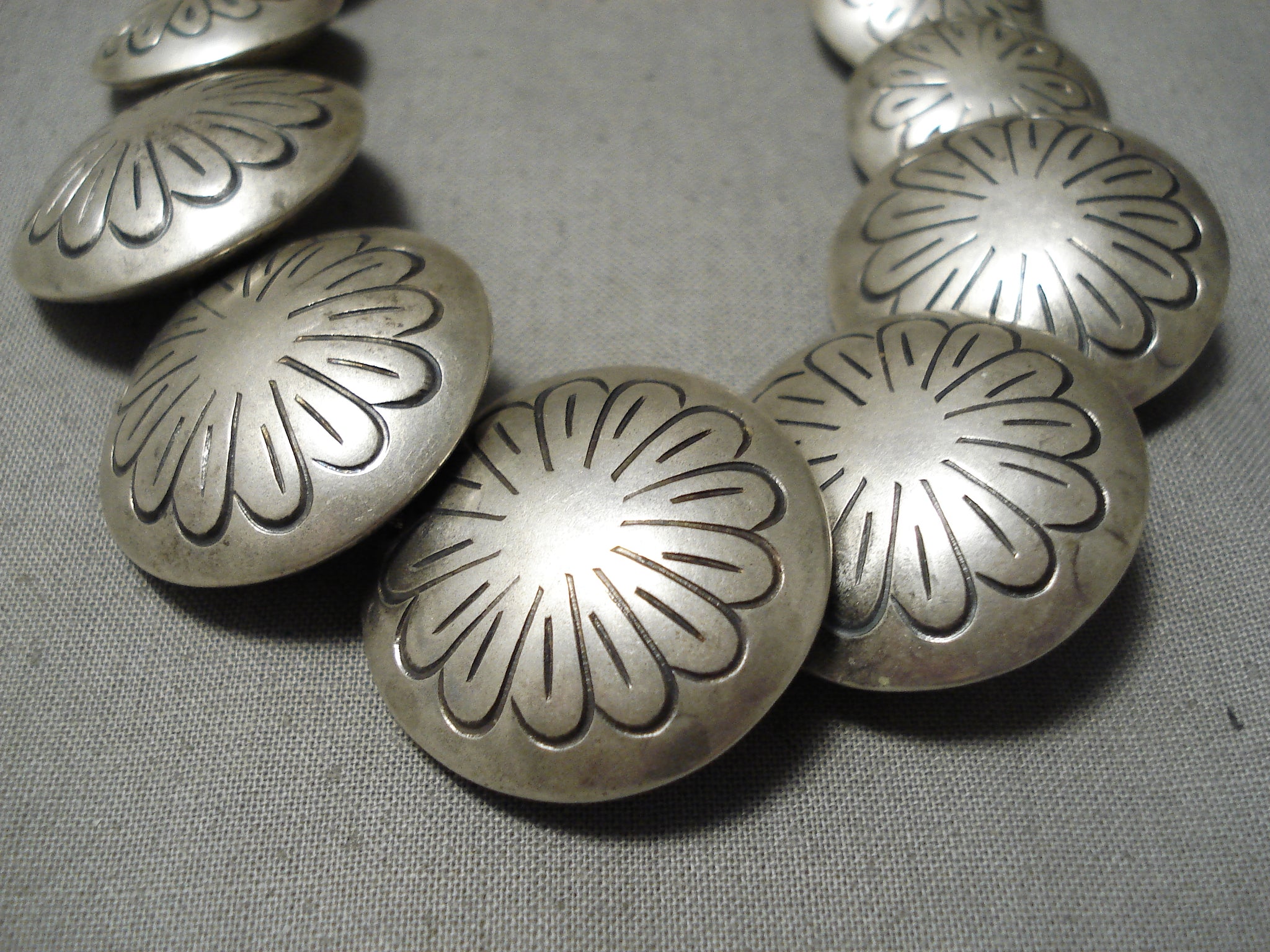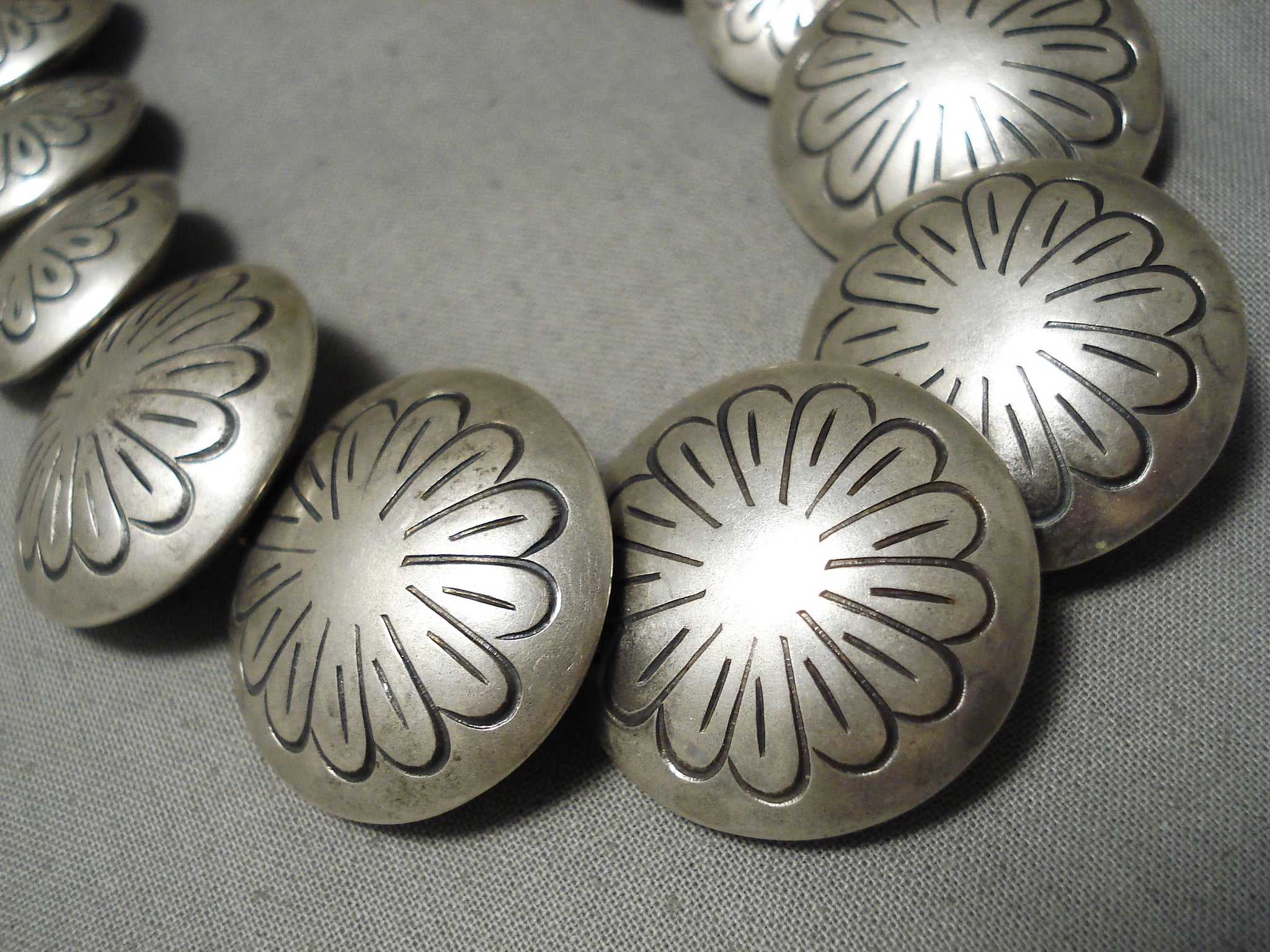 Heavy Museum Quality Vintage Native American Navajo Hand Tooled Sterling Silver Bead Necklace
