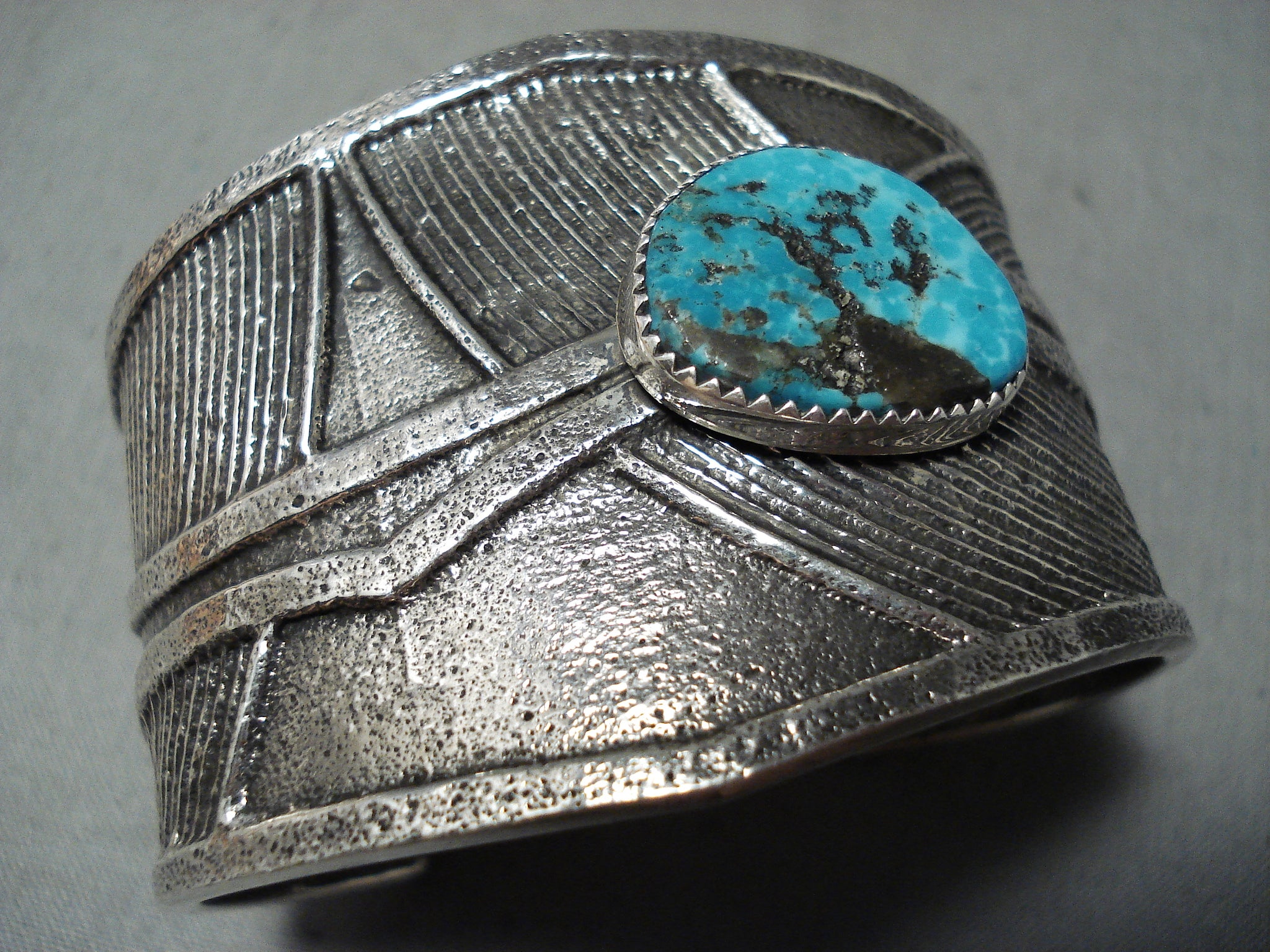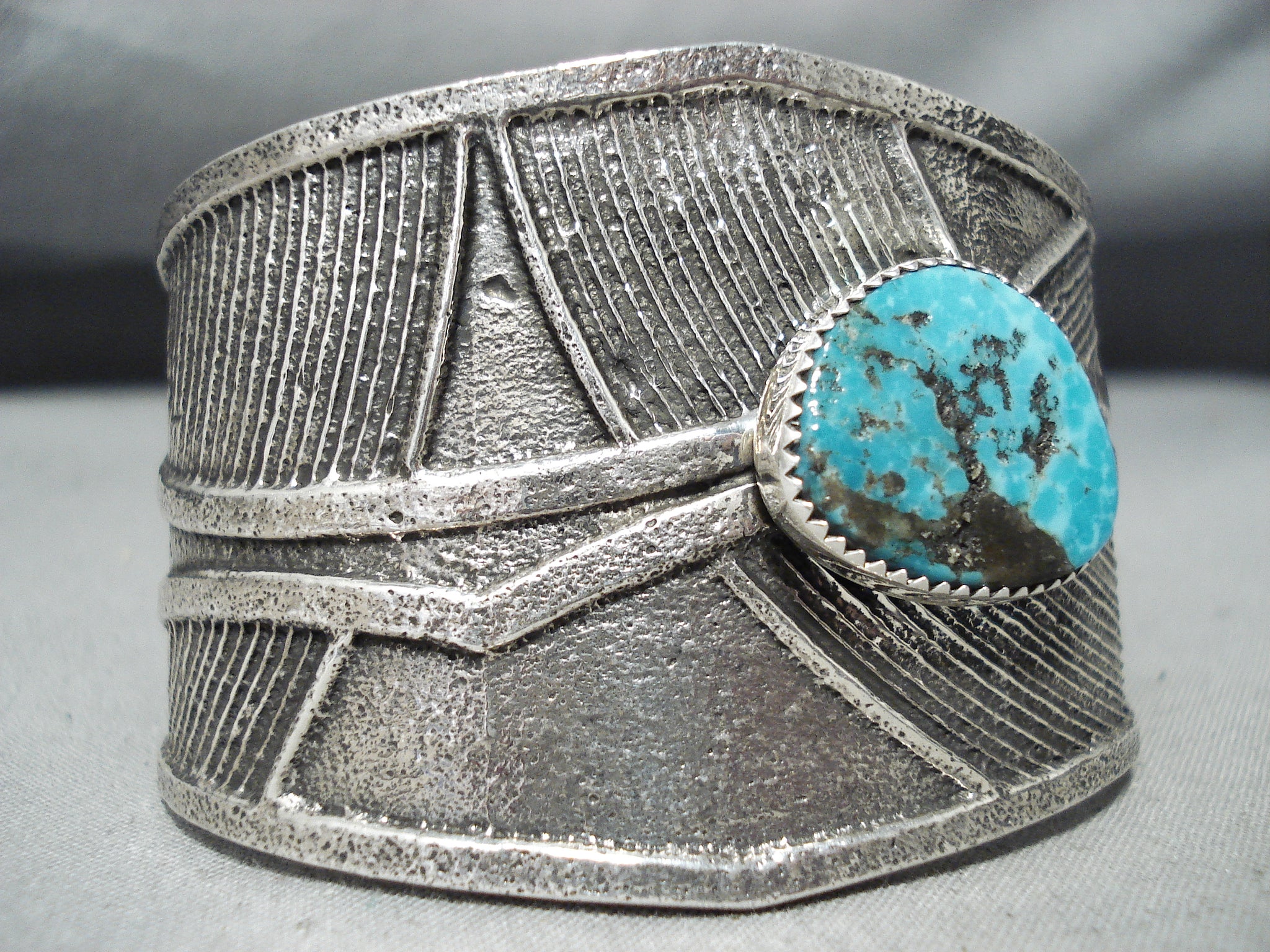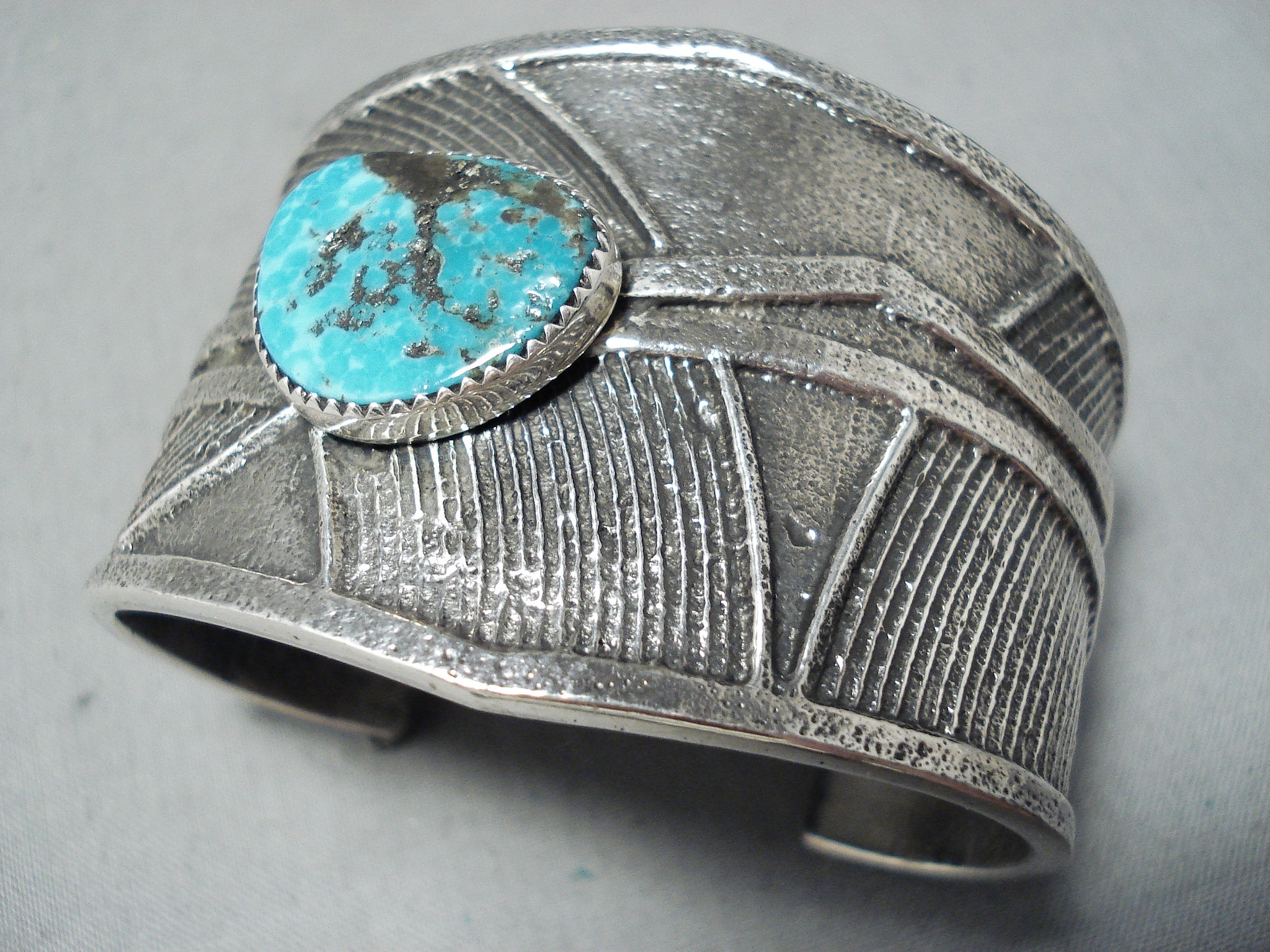 Heavy Navajo Native American Old Kingman Turquoise Sterling Silver Bracelet