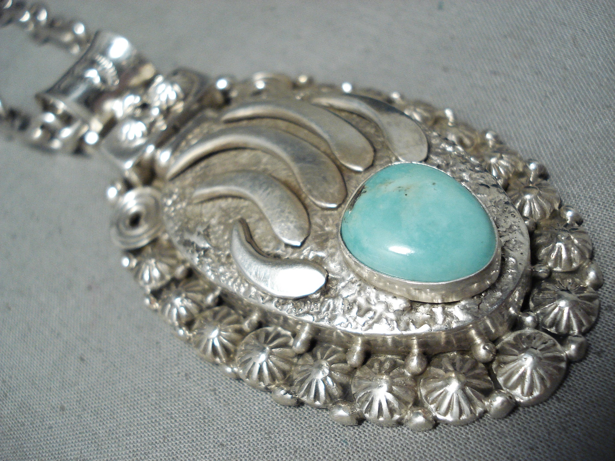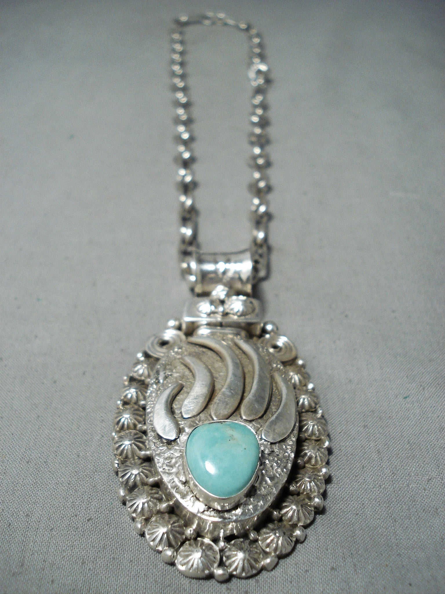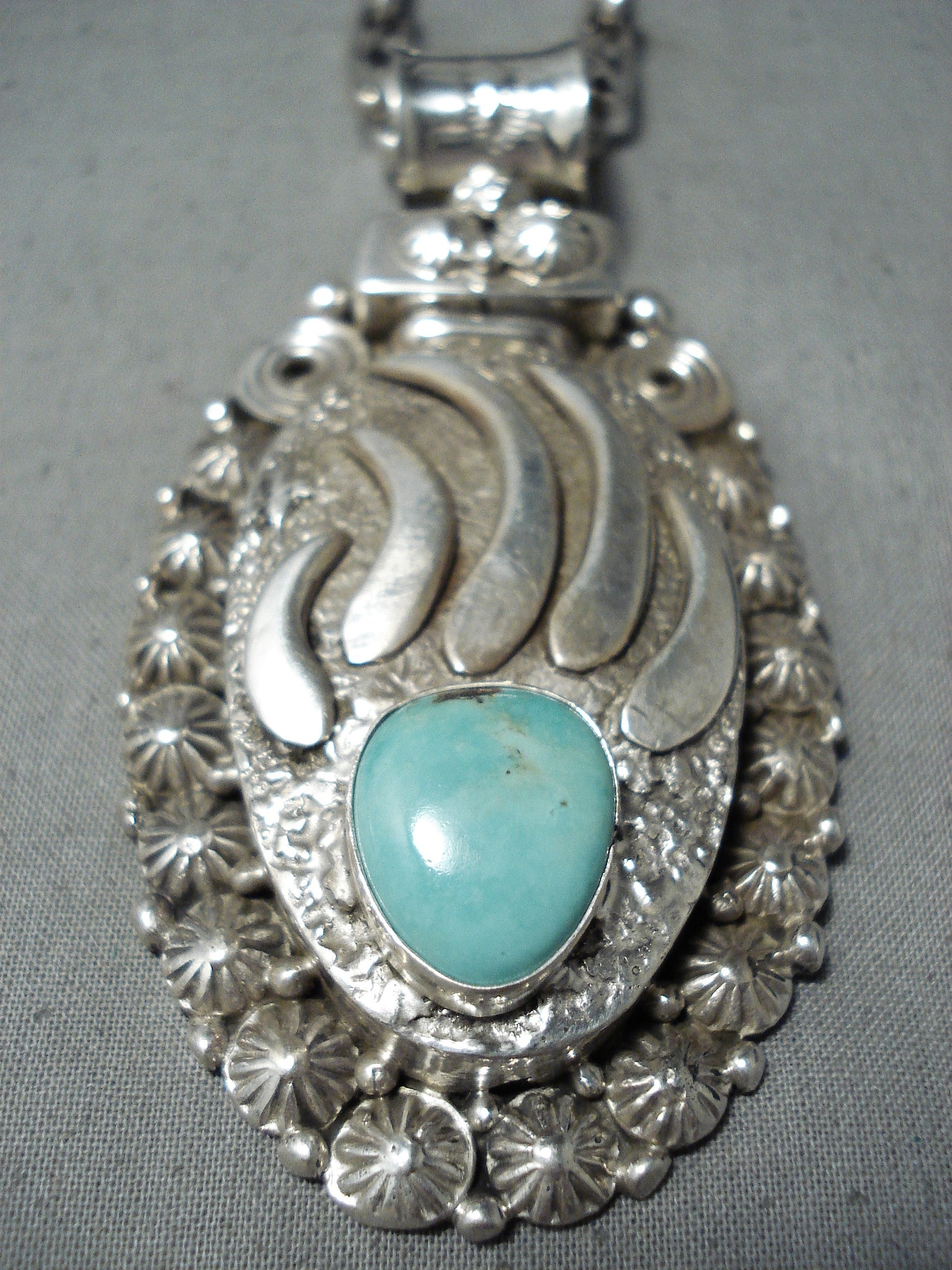 Heavy Navajo Royston Turquoise Sterling Silver Necklace Native American