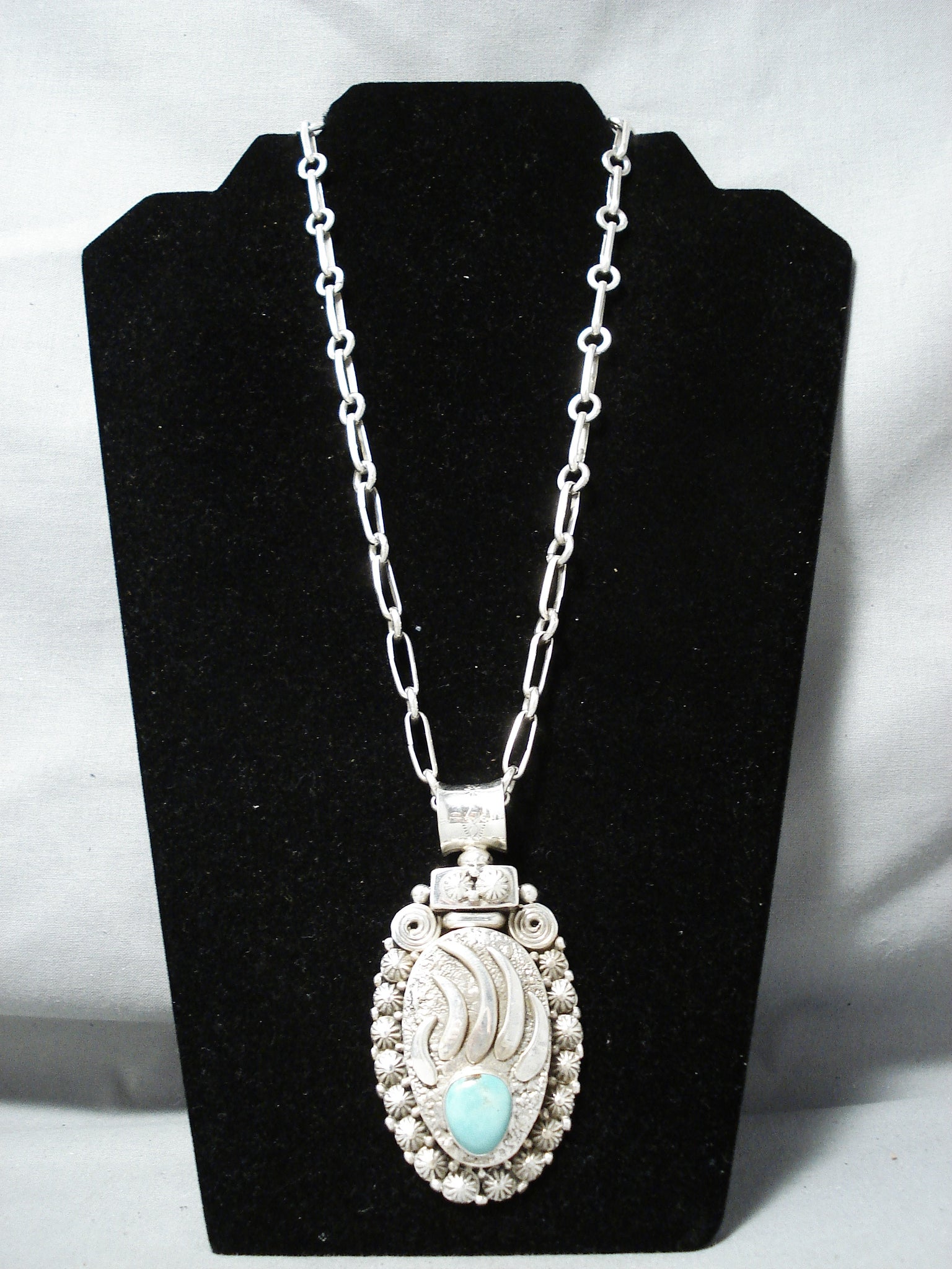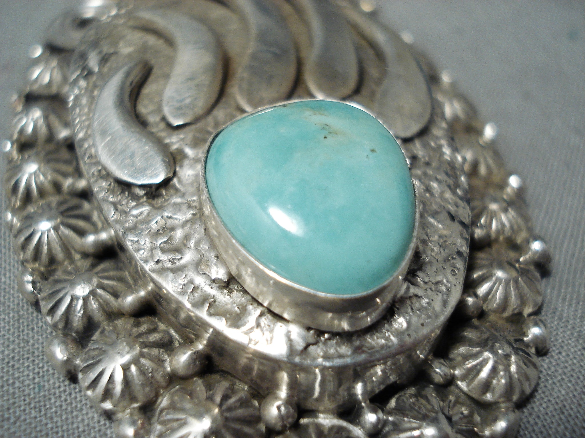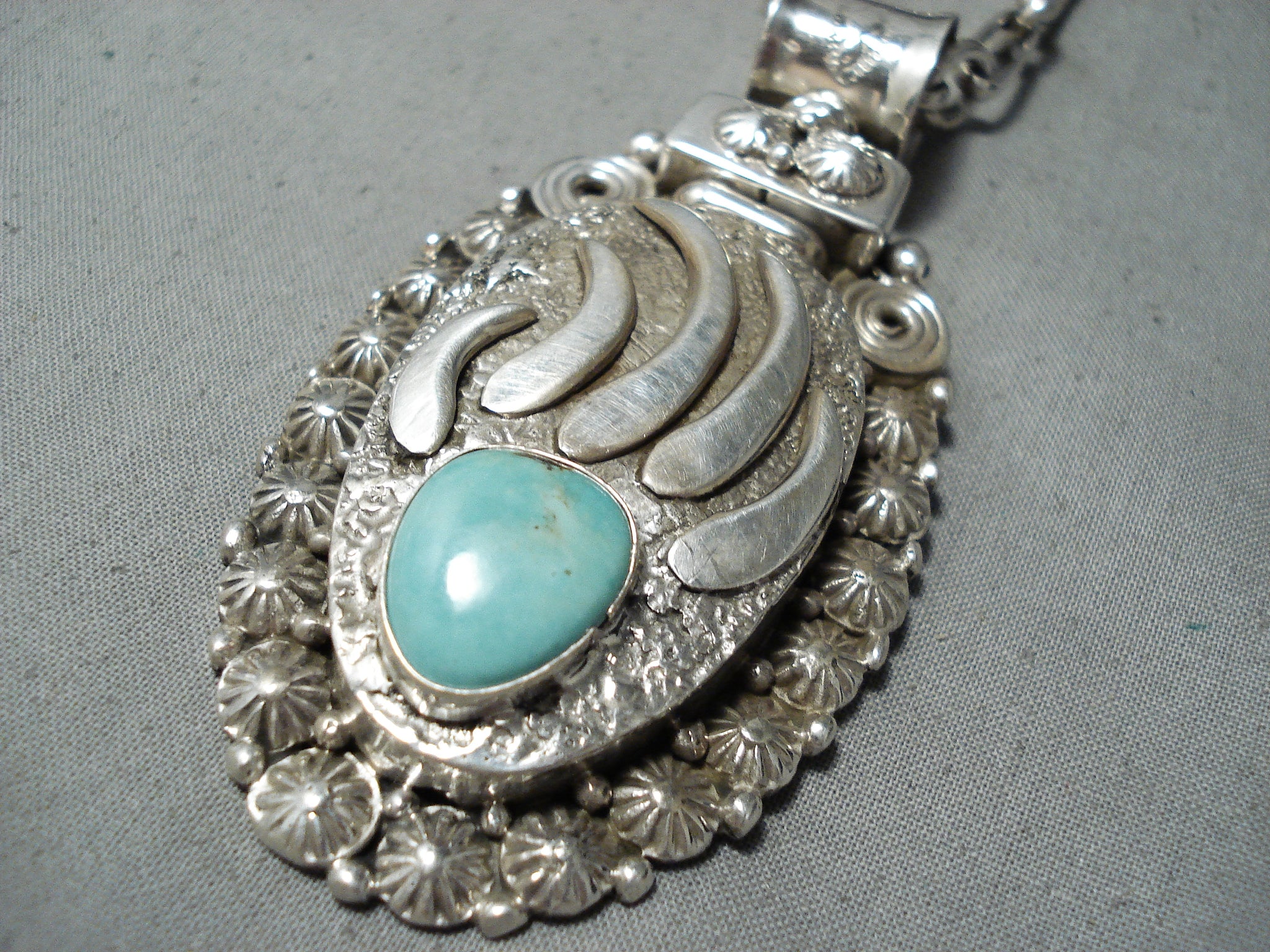 Heavy Navajo Royston Turquoise Sterling Silver Necklace Native American