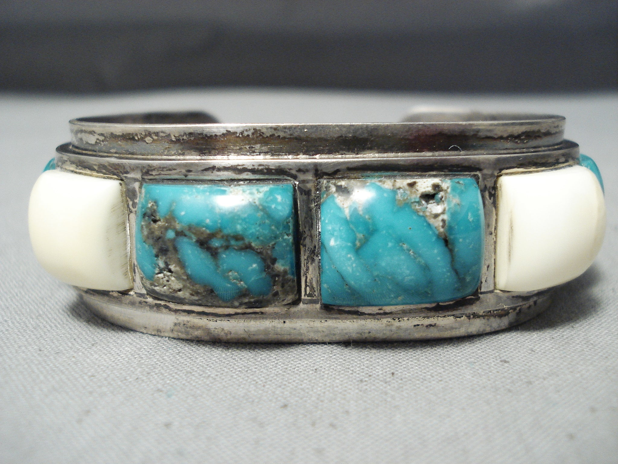 Heavy Opulent Vintage Native American Navajo Blue Diamond Turquoise Sterling Silver Bracelet