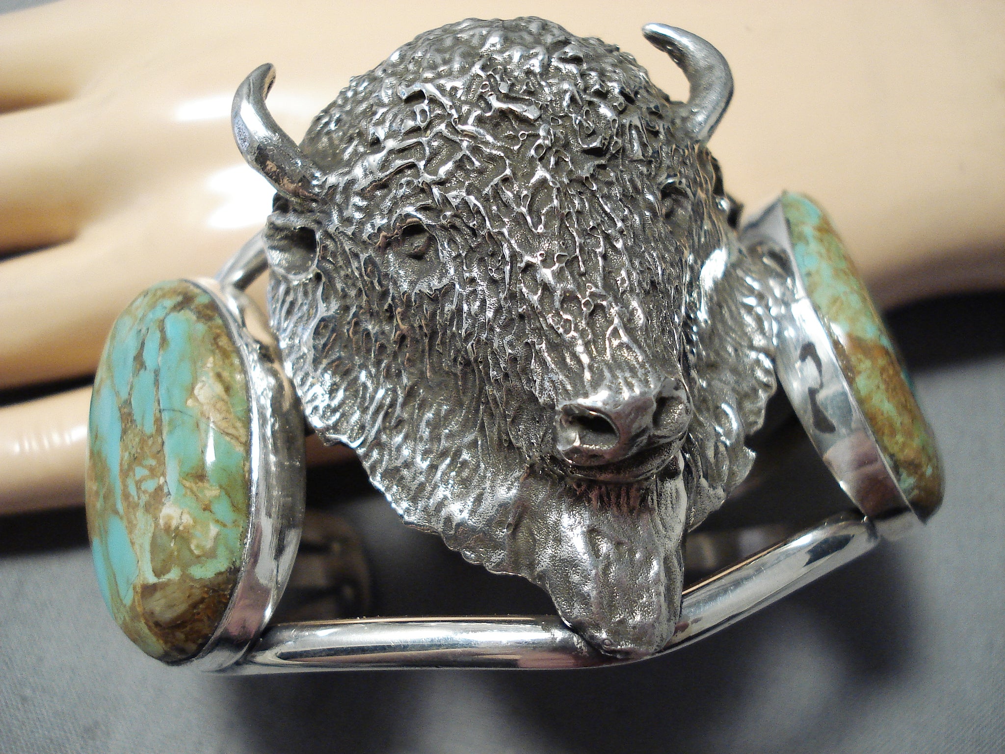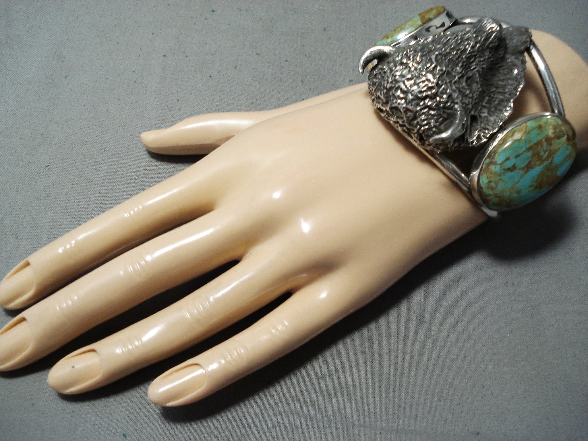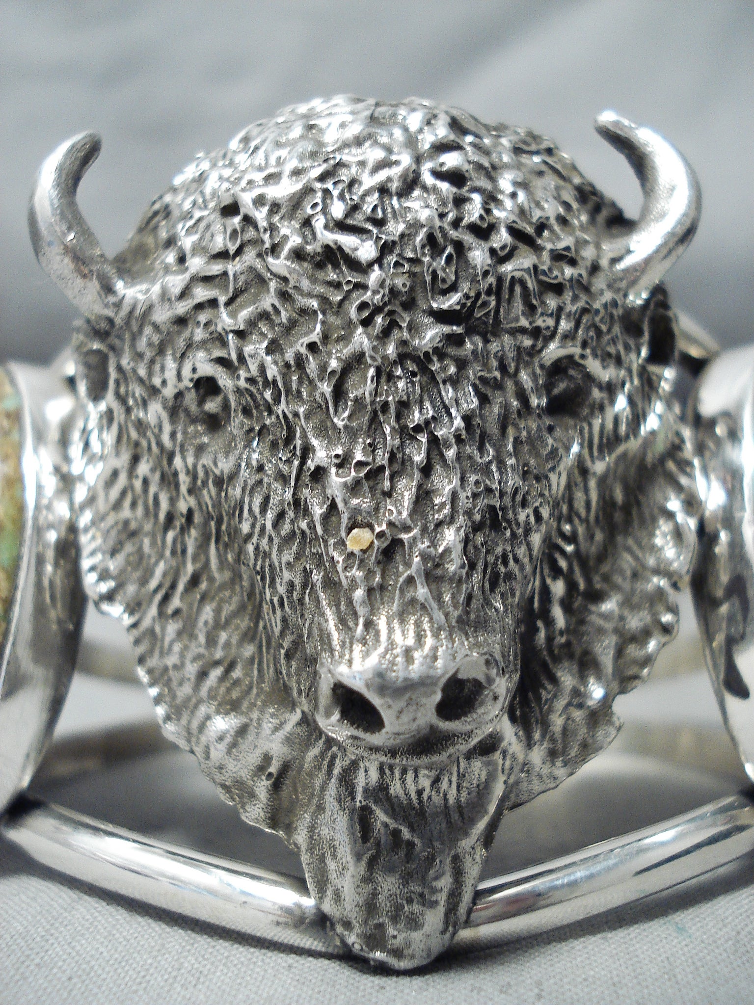 Heavy San Felipe 8 Turquoise Sterling Silver Buffalo Bracelet