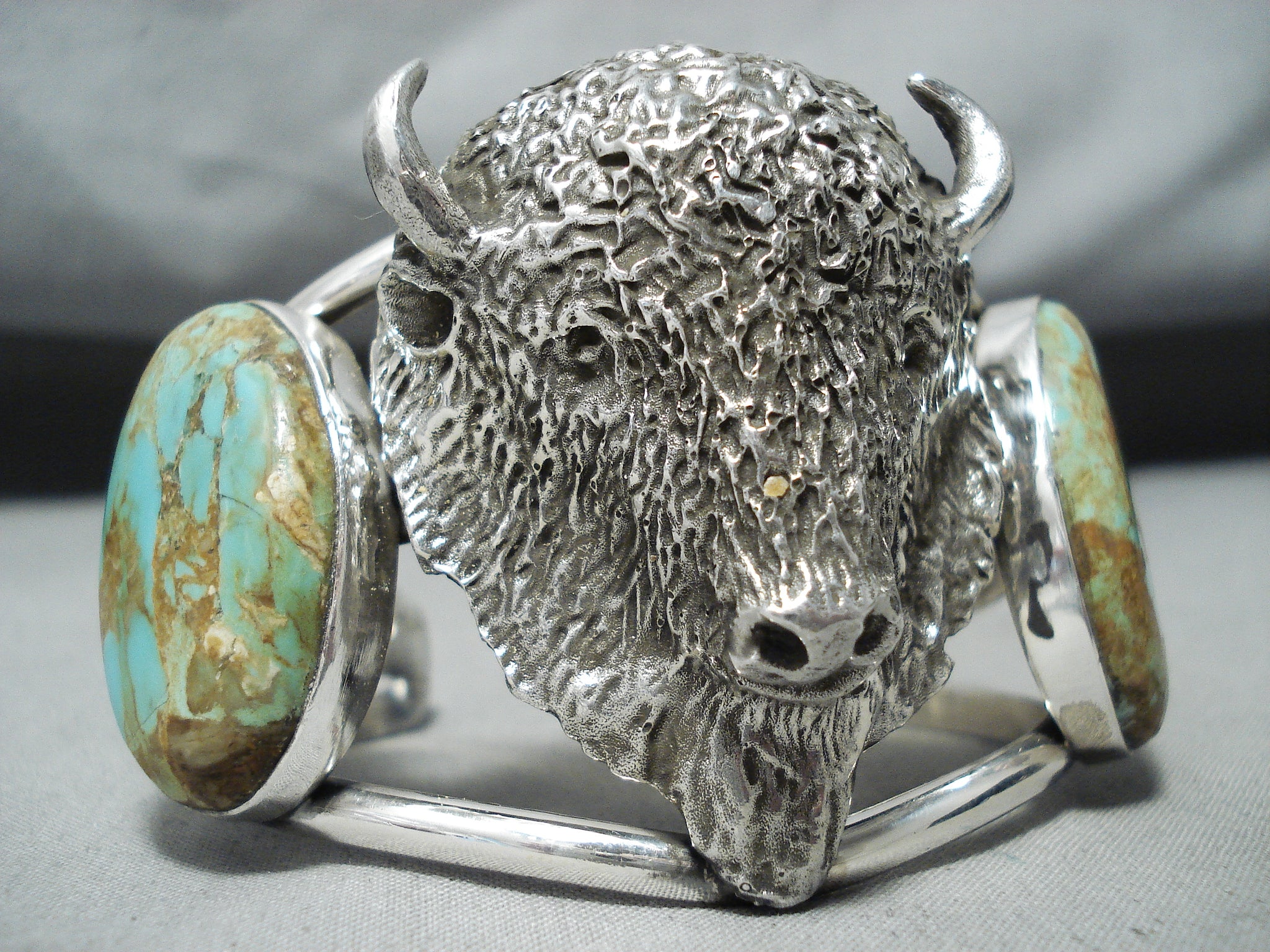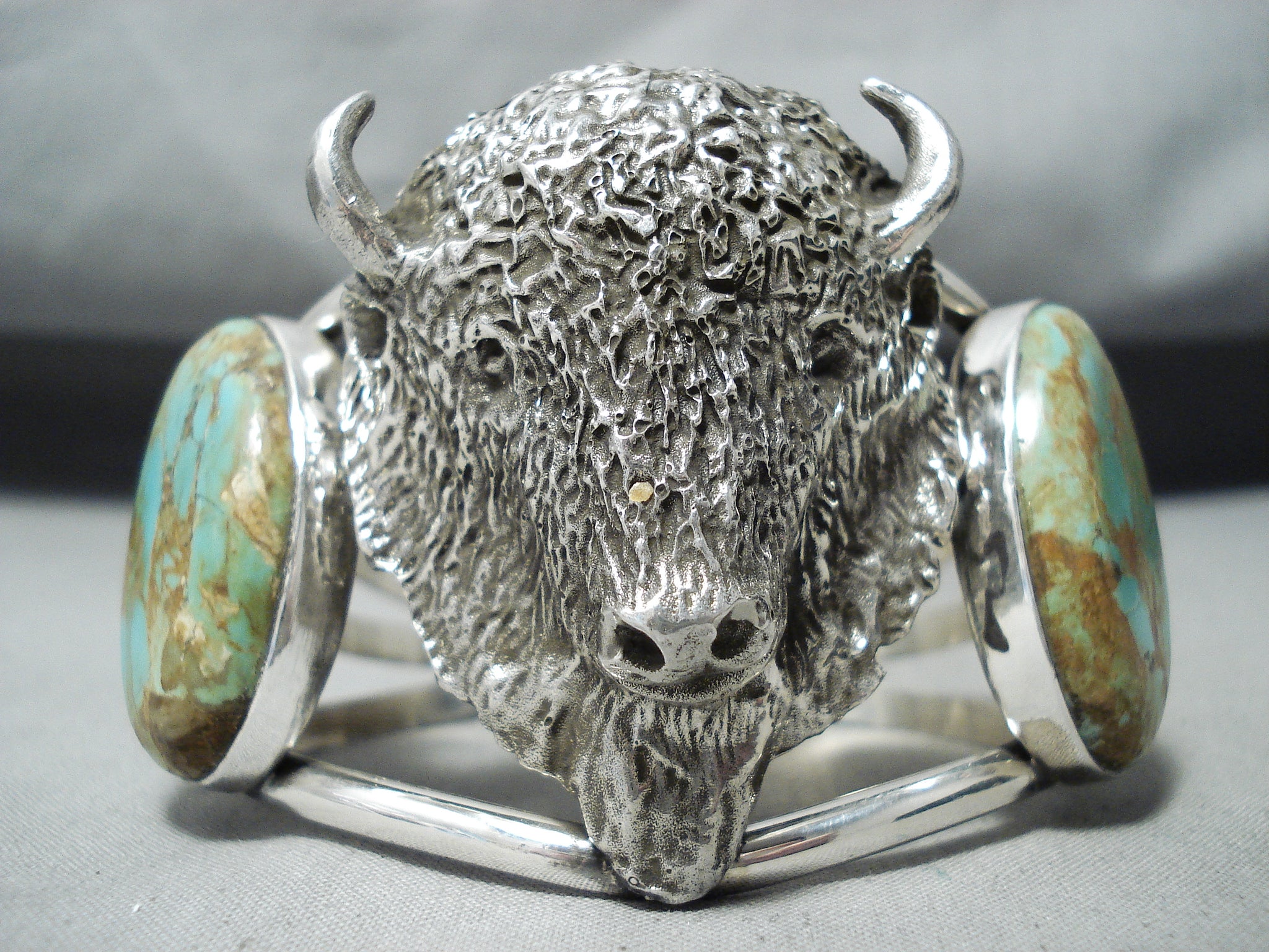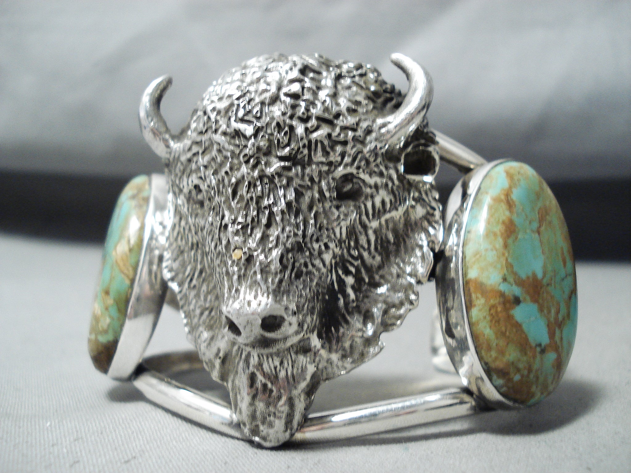Heavy San Felipe 8 Turquoise Sterling Silver Buffalo Bracelet