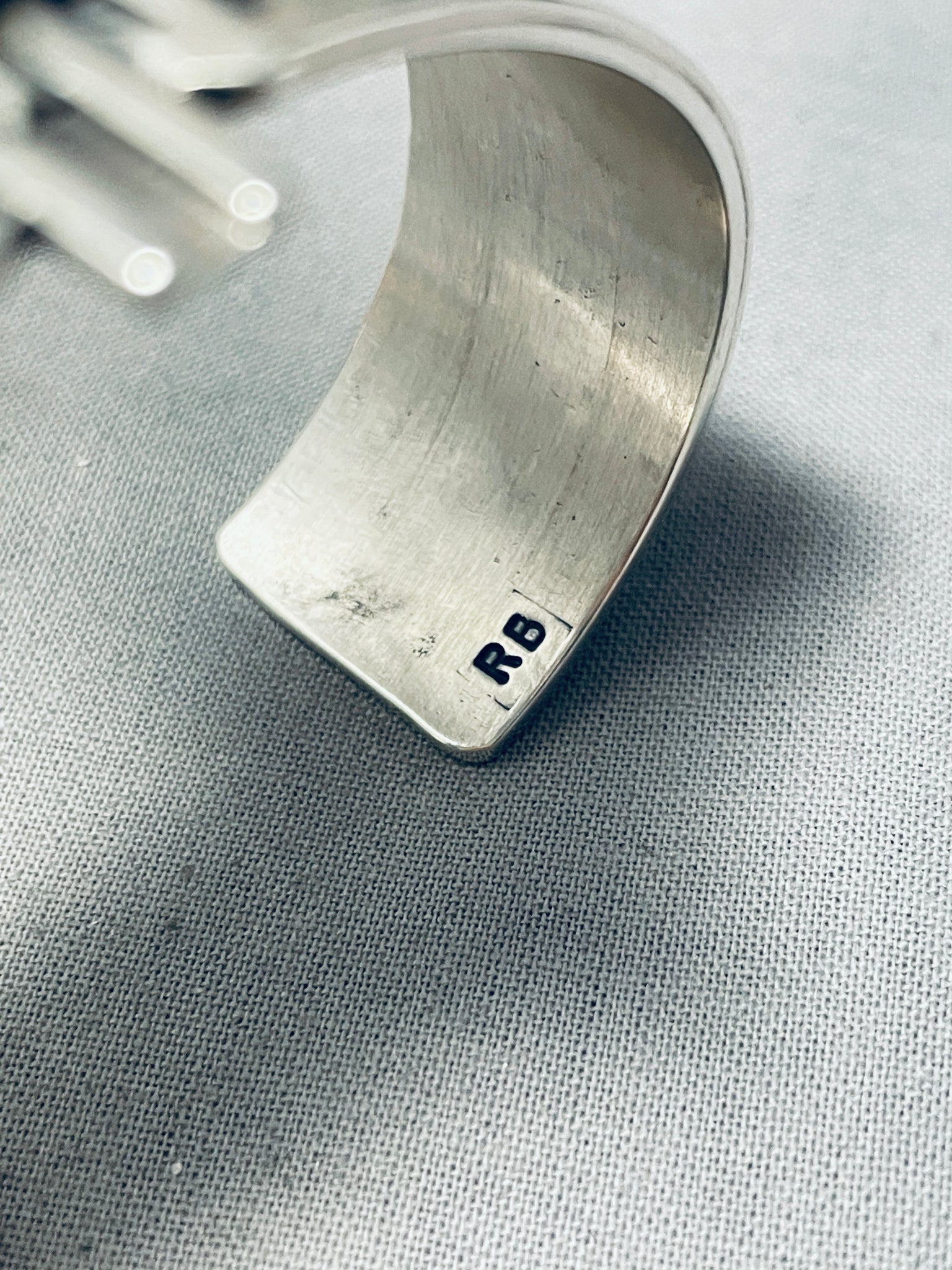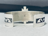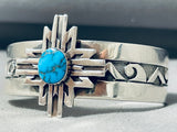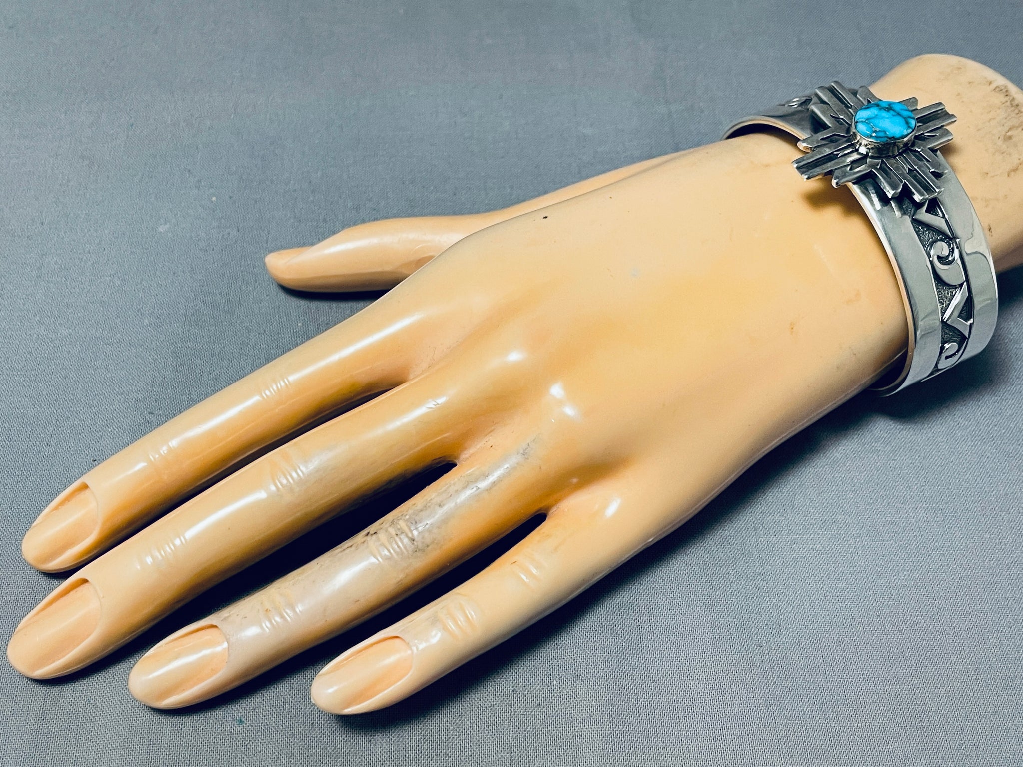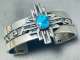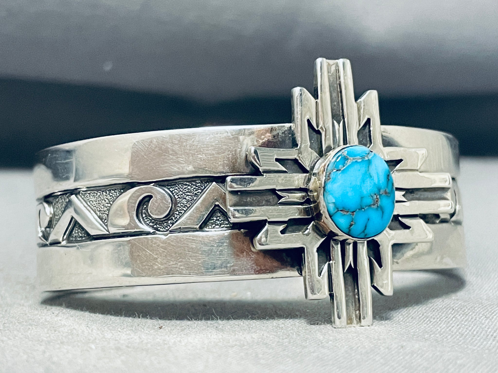 Heavy Signed Native American Navajo Zia Turquoise Sterling Silver Bracelet Cuff