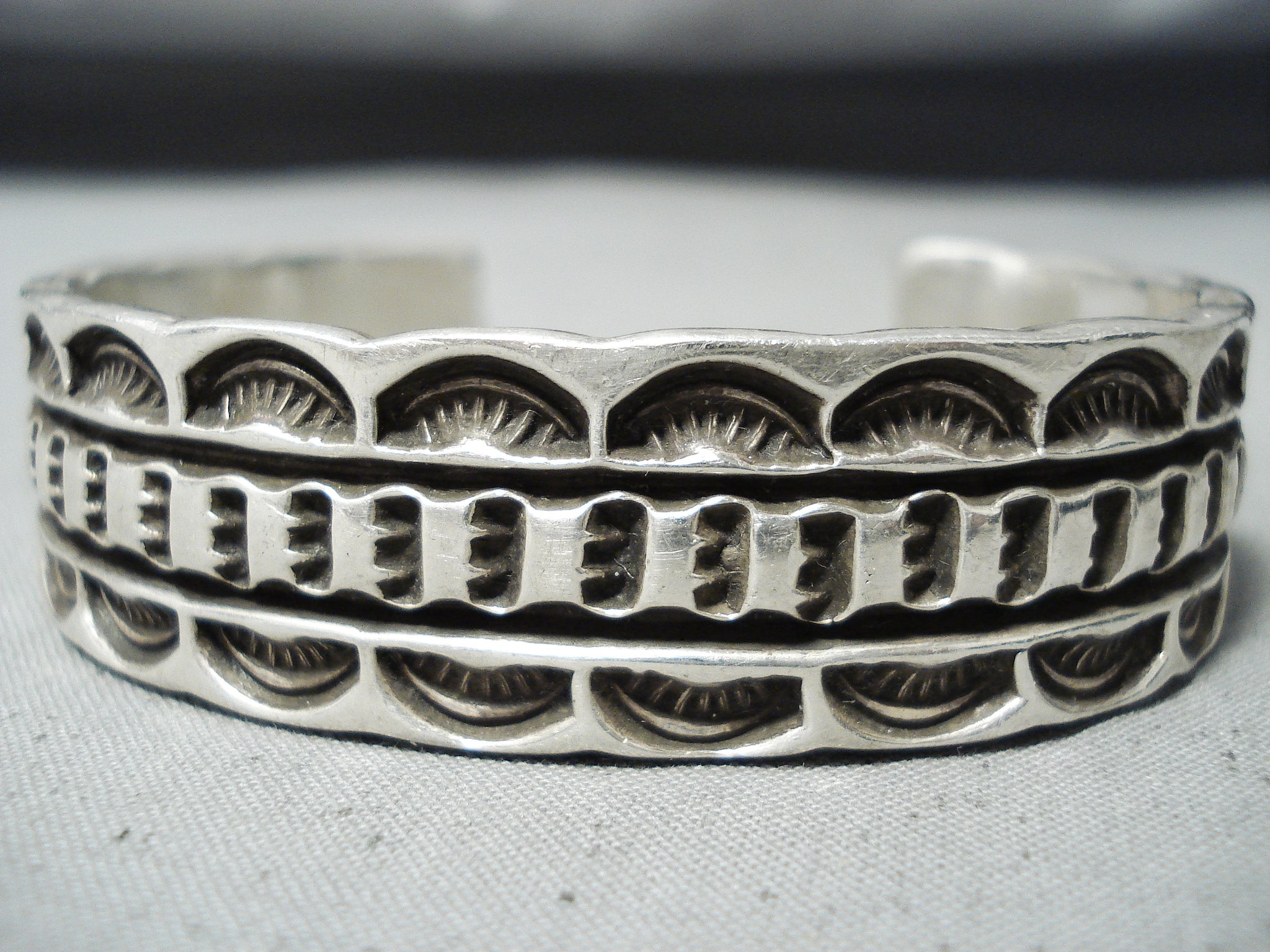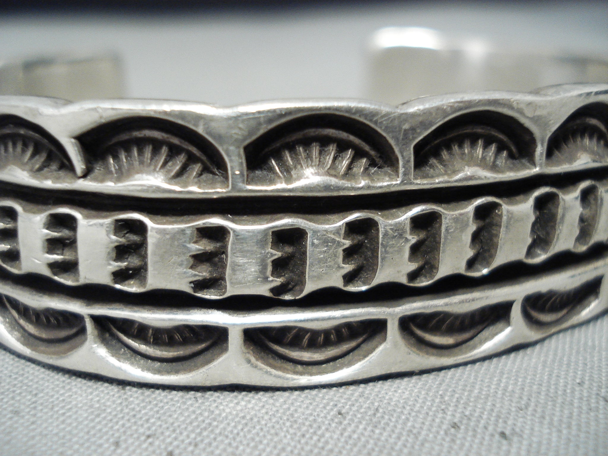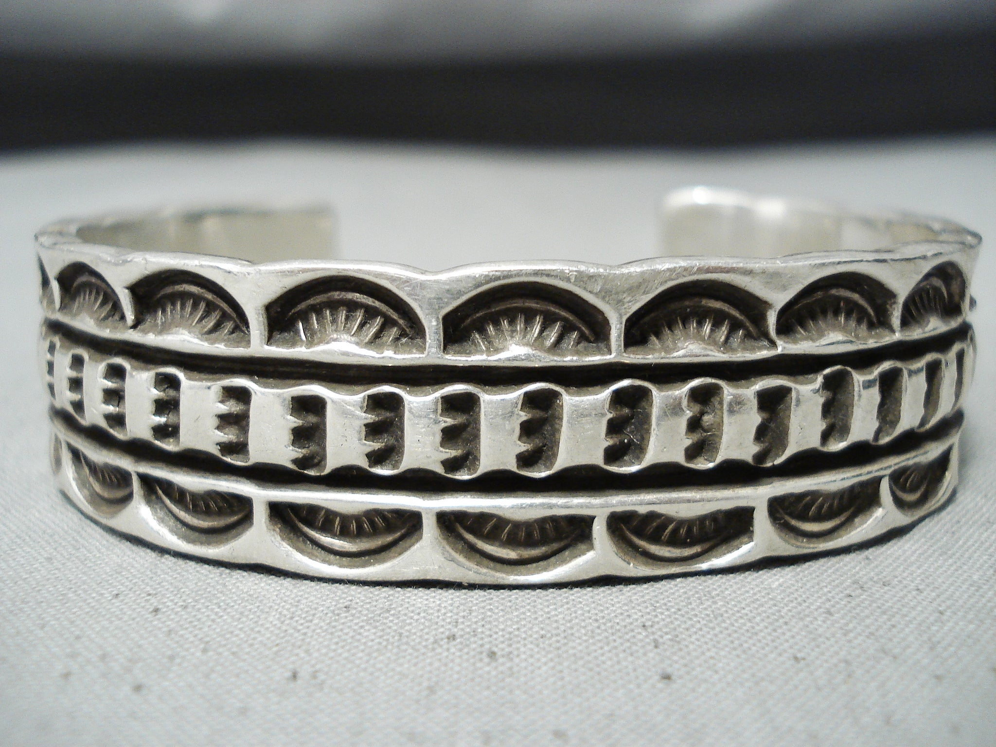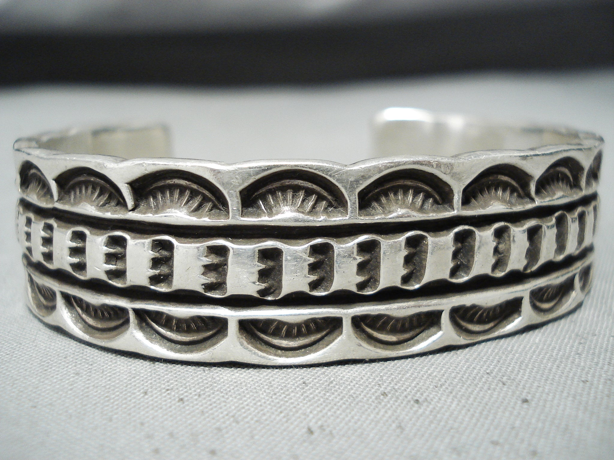 Heavy Signed Vintage Navajo Native American Sterling Silver Bracelet