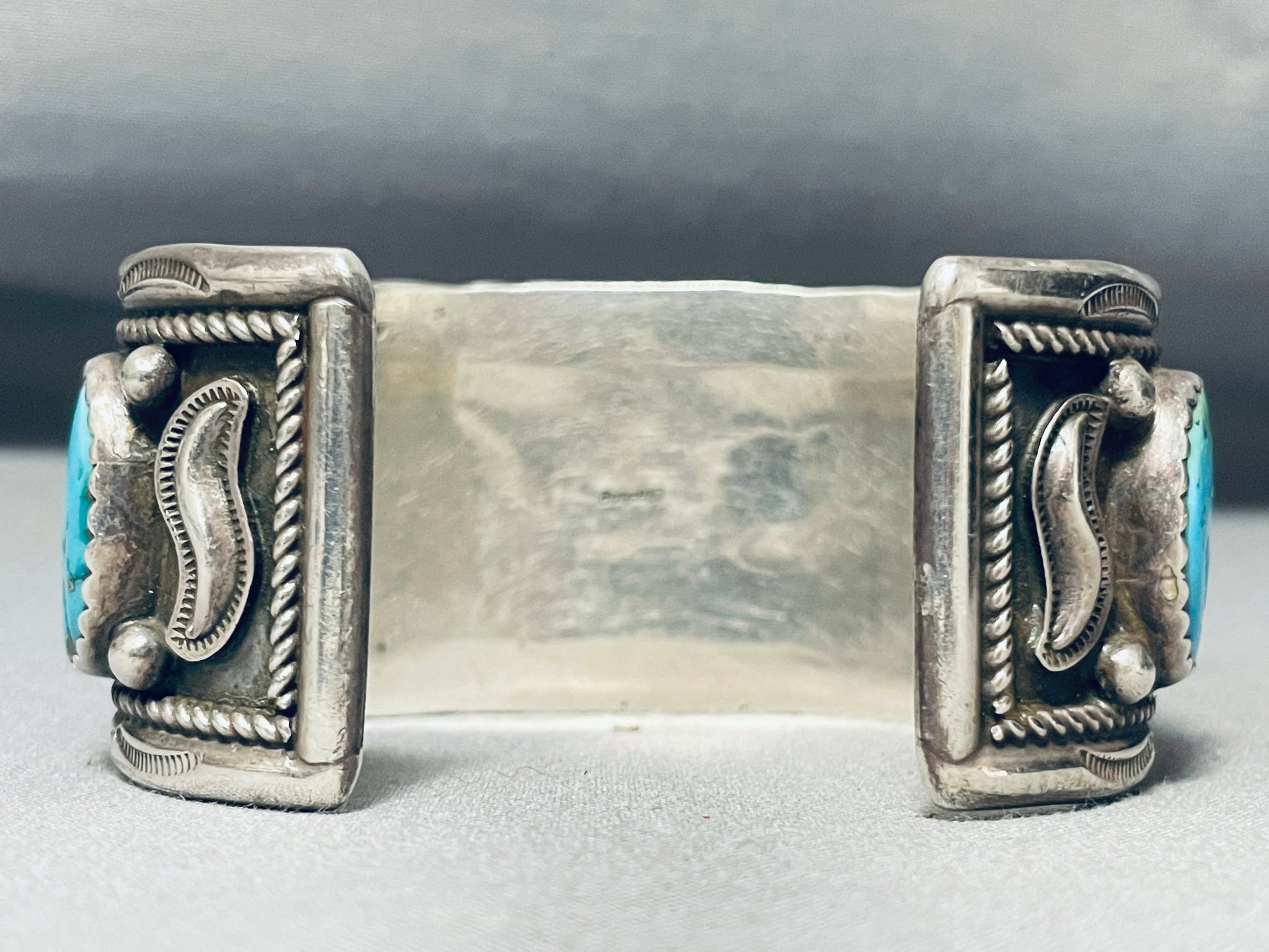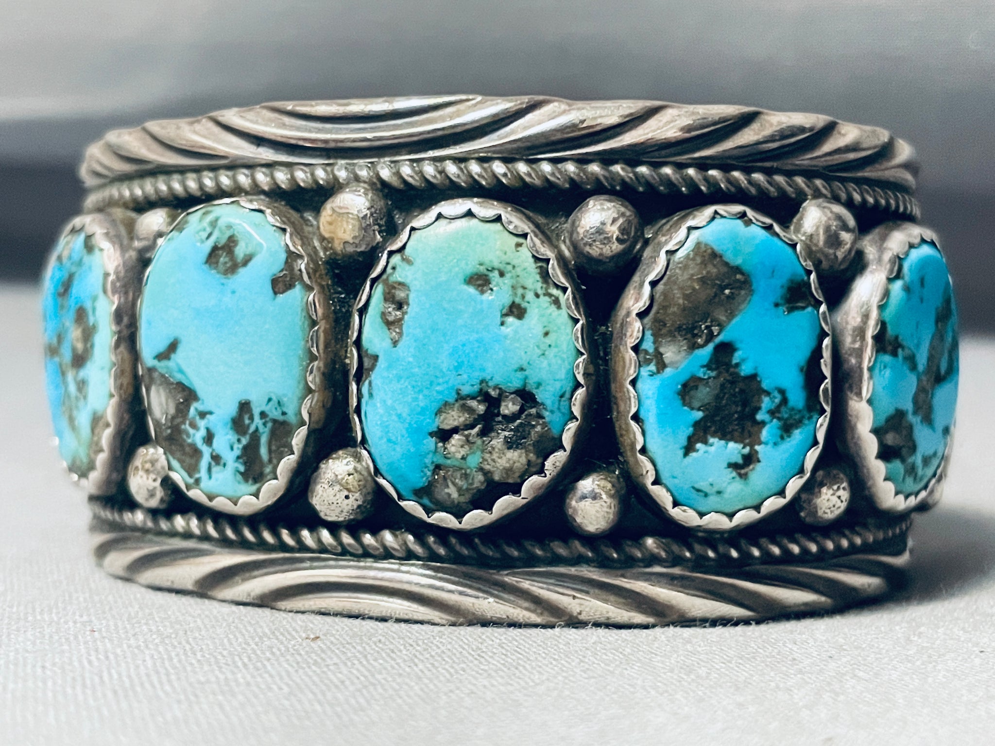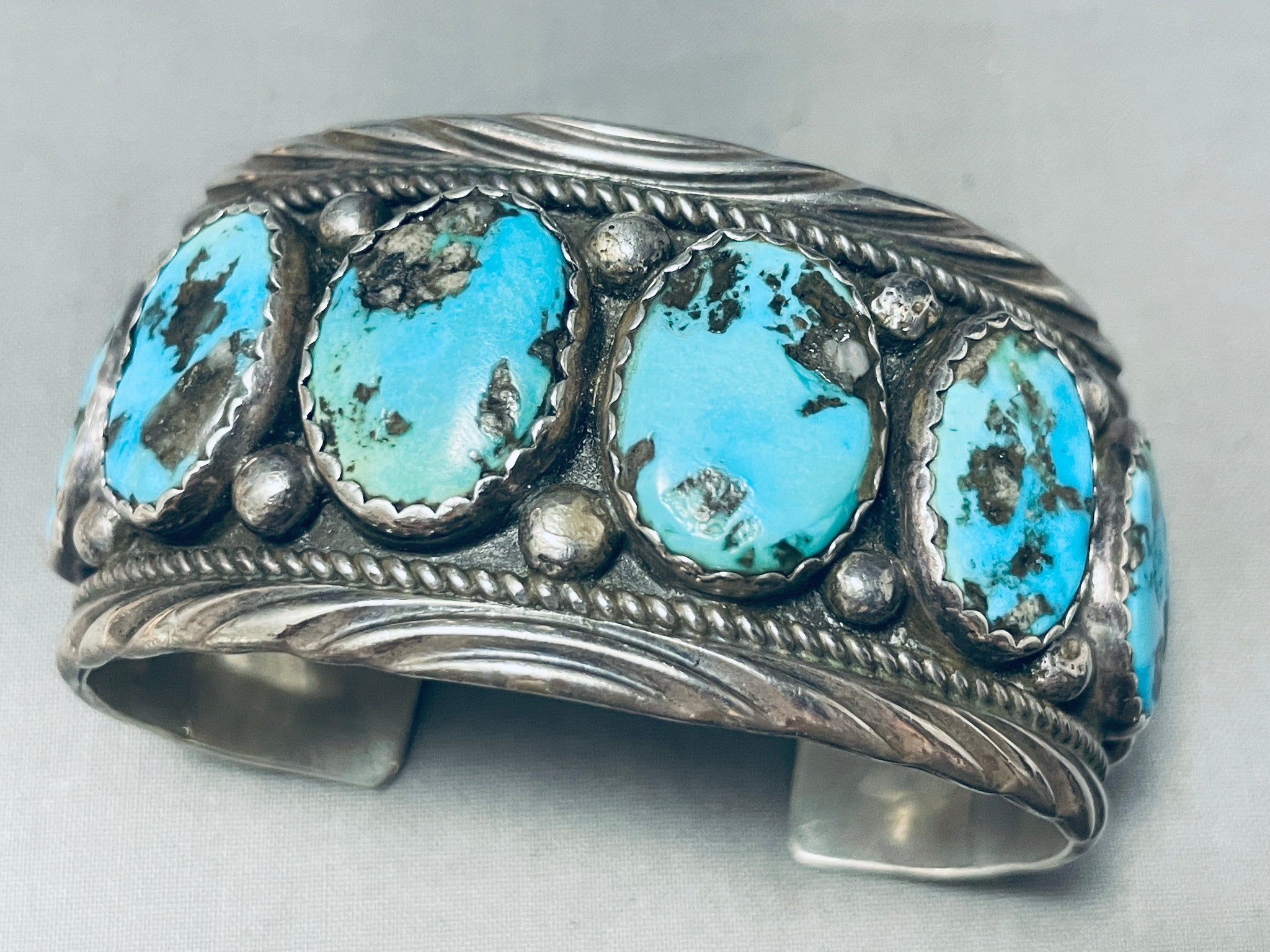 Heavy Sturdy Mens Vintage Native American Navajo Turquoise Sterling Silver Bracelet