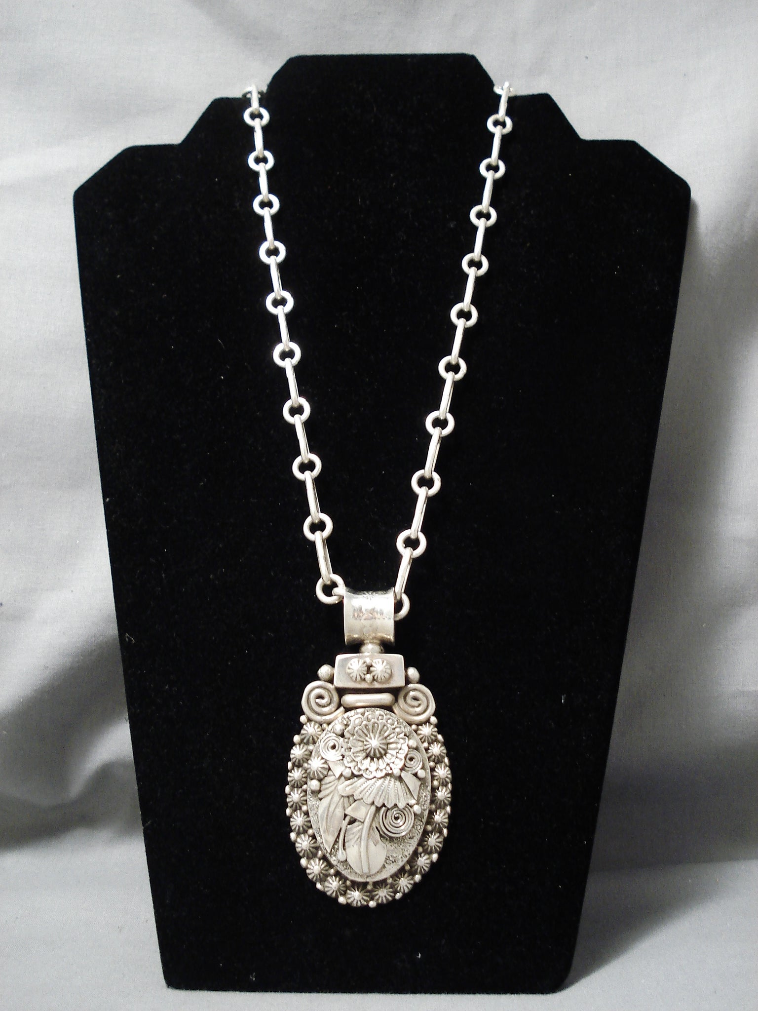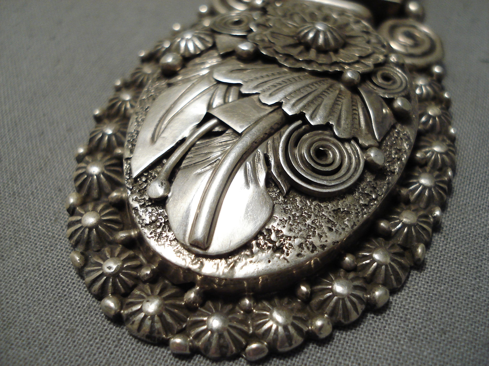 Heavy Sturdy Thick Vintage Native American Navajo Sterling Silver Leaf Necklace