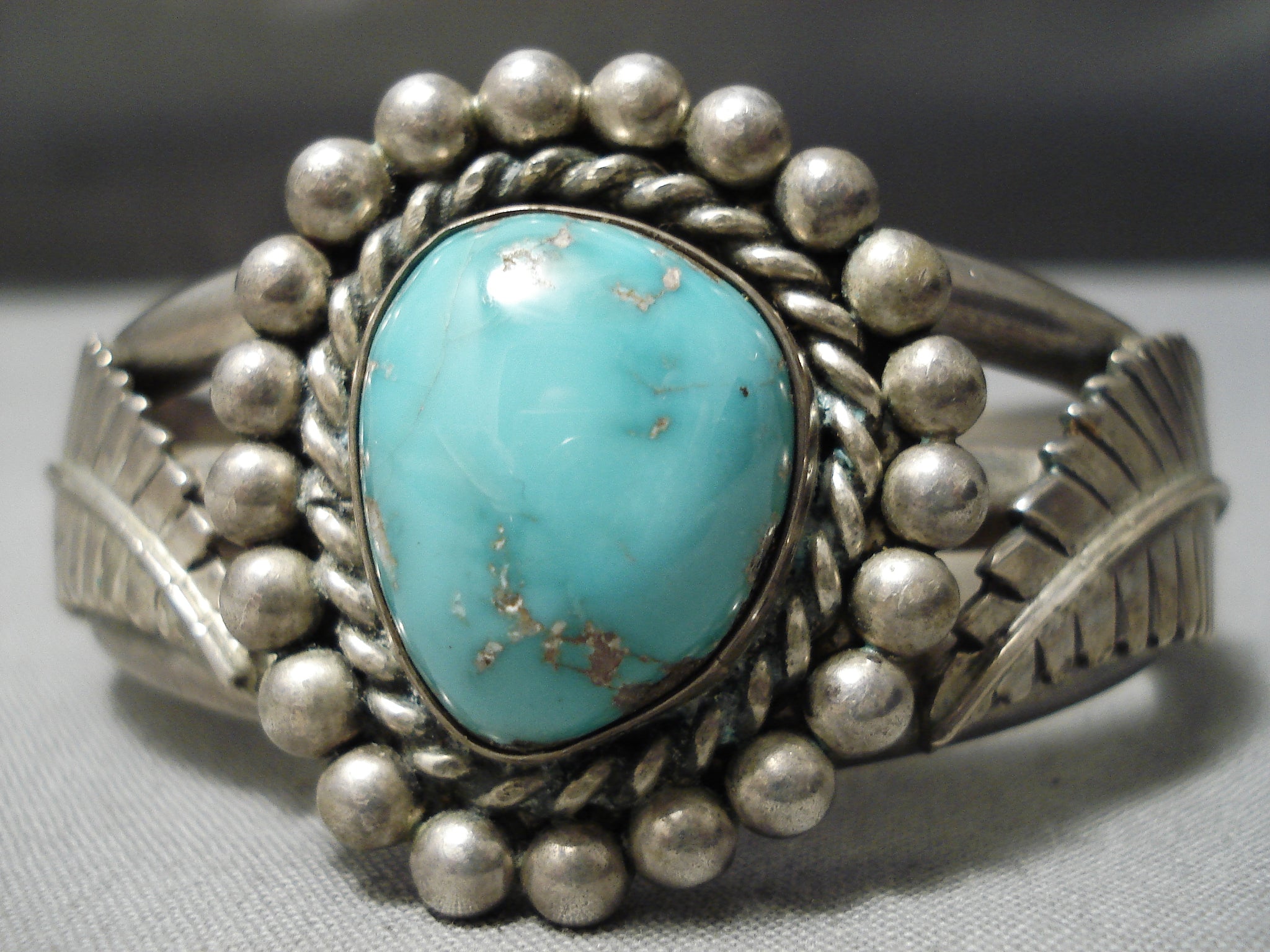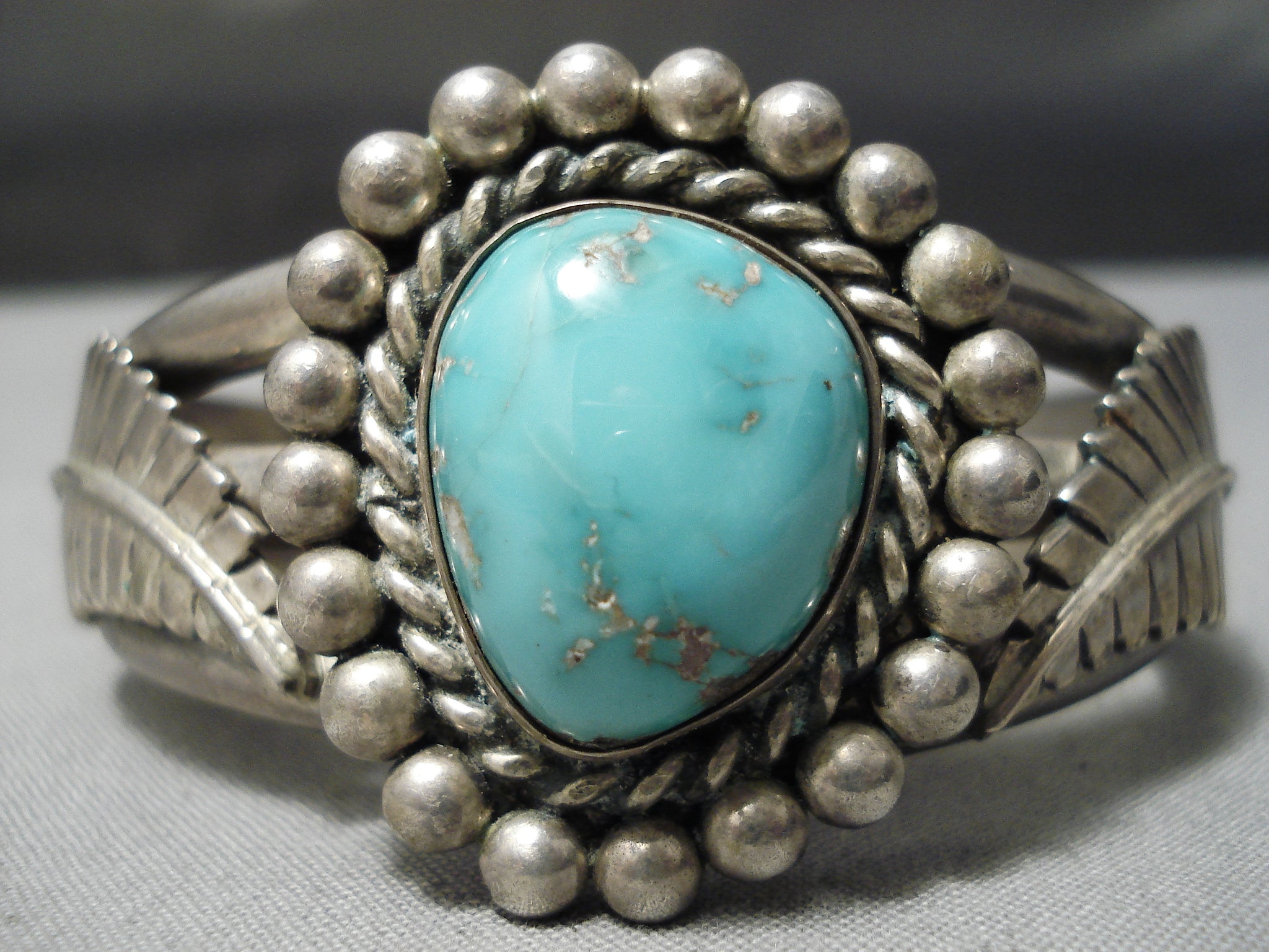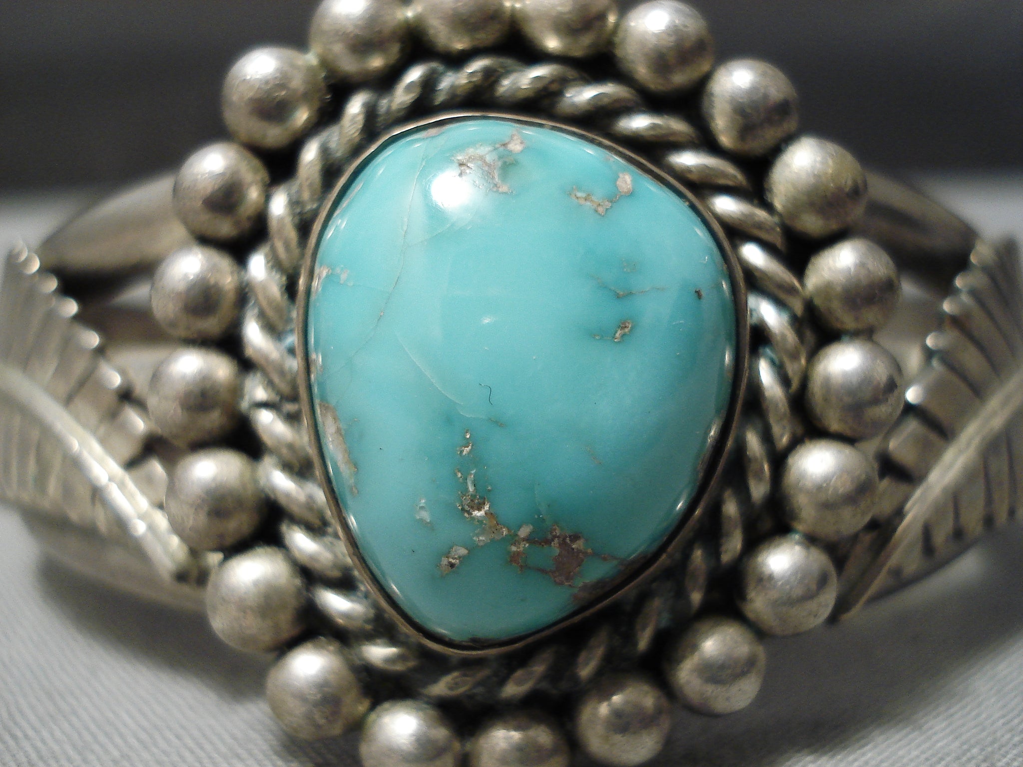 Heavy Thicik Vintage Native American Navajo Carico Lake Turquoise Sterling Silver Bracelet Old
