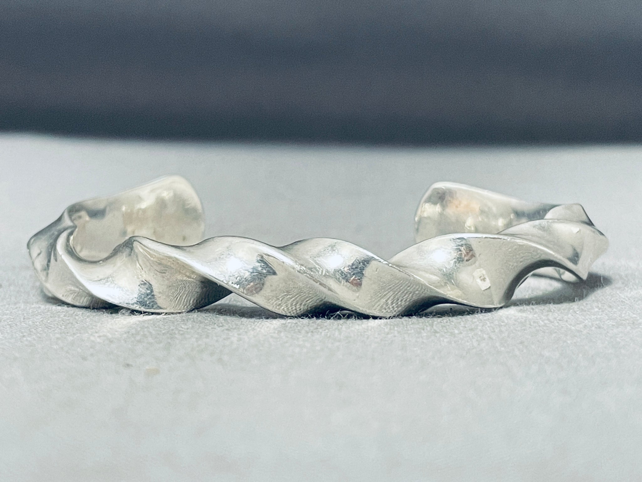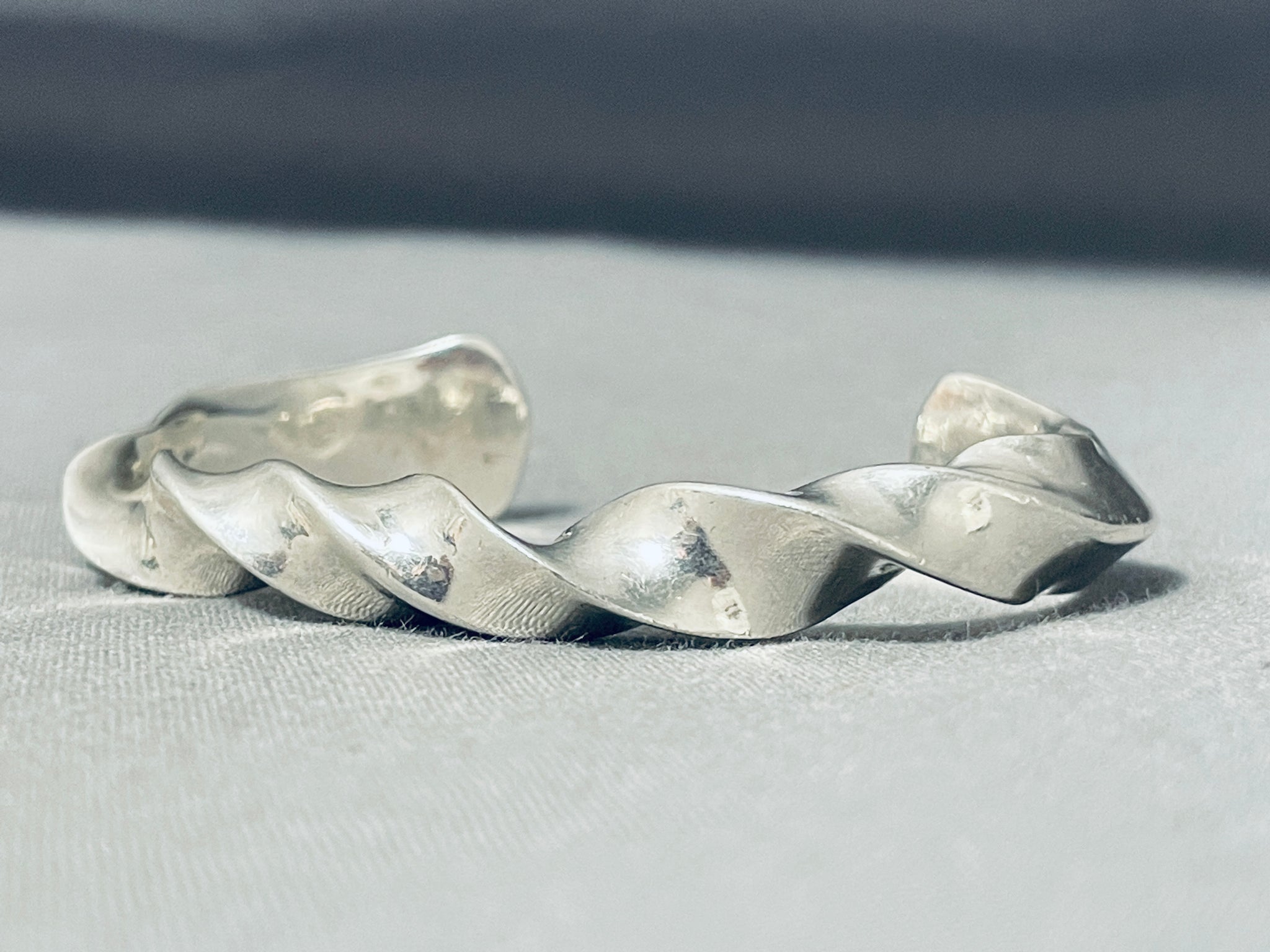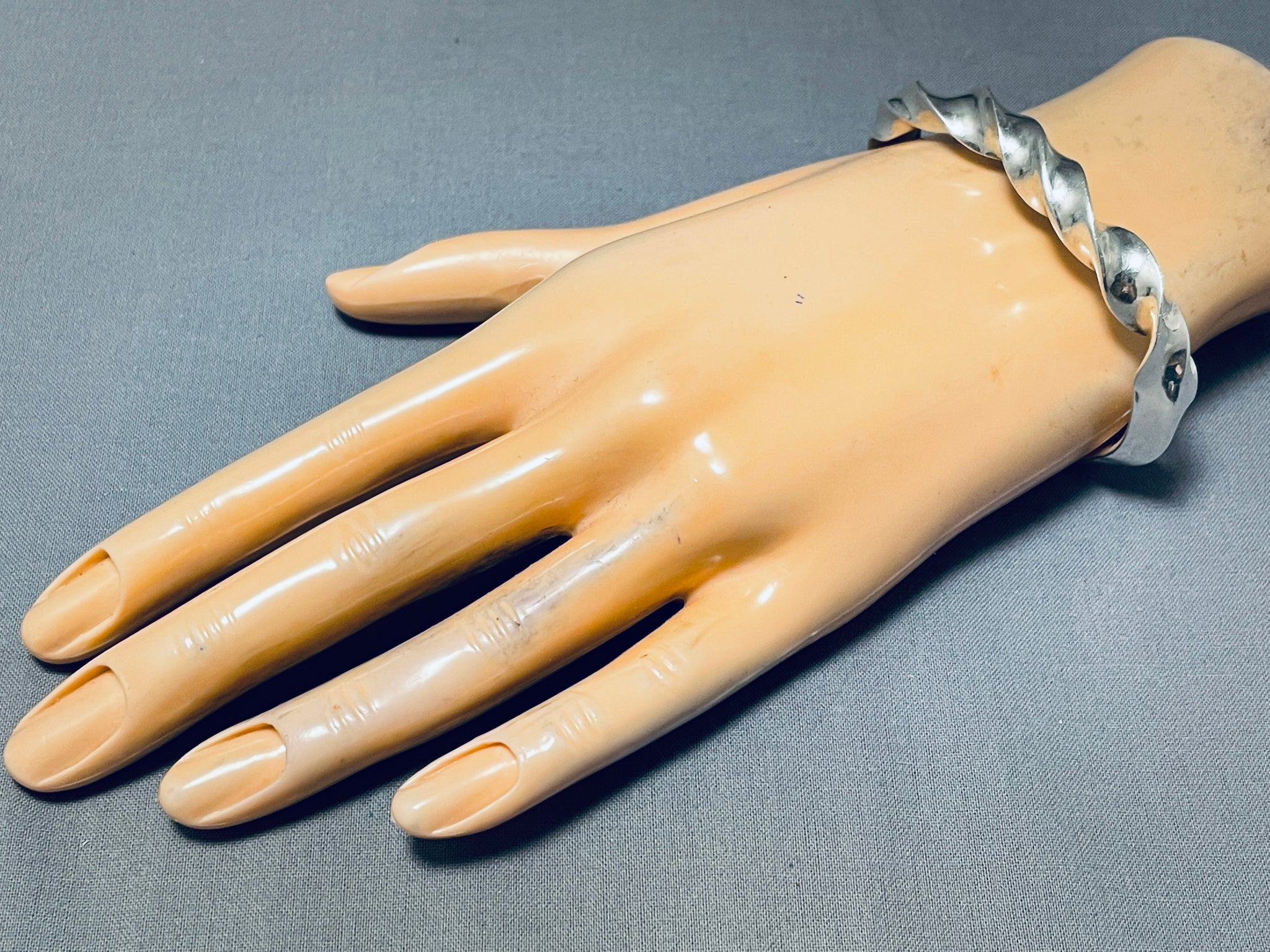 Heavy Thick Hand Heat Twisted Vintage Native American Navajo Sterling Silver Bracelet