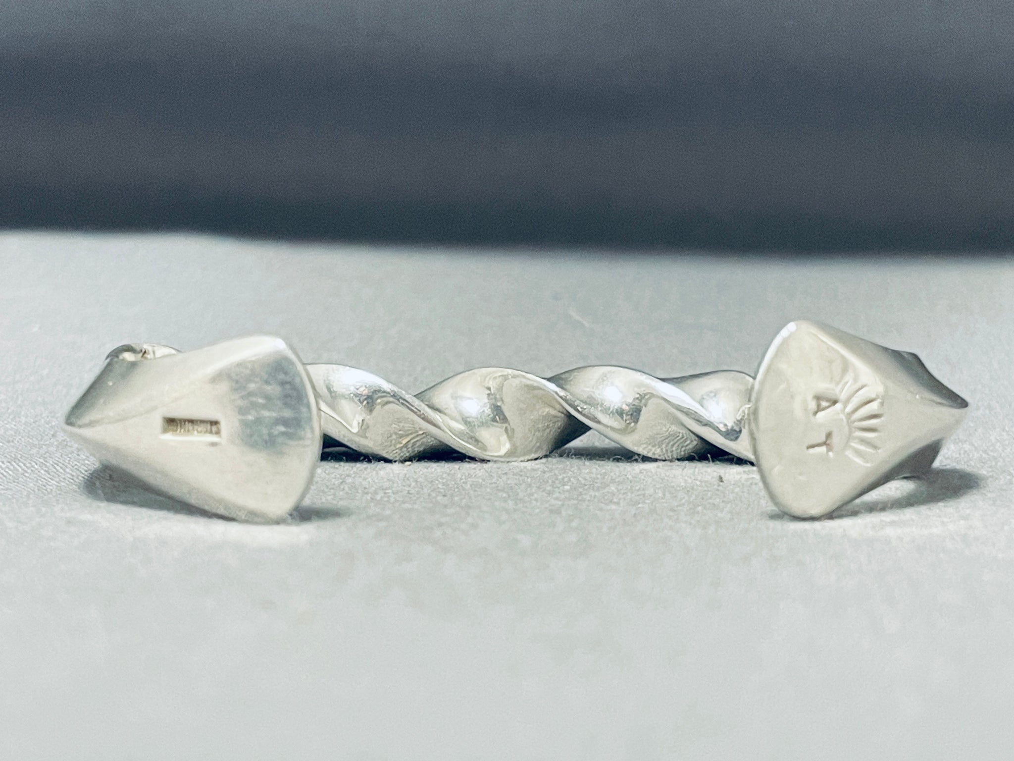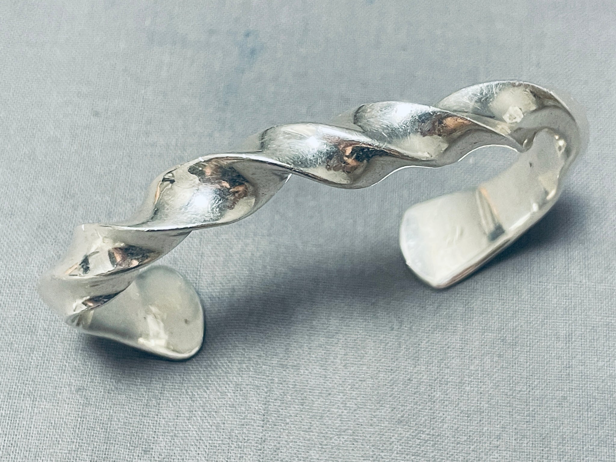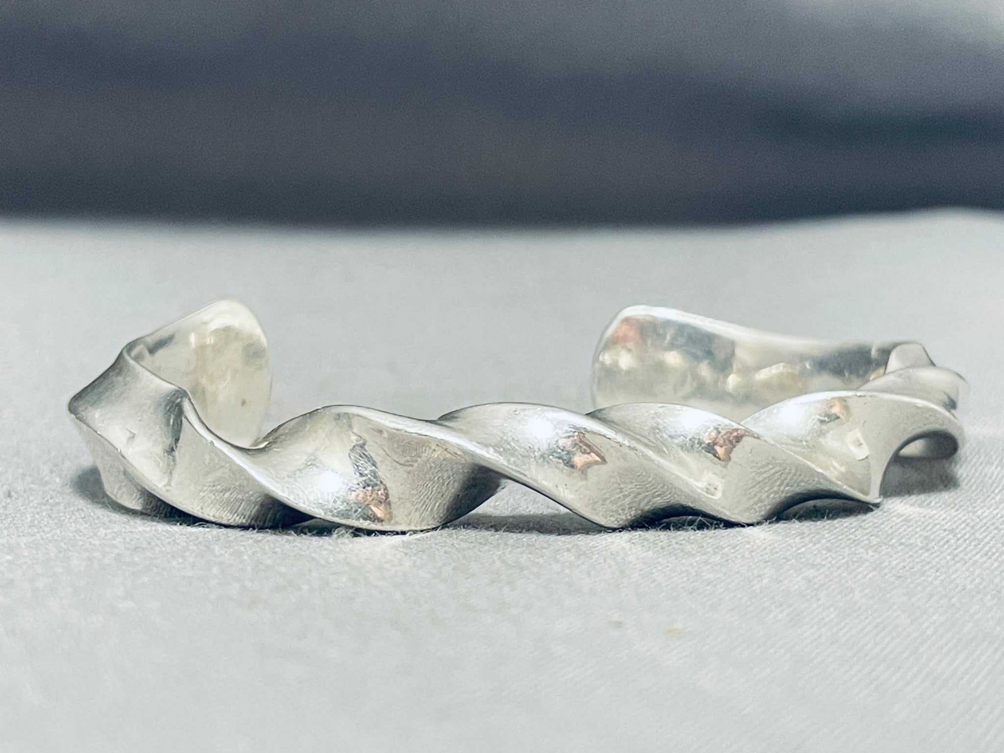 Heavy Thick Hand Heat Twisted Vintage Native American Navajo Sterling Silver Bracelet