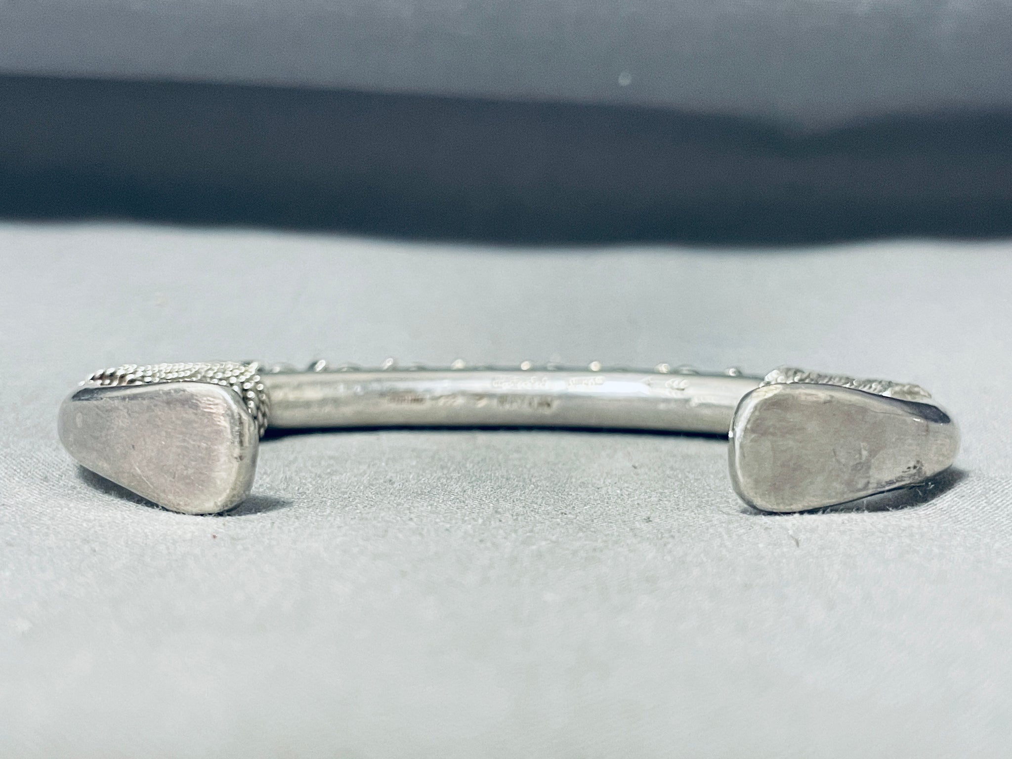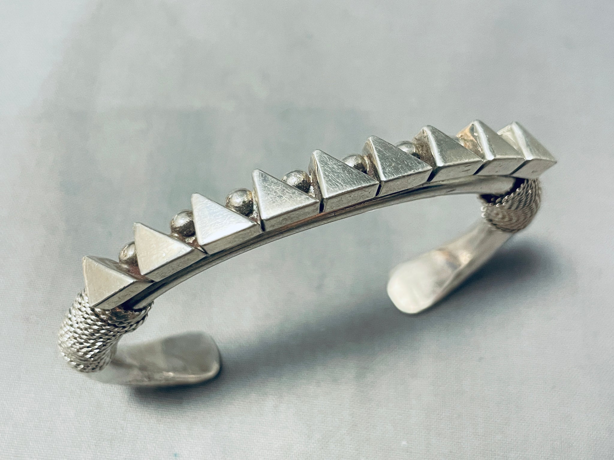 Heavy Thick Triangular Solid Vintage Native American Navajo Sterling Silver Bracelet