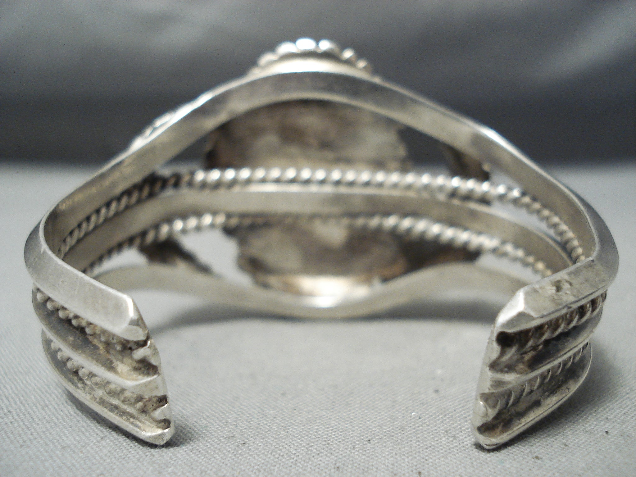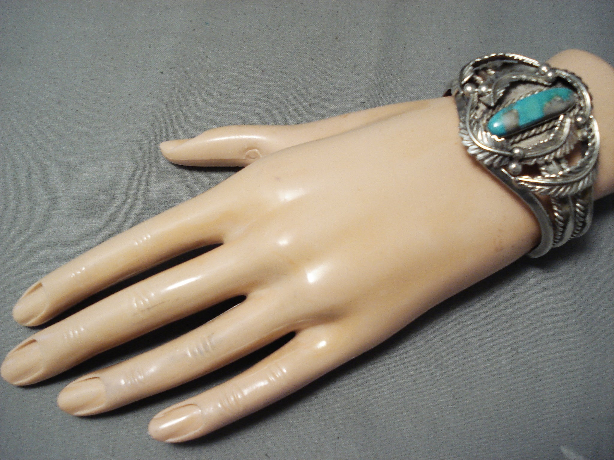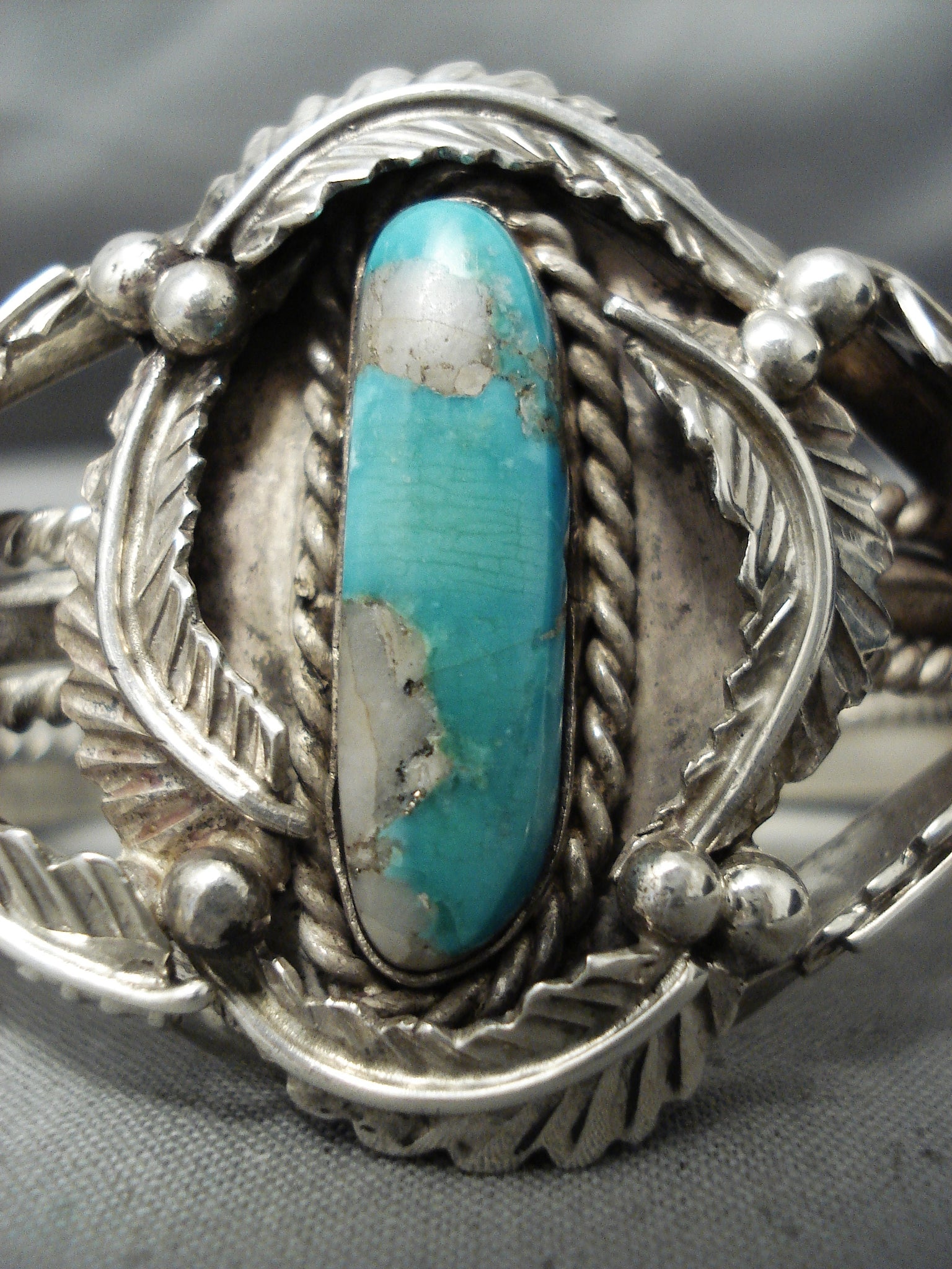 Heavy Thick Vintage Native American Navajo Gilbert Turquoise Sterling Silver Leaf Bracelet Old