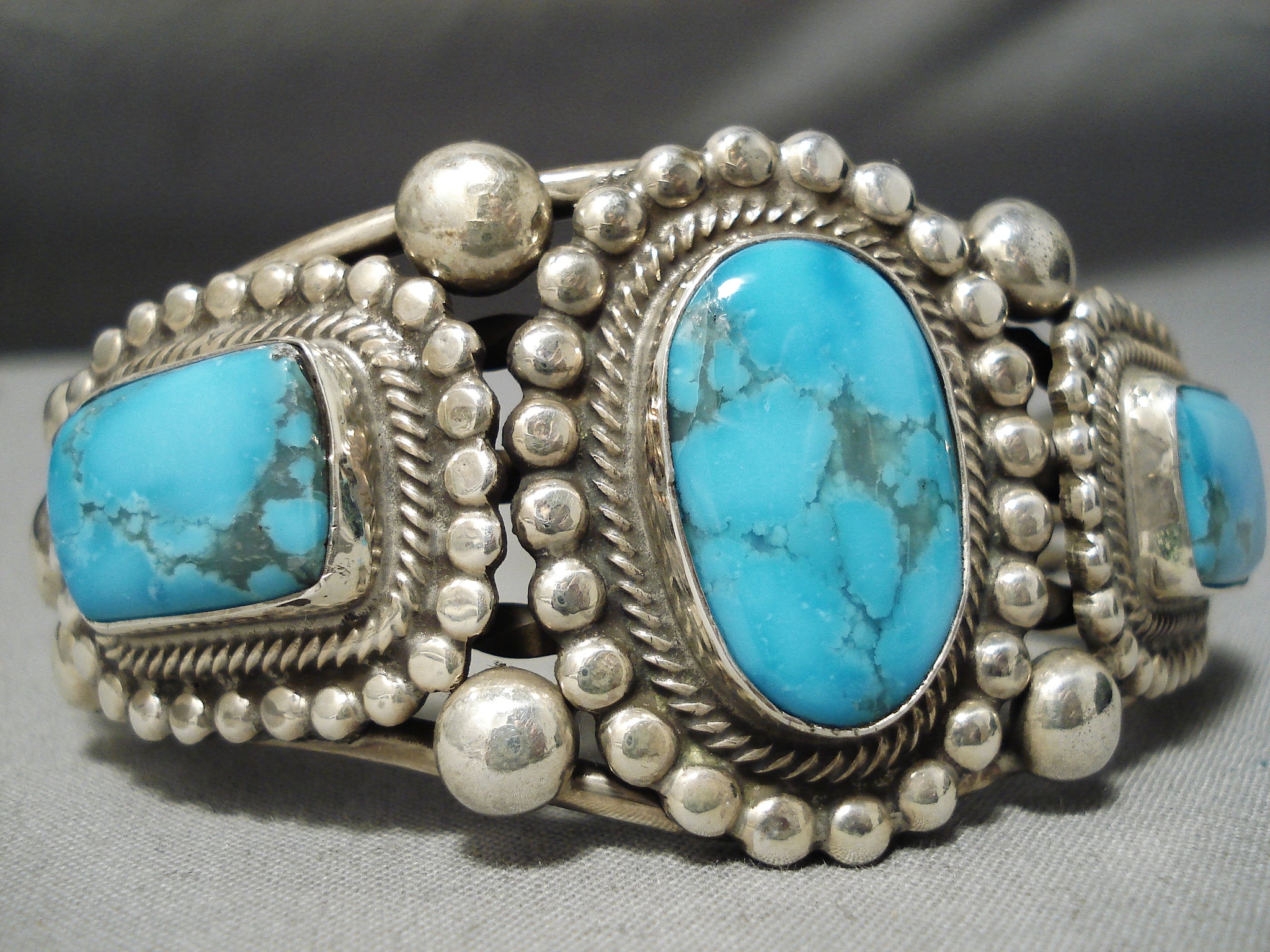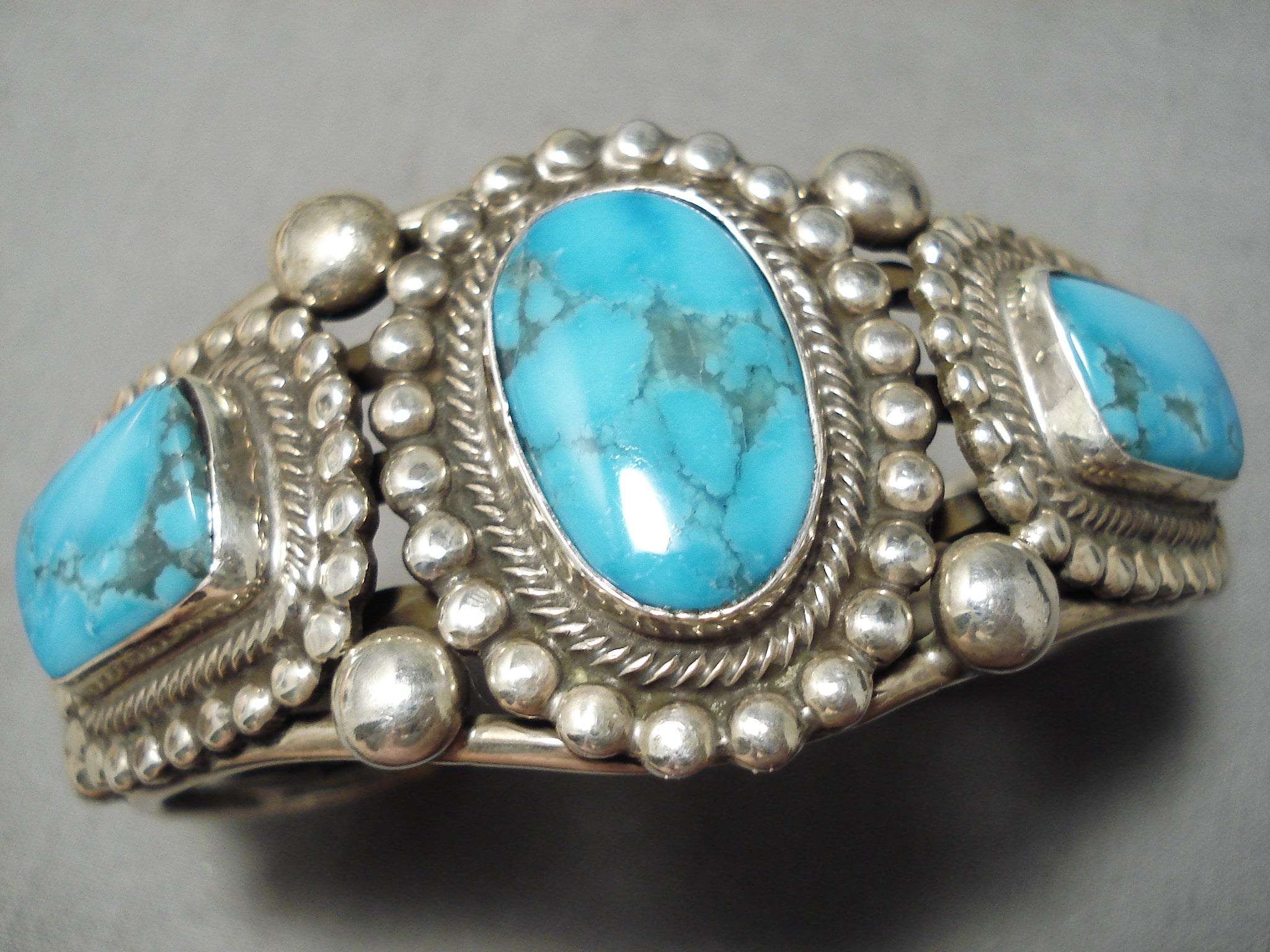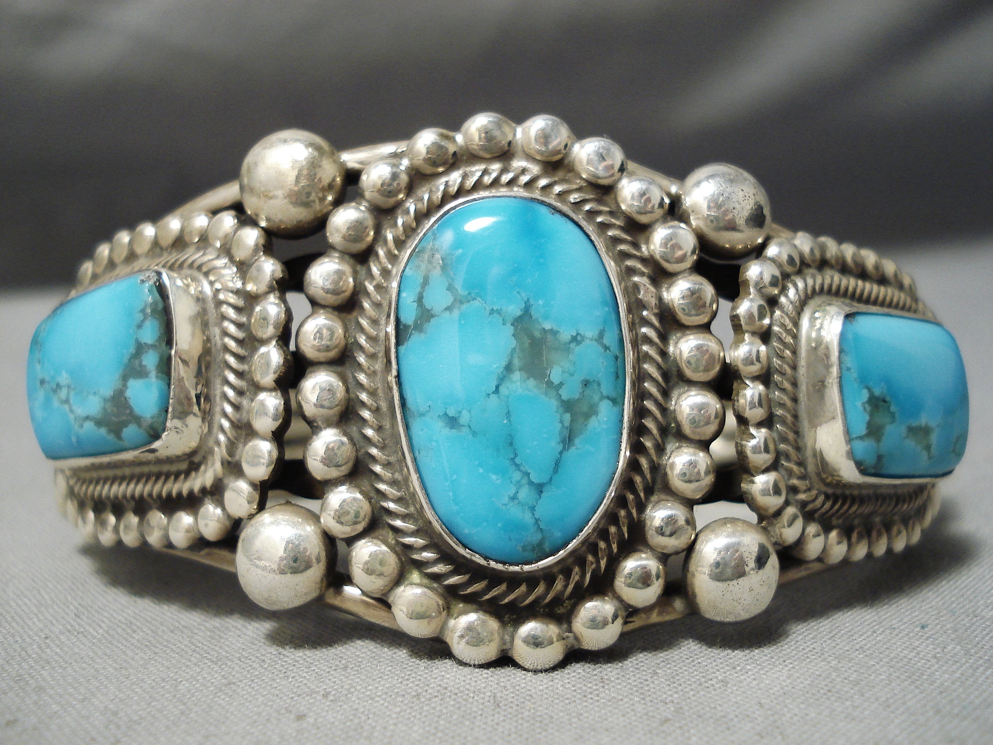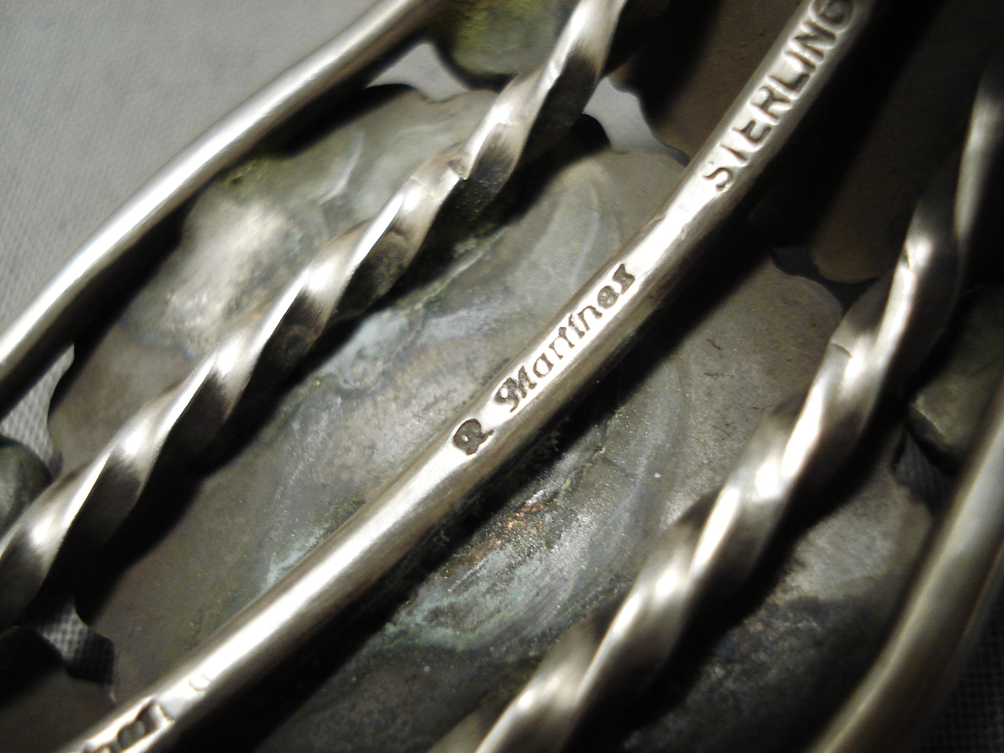 Heavy Thick Vintage Native American Navajo Turquoise Sterling Silver Rick Martinez Bracelet