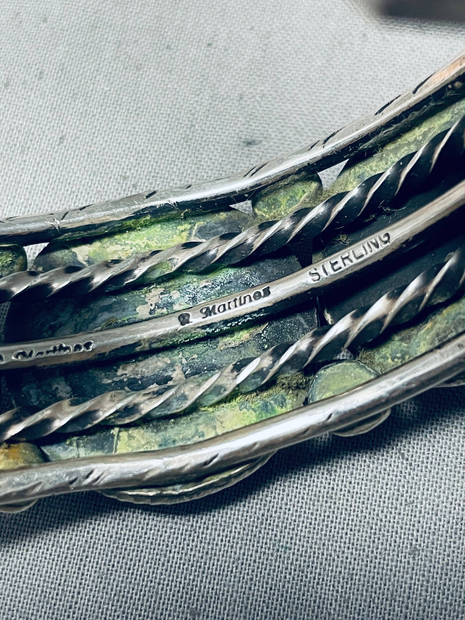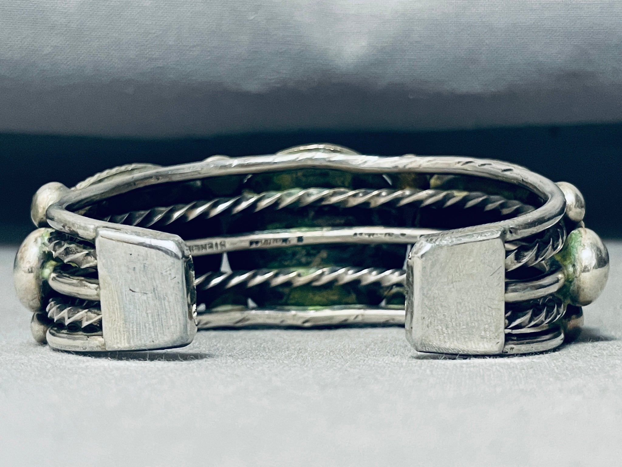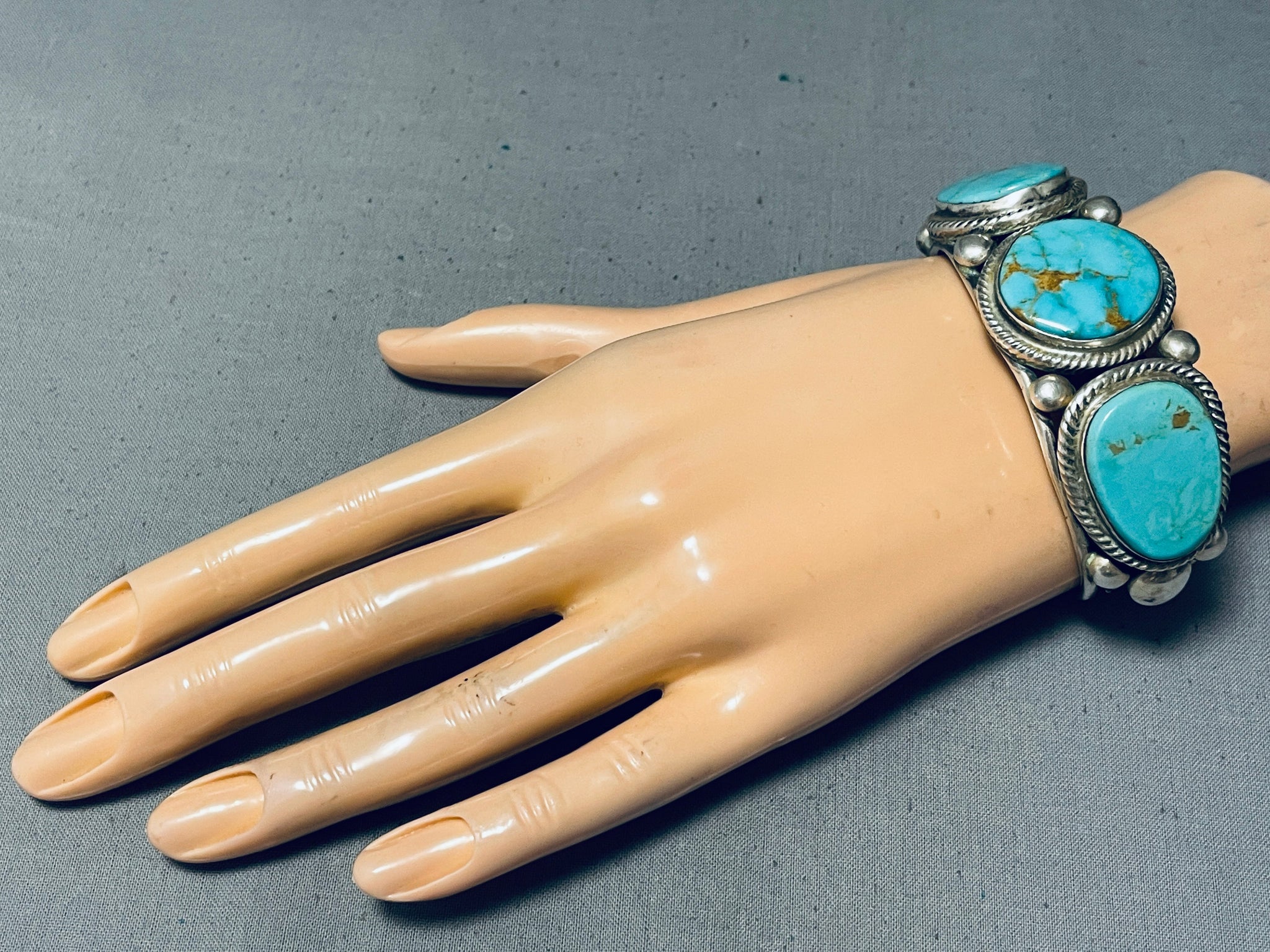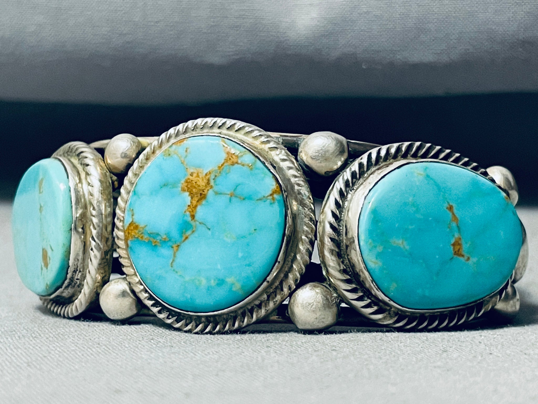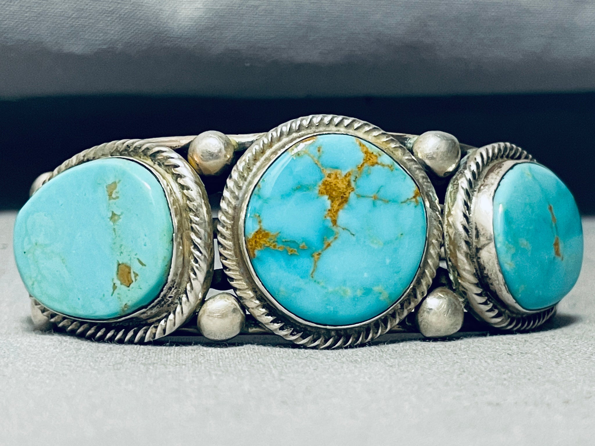 Heavy Thicker Native American Navajo #8 Turquoise Sterling Silver Thick Coil Bracelet