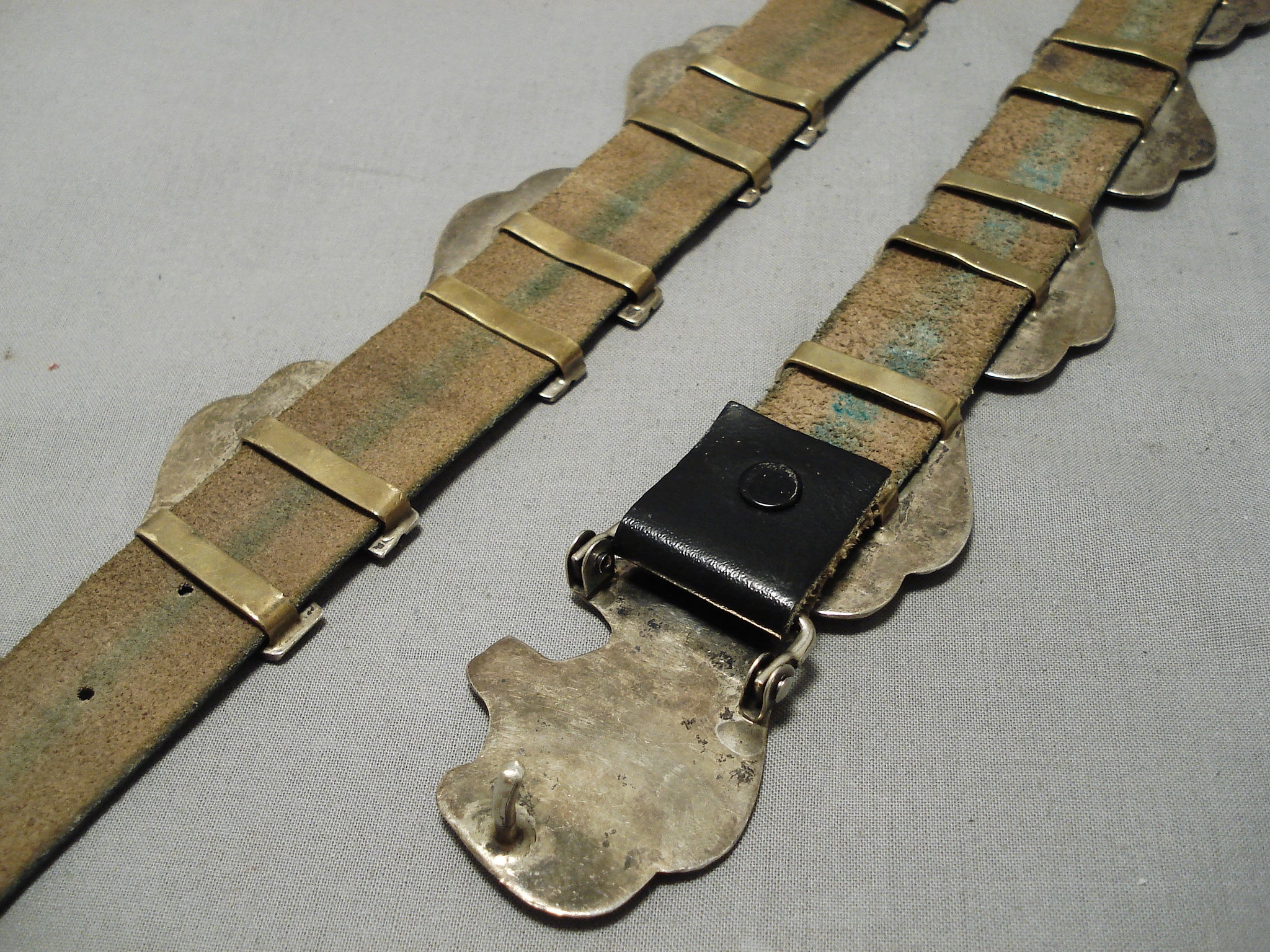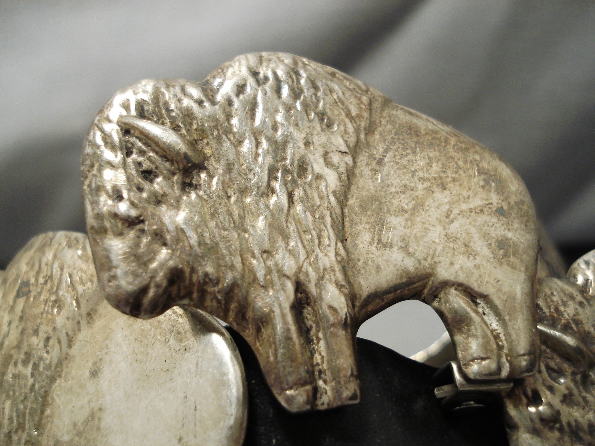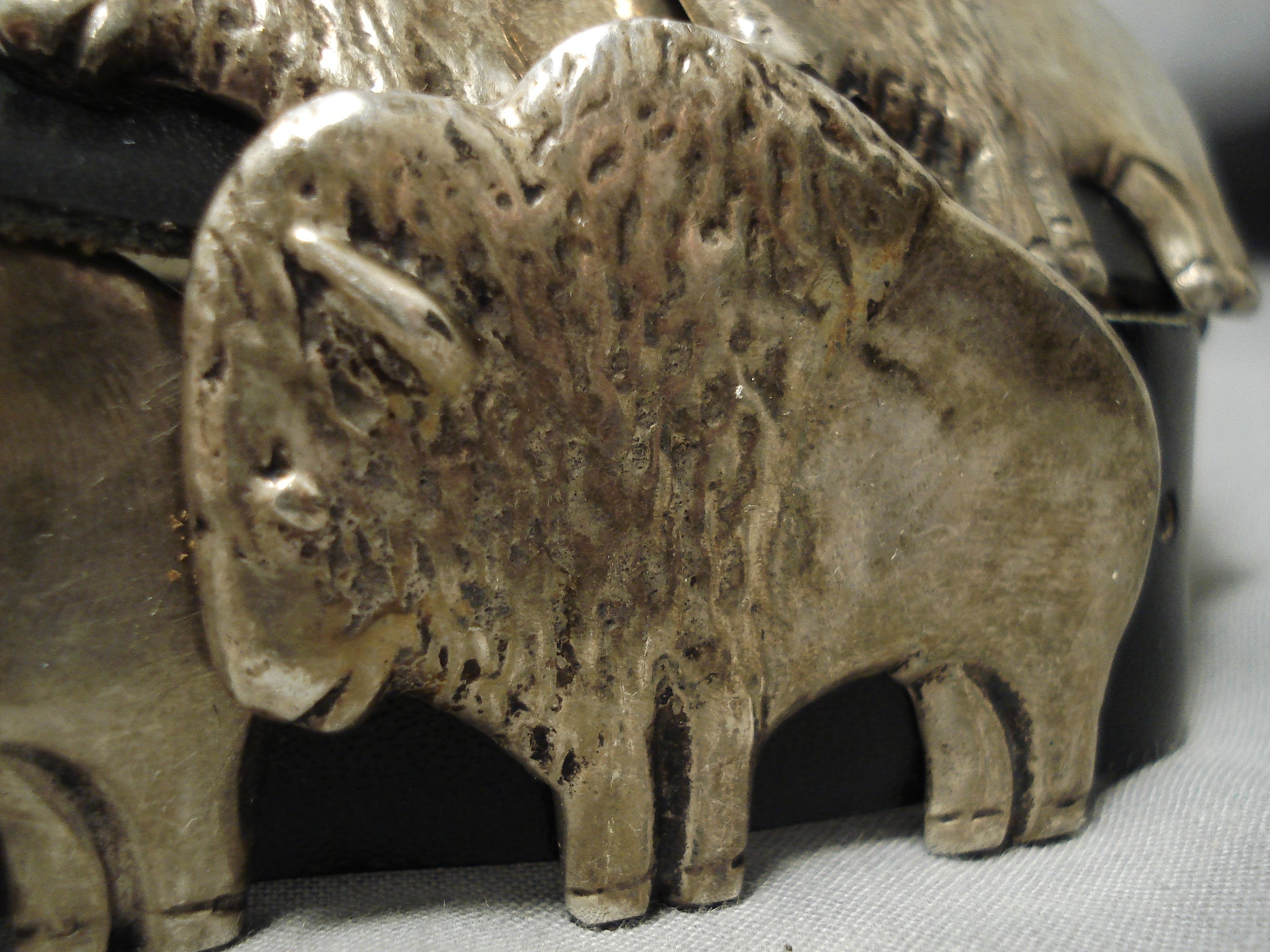 Heavy Unique Vintage Native American Navajo Hand Tooled Sterling Silver Buffalo Concho Belt Old