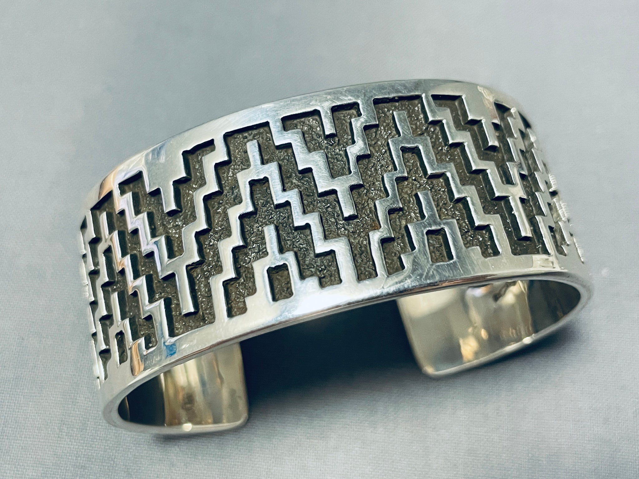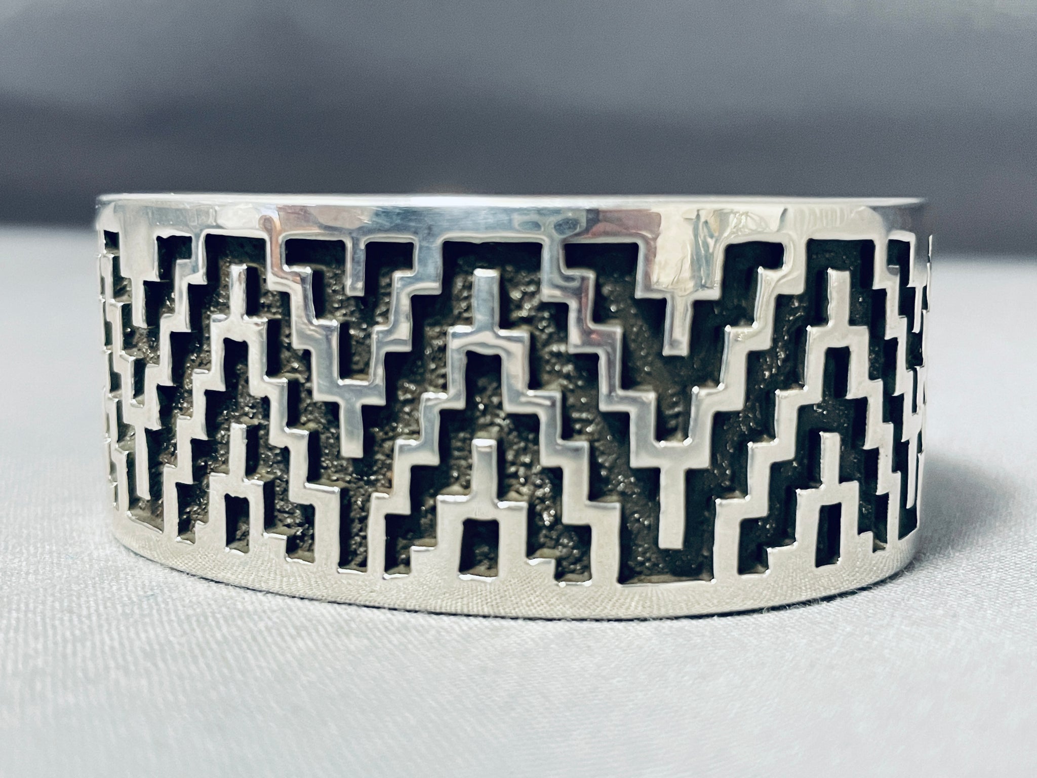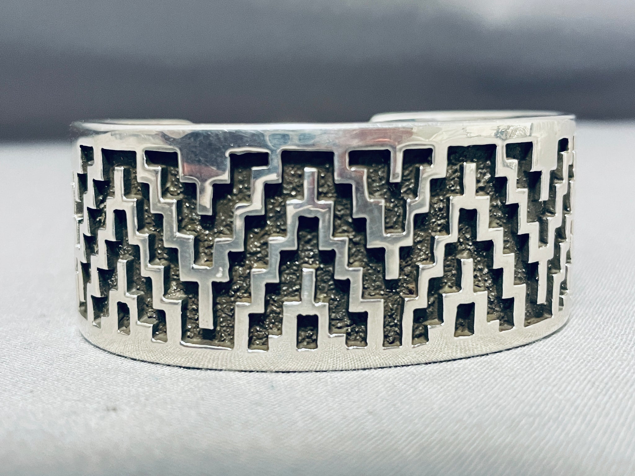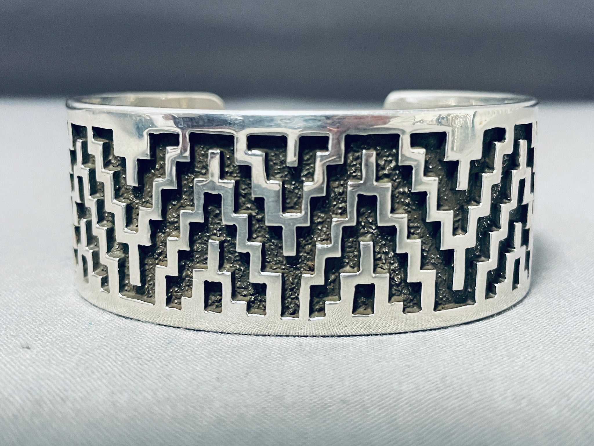 Heavy Unique Vintage Native American Navajo Tommy Jackson Sterling Silver Bracelet
