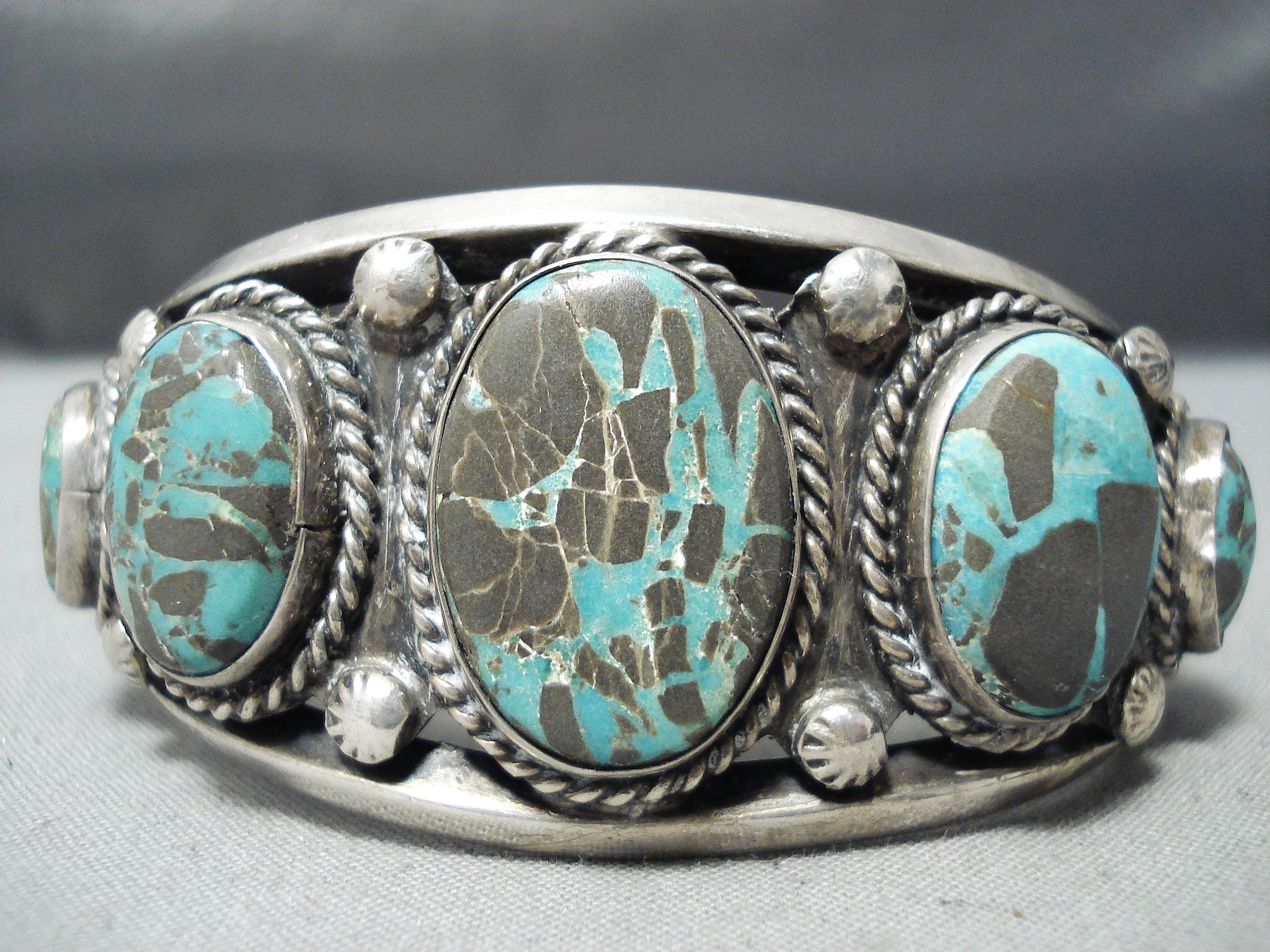 Heavy Vintage Native American Navajo Bisbee Turquoise Sterling Silver Bracelet Old Cuff