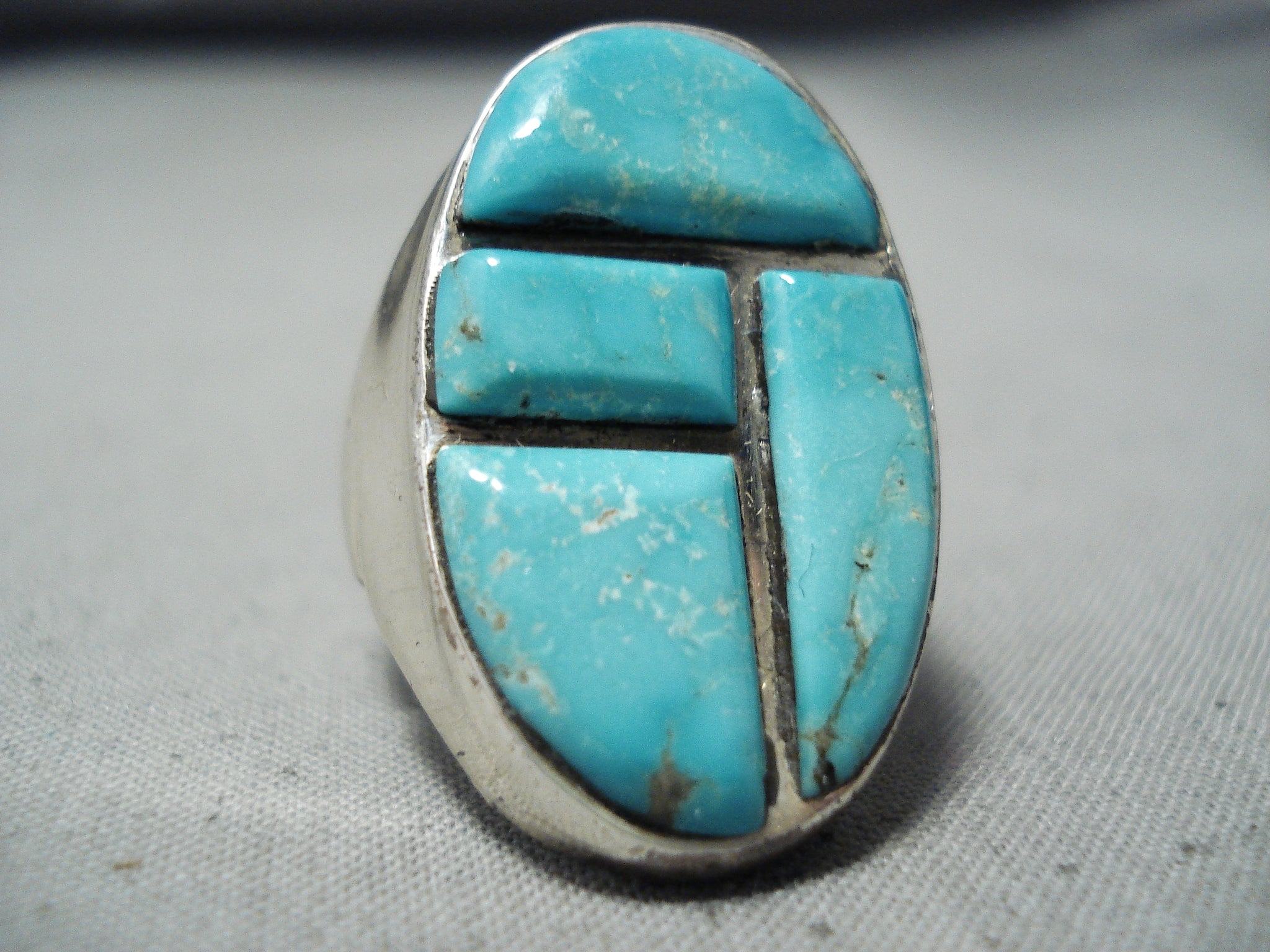 Heavy Vintage Native American Navajo Blue Gem Turquoise Sterling Silver Ring
