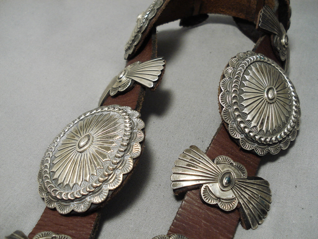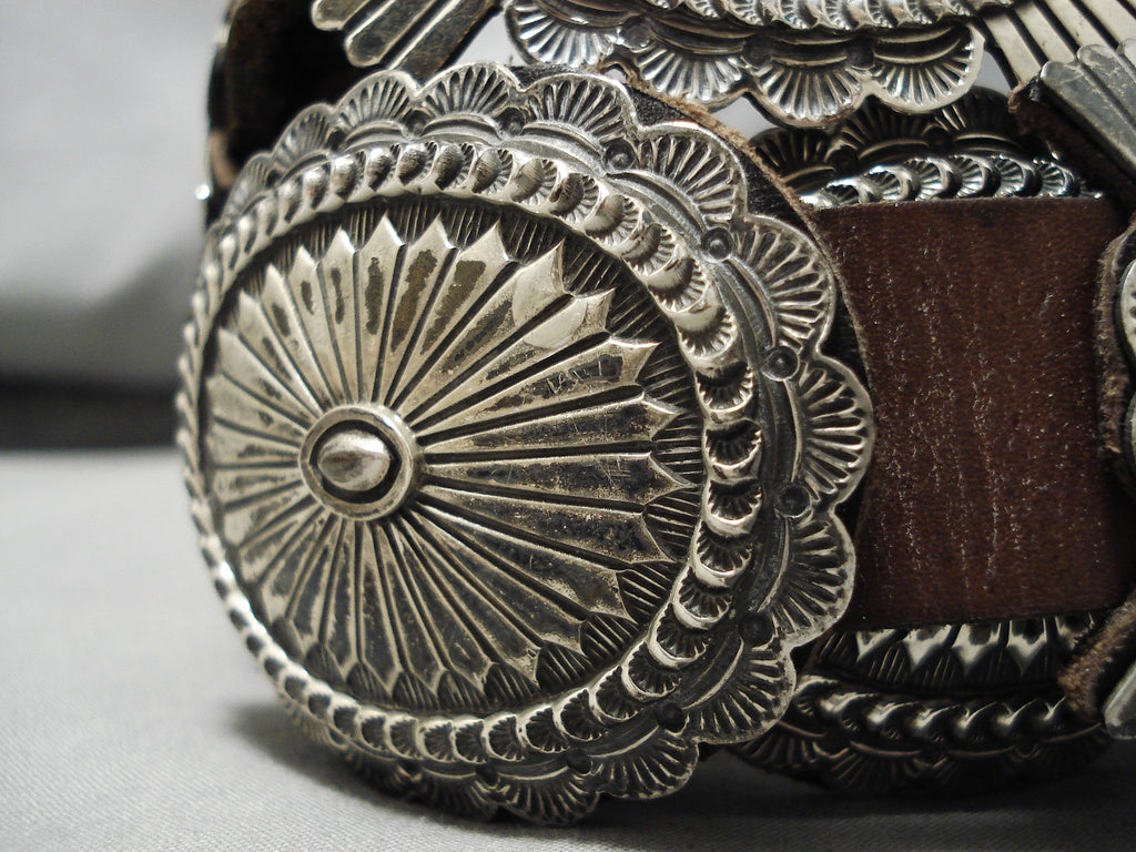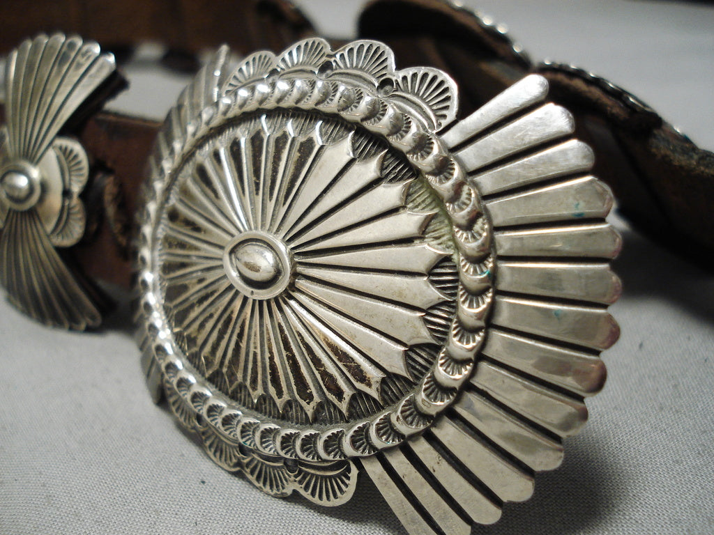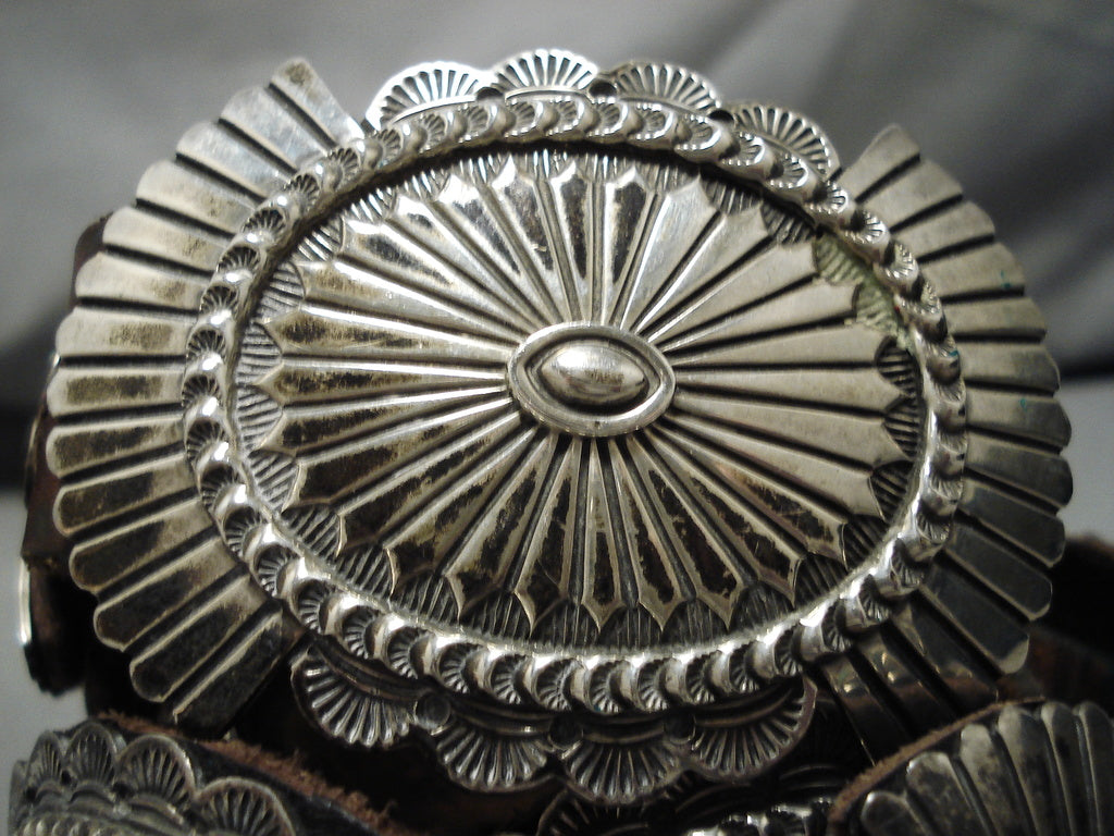 Heavy Vintage Native American Navajo Hand Wrought Sterling Silver Concho Belt Old