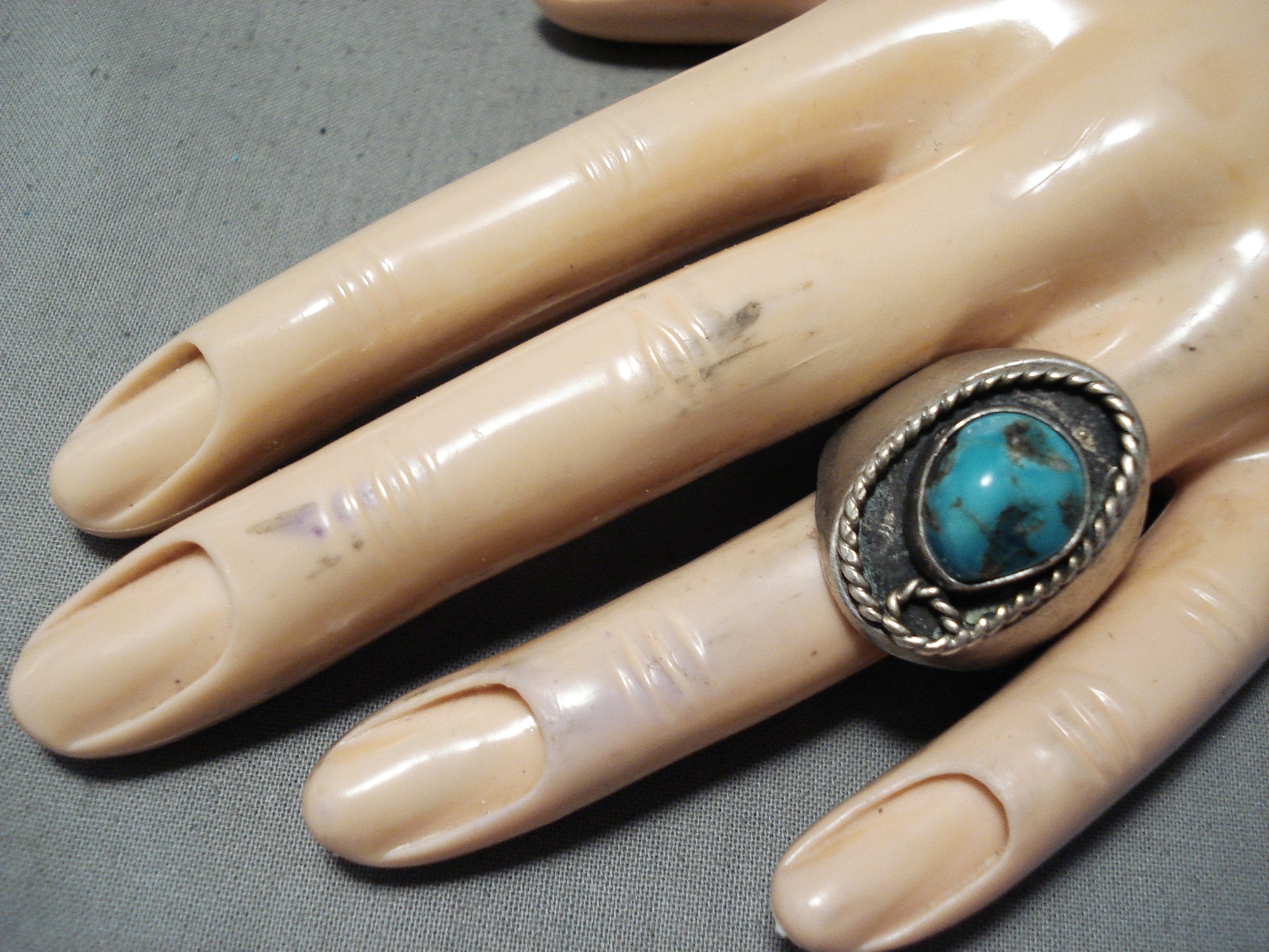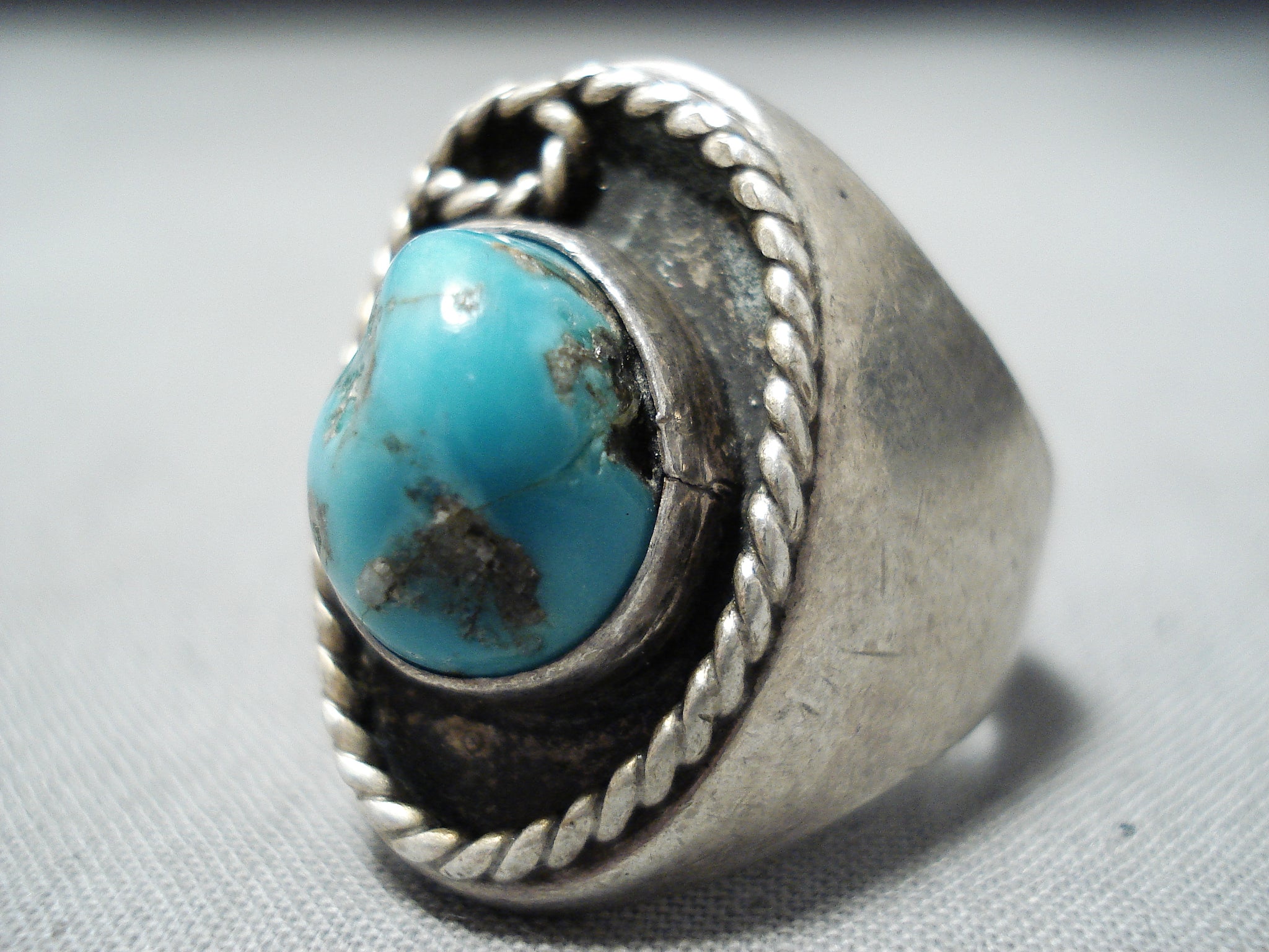 Heavy Vintage Native American Navajo Kingman Turquoise Sterling Silver Ring Old