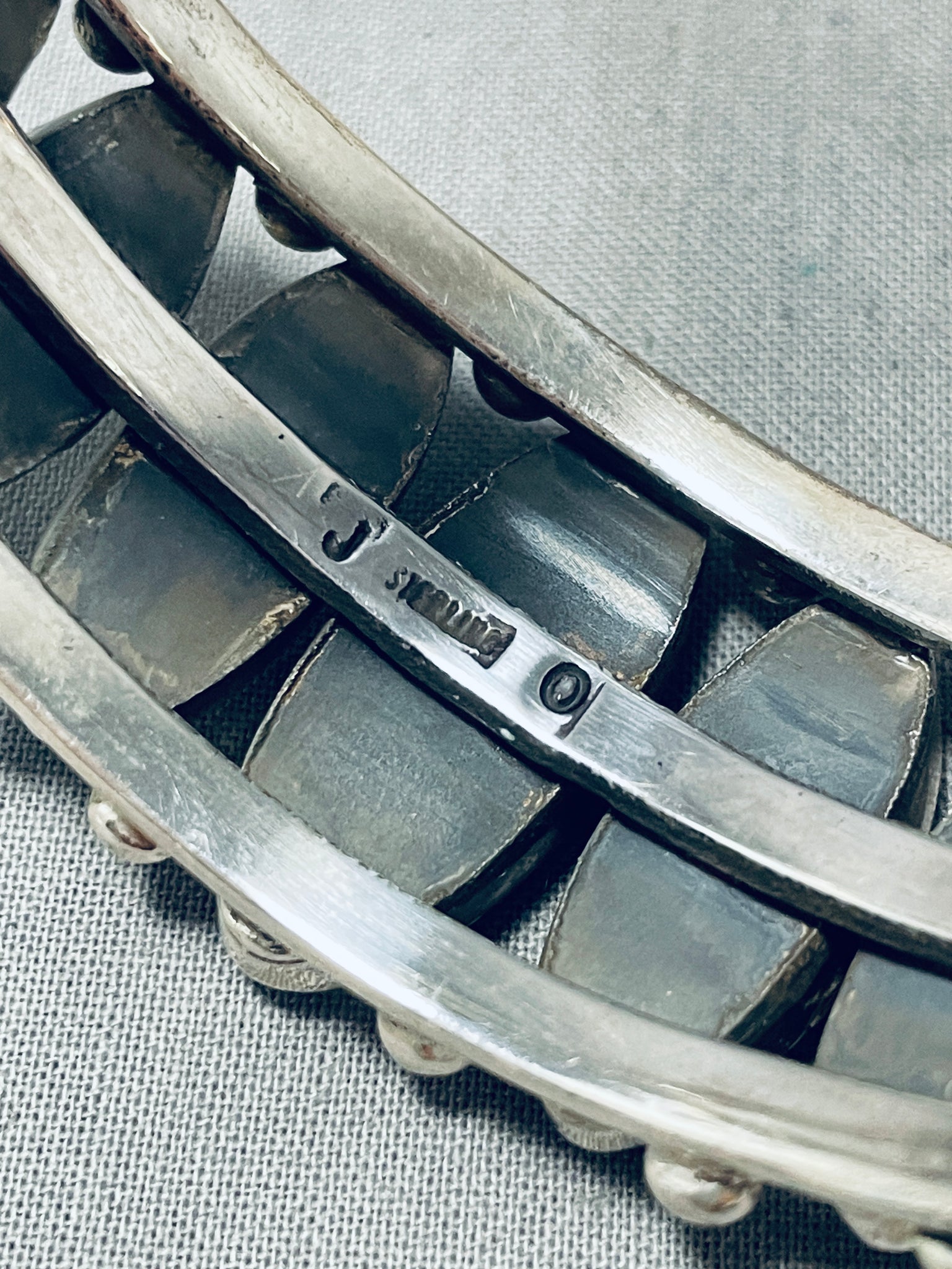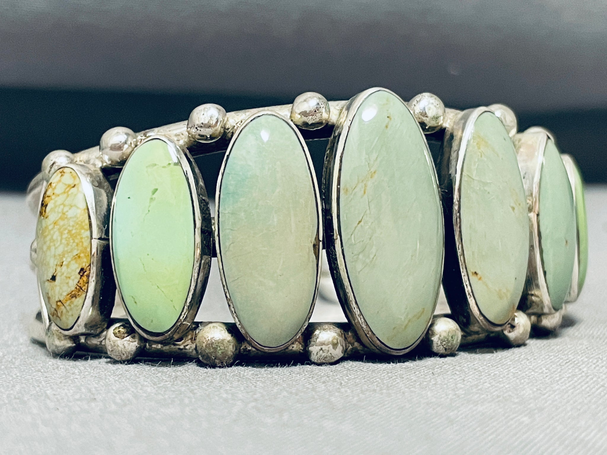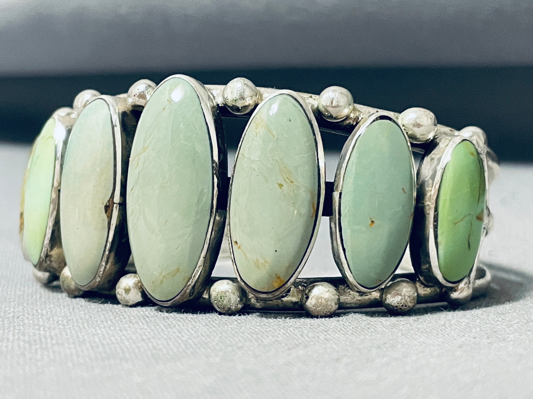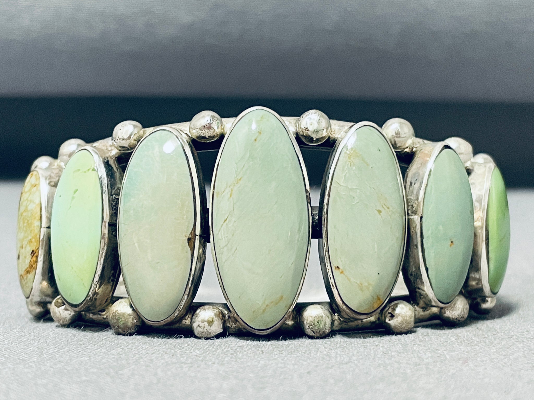 Heavy Vintage Native American Navajo Light Green Turquoise Sterling Silver Bracelet