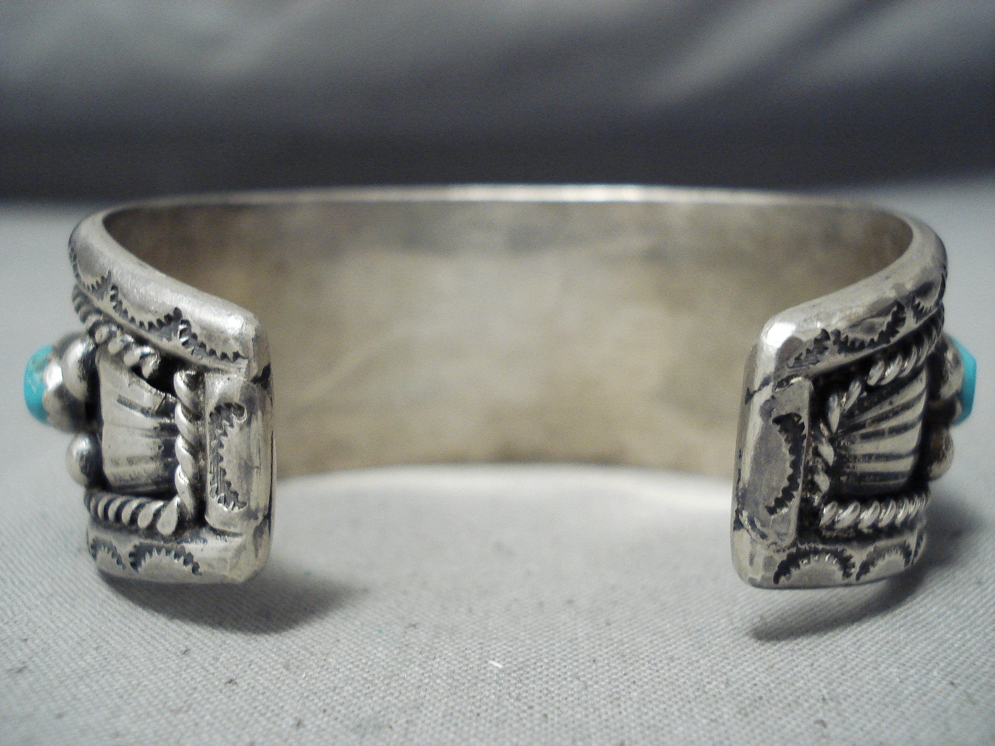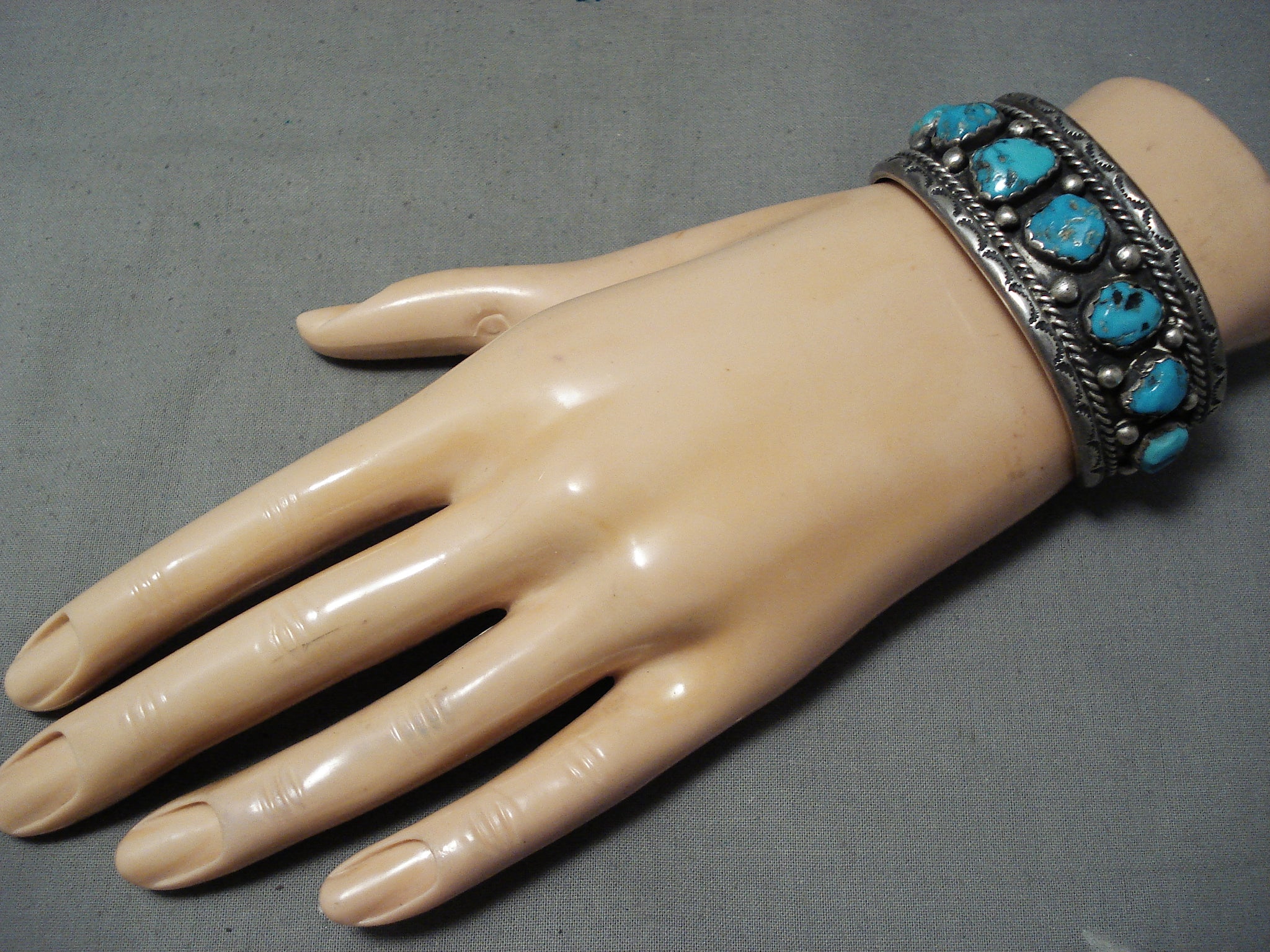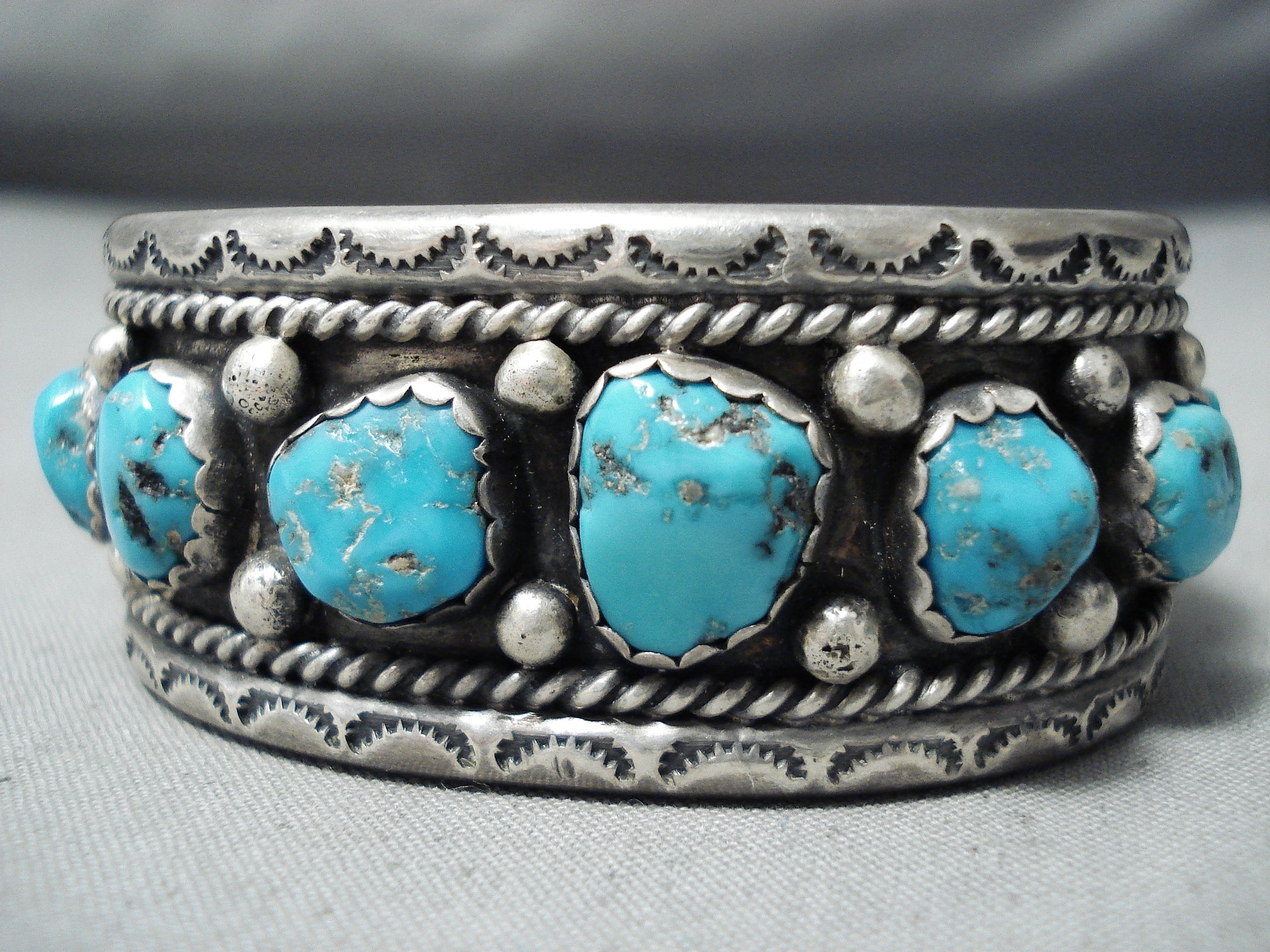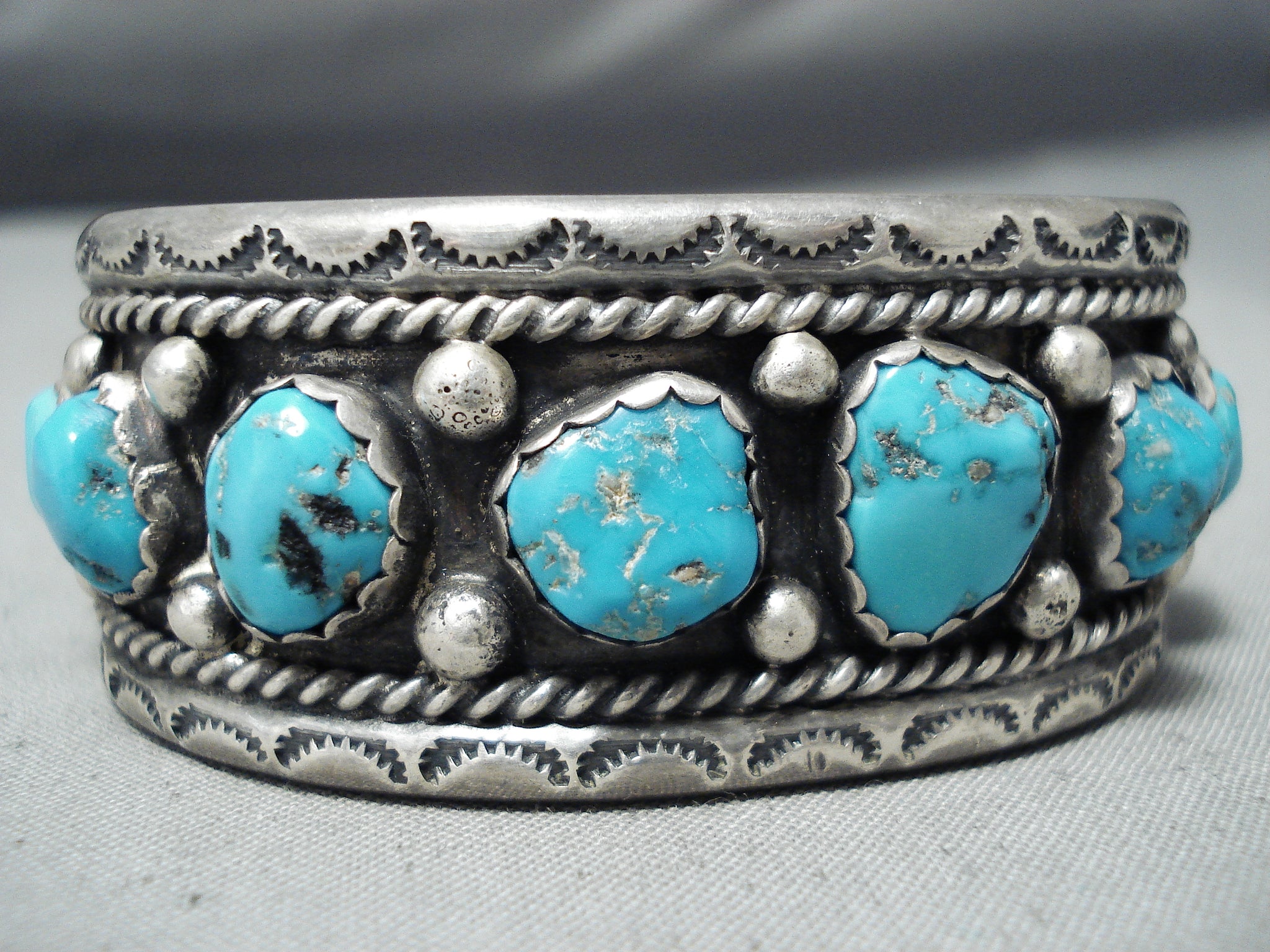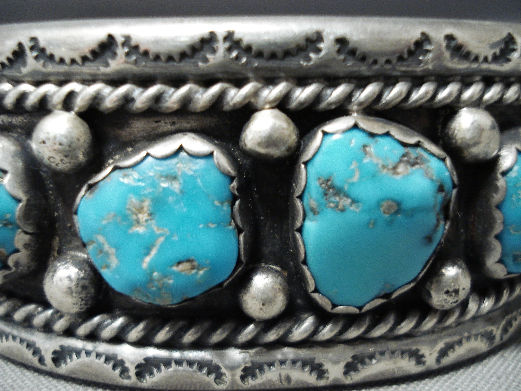 Heavy Vintage Native American Navajo Old Kingman Turquoise Sterling Silver Bracelet Old