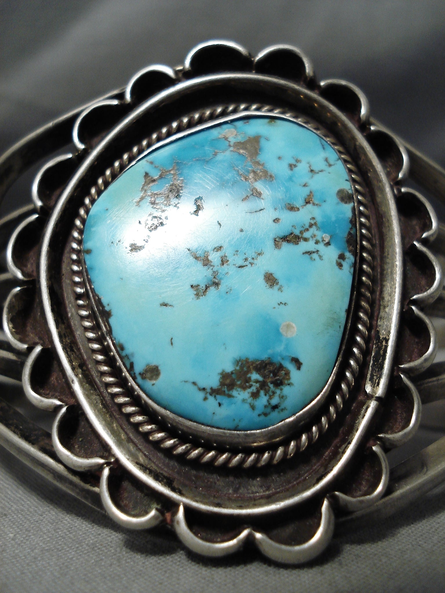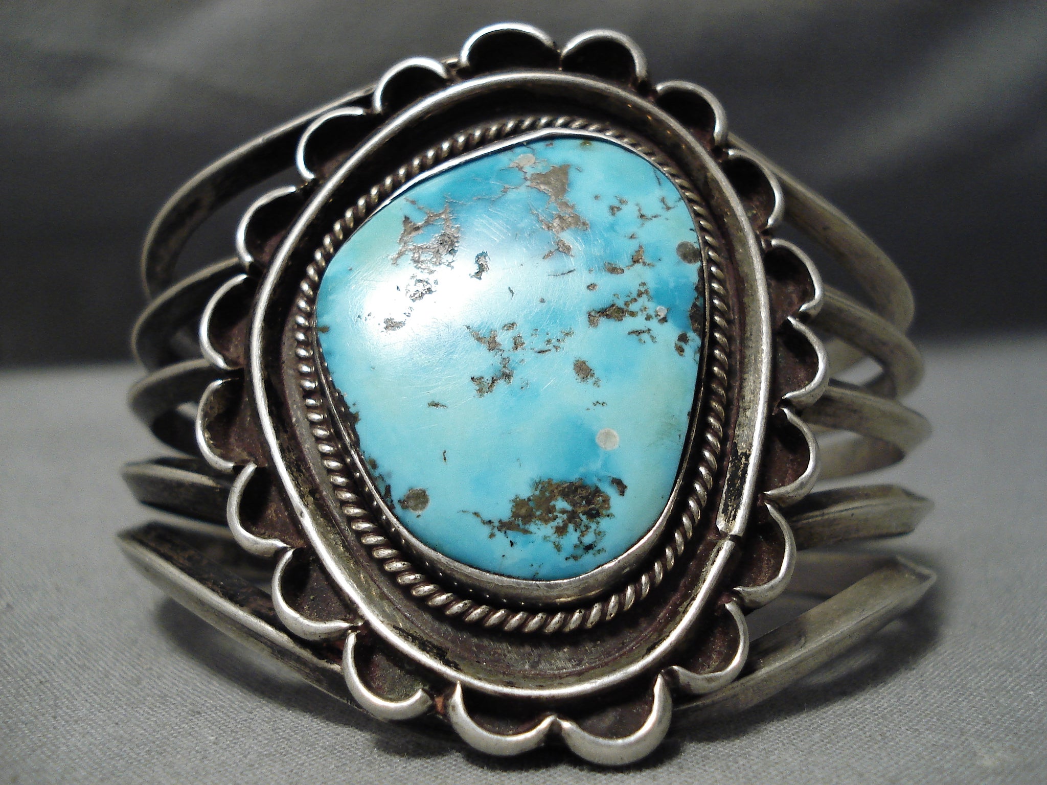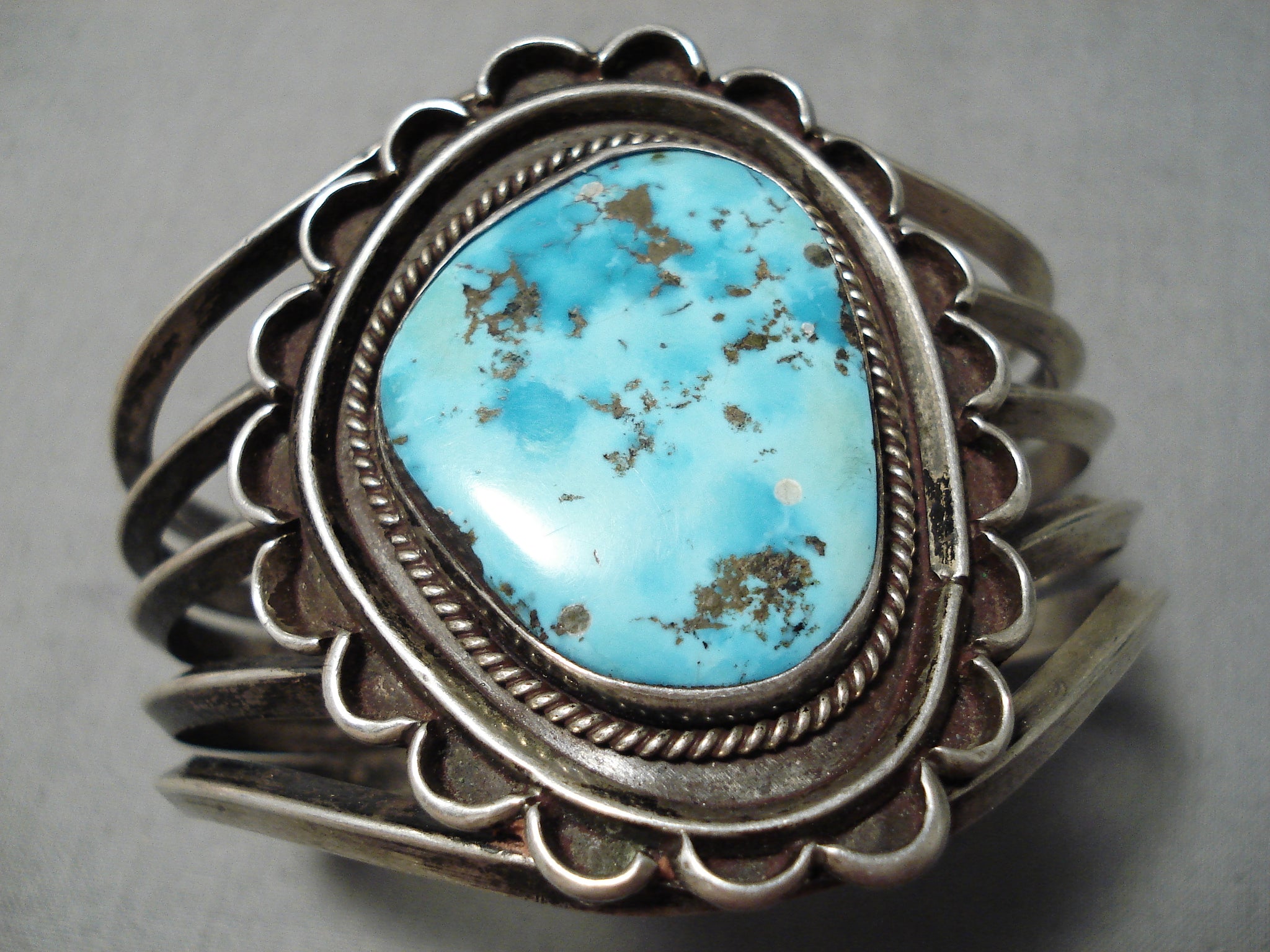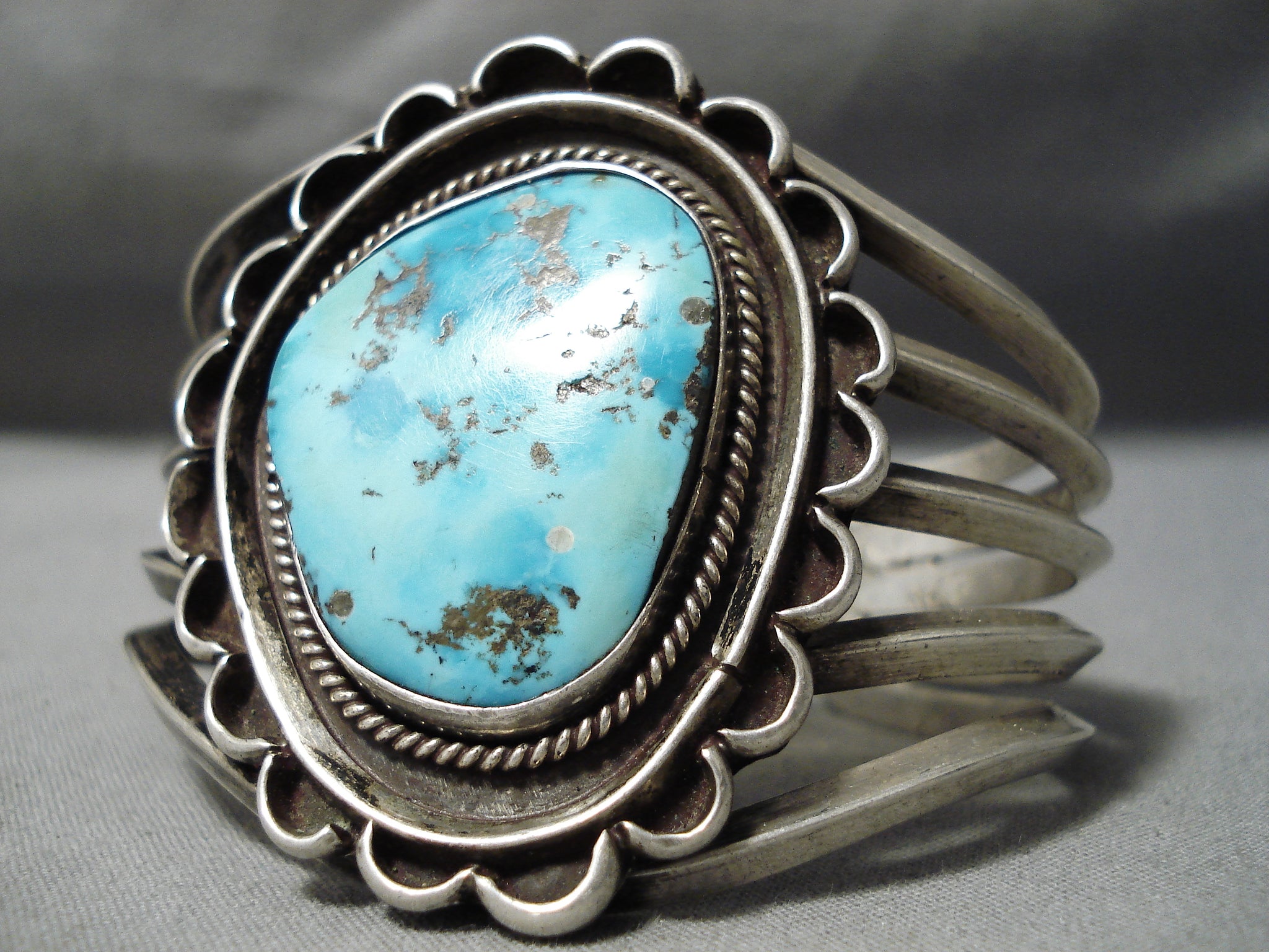 Heavy Vintage Native American Navajo Rare Turquoise Sterling Silver Bracelet Old