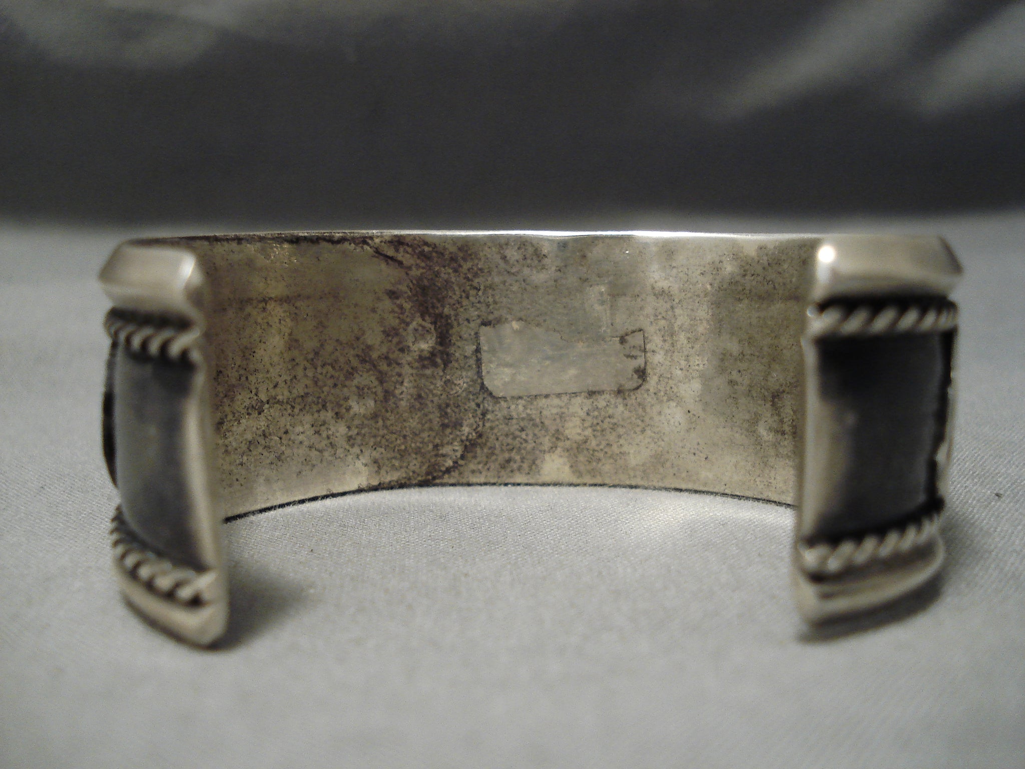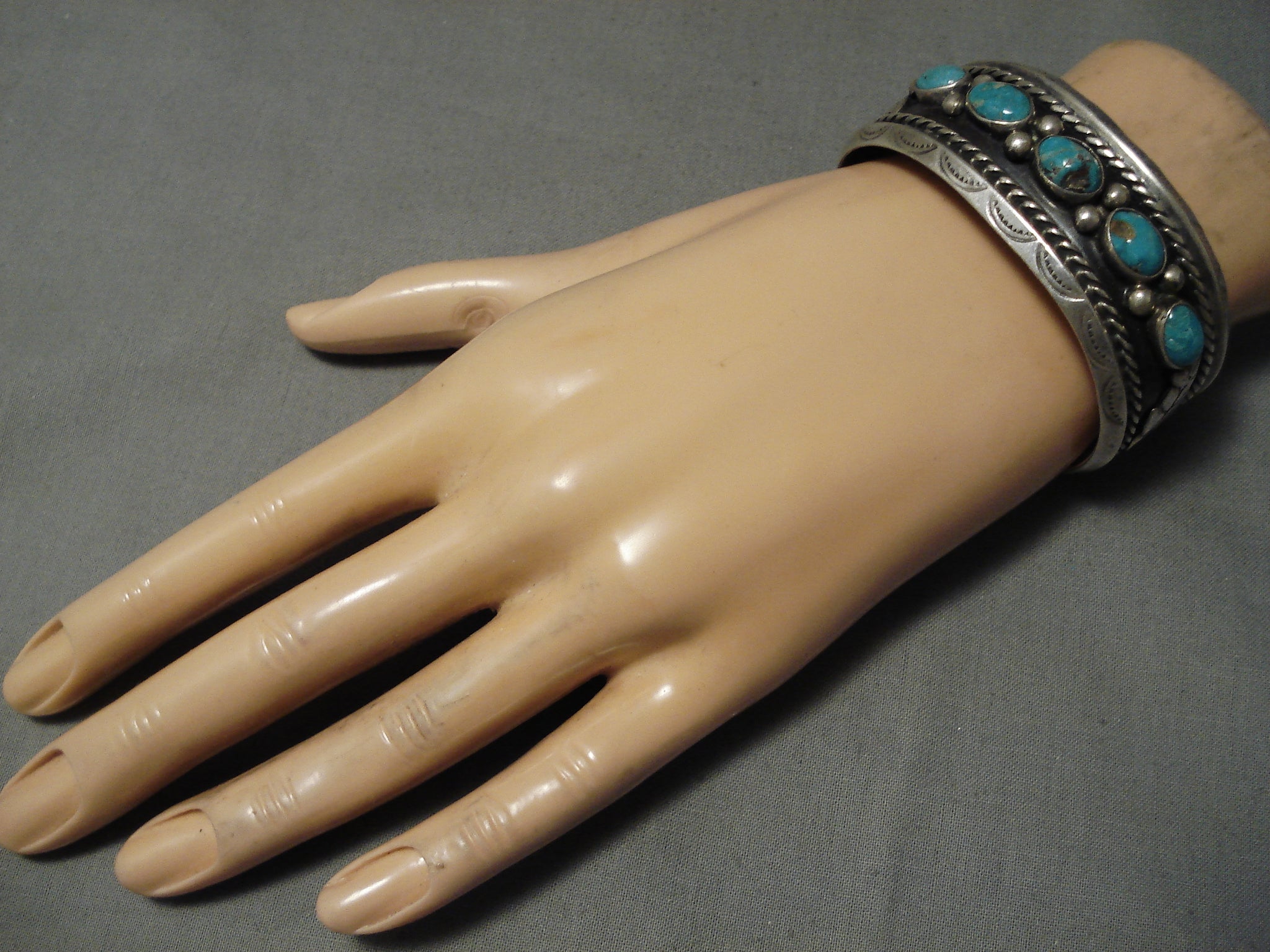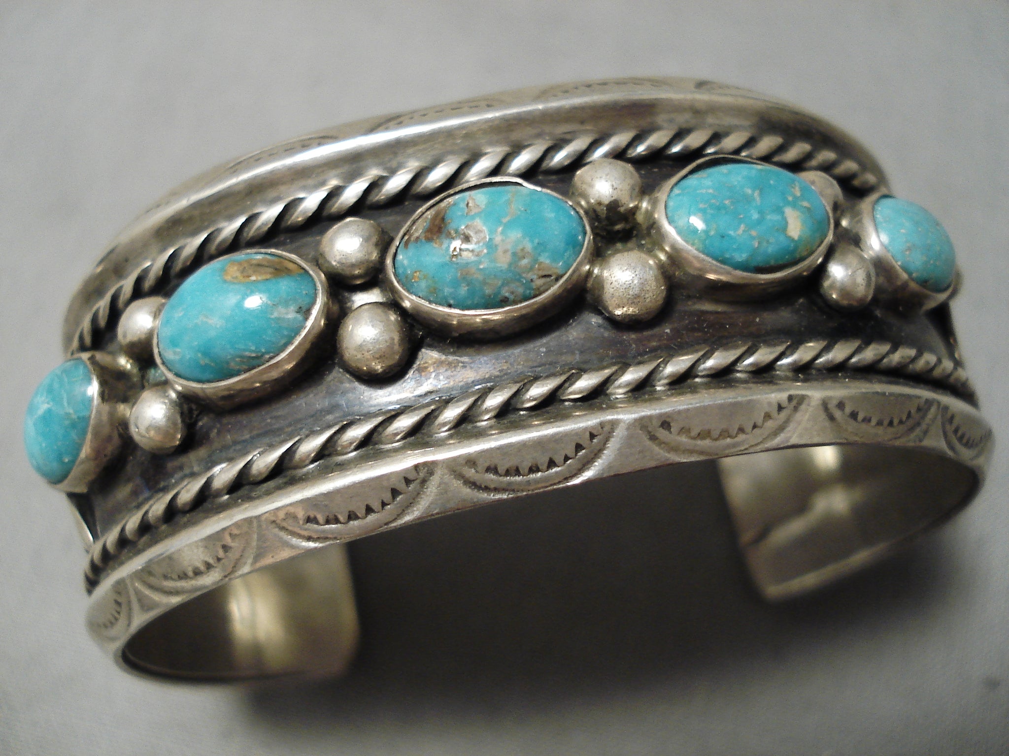 Heavy!! Vintage Native American Navajo Sterling Silver Royston Turquoise Leaf Bracelet