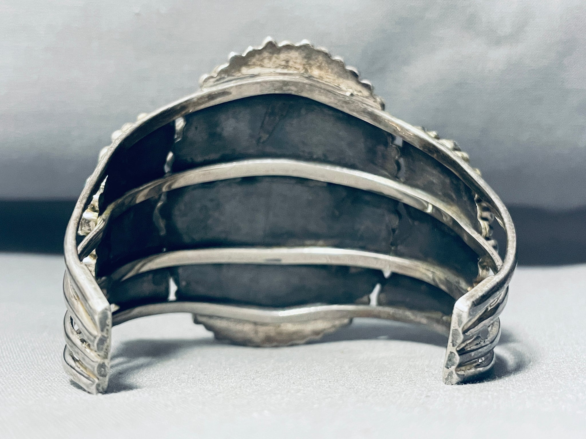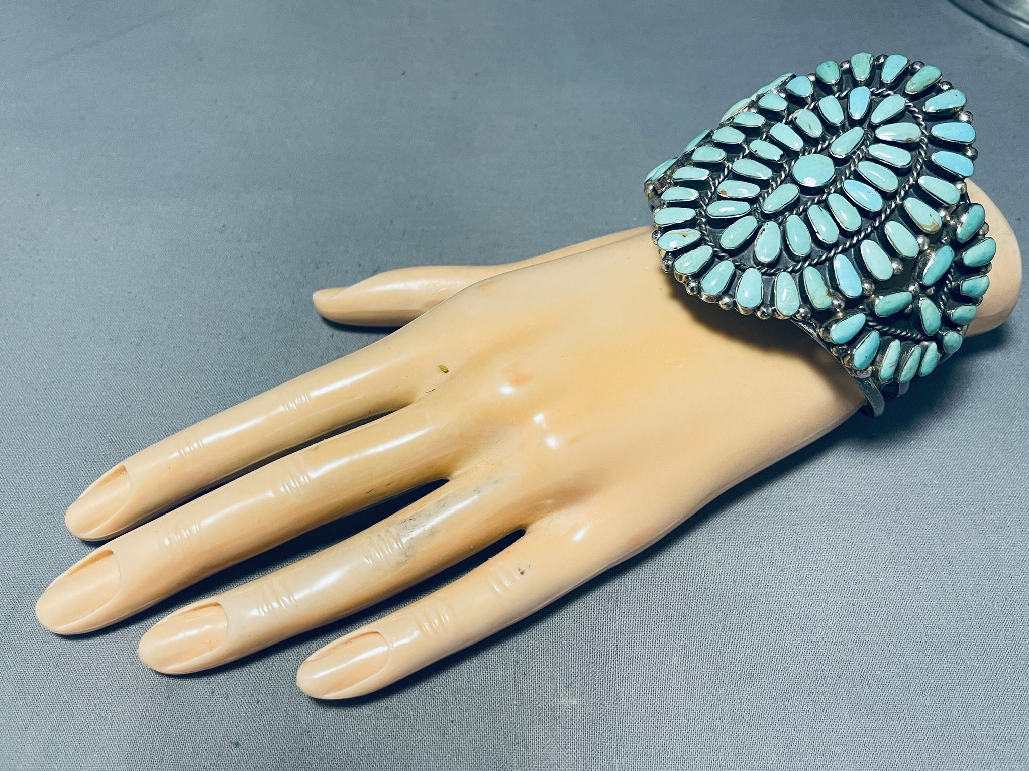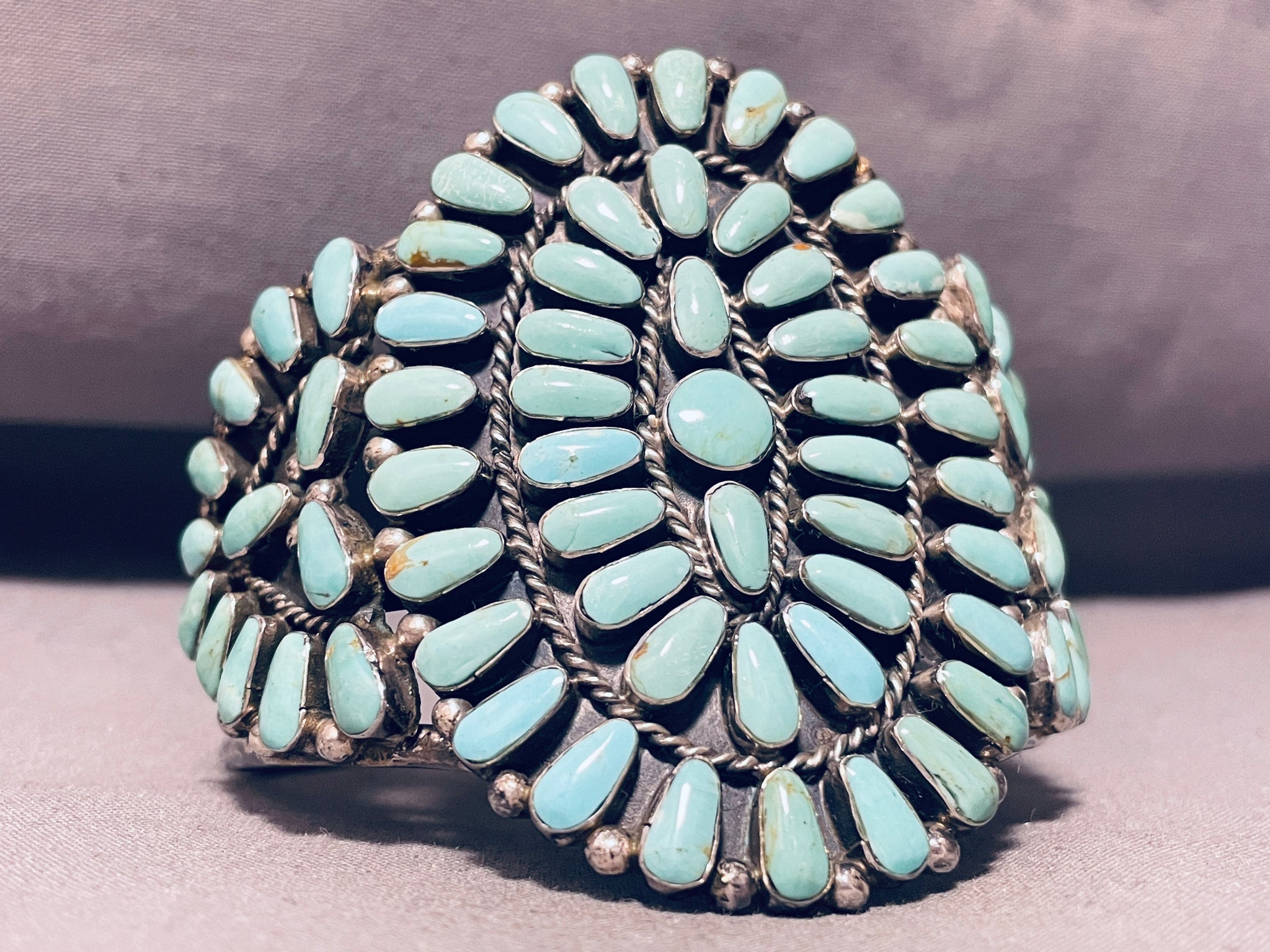 Heavy Vintage Native American Navajo Turquoise Cluster Sterling Silver Bracelet Cuff Old