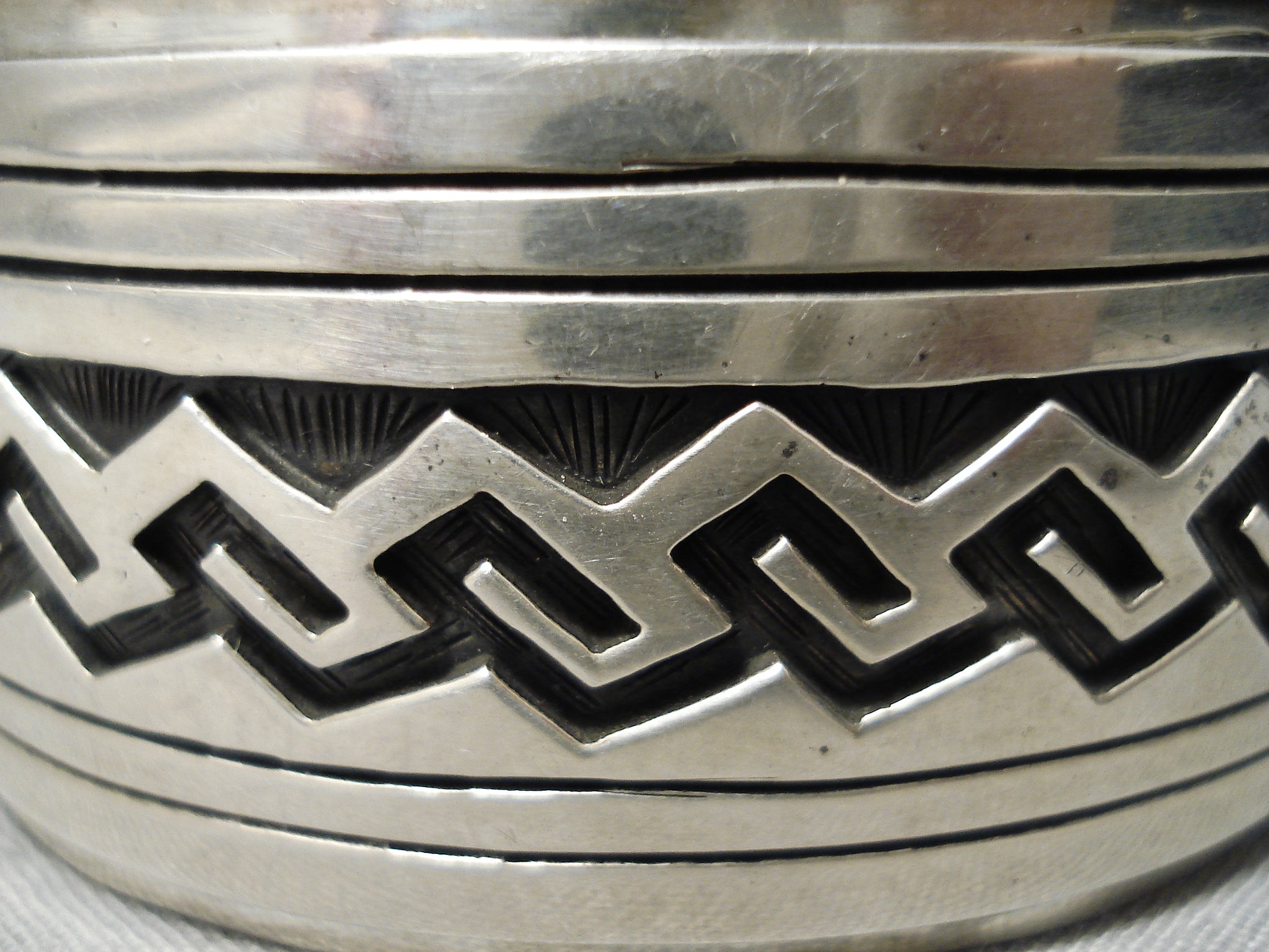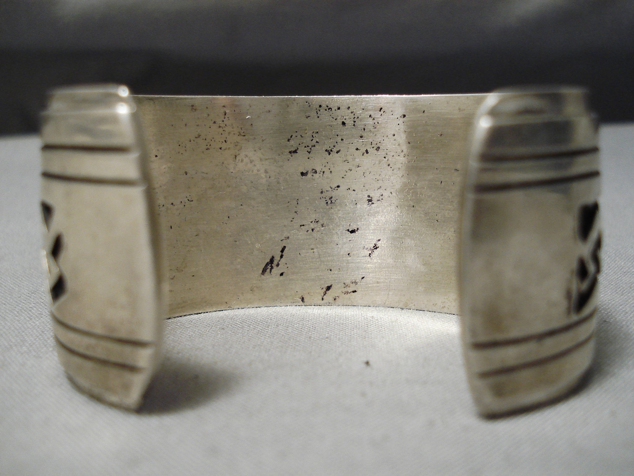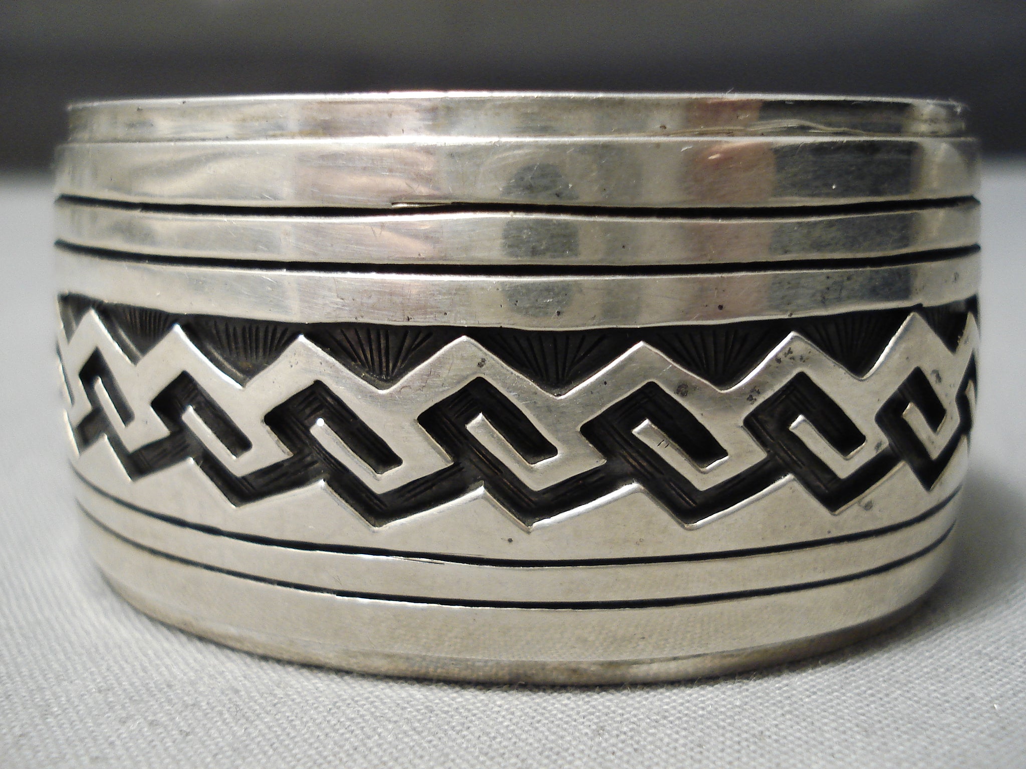 Heavy Wide Vintage Native American Navajo Rug Water Sterling Silver Bracelet Old