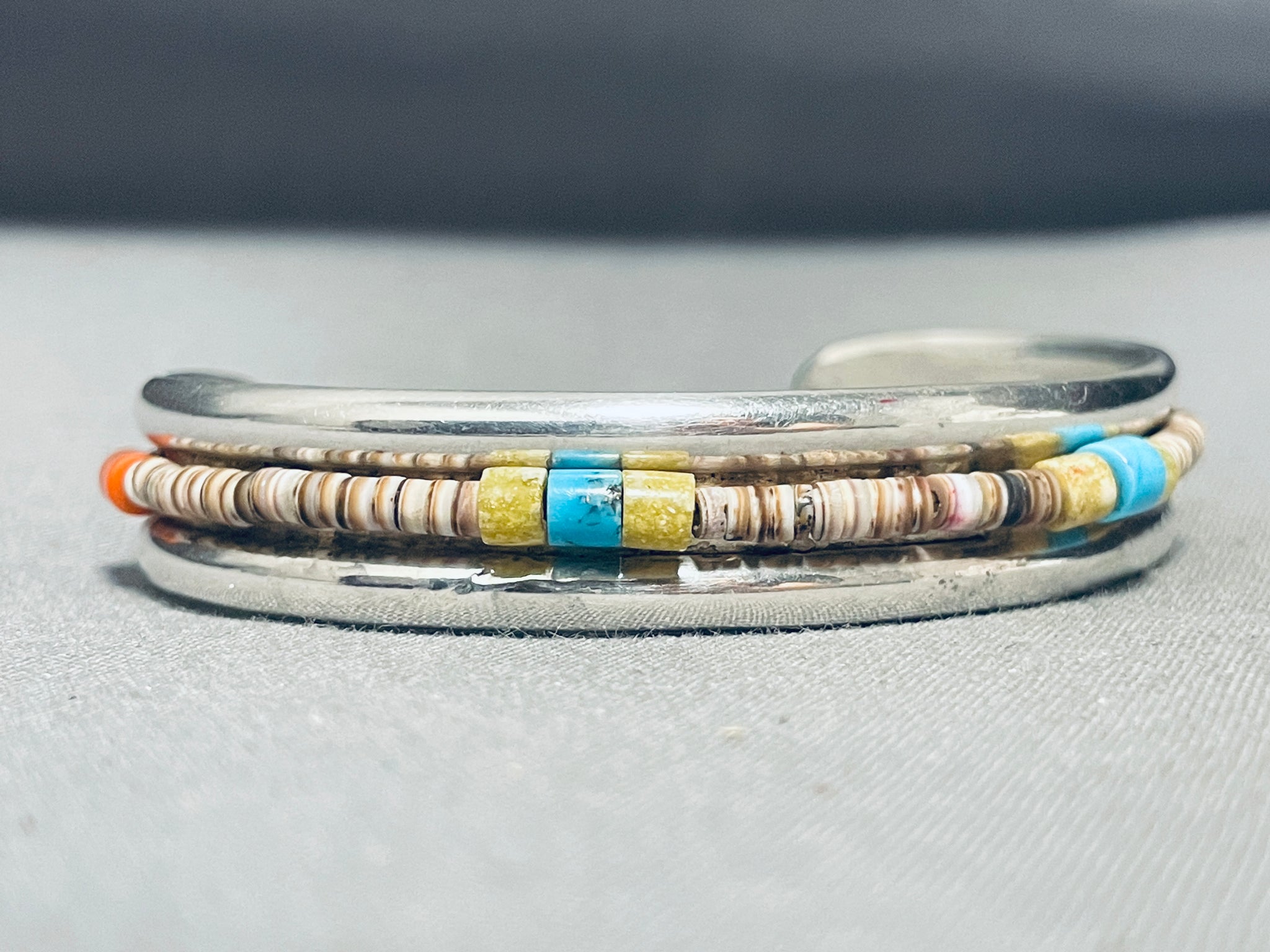 Heishi Love Vintage Native American Navajo Turquoise Sterling Silver Bracelet Old