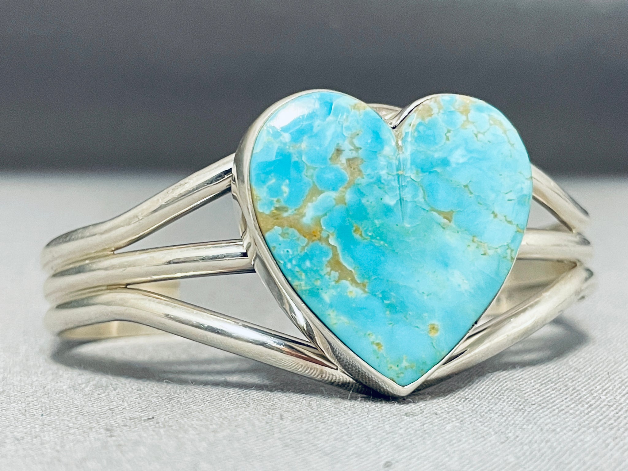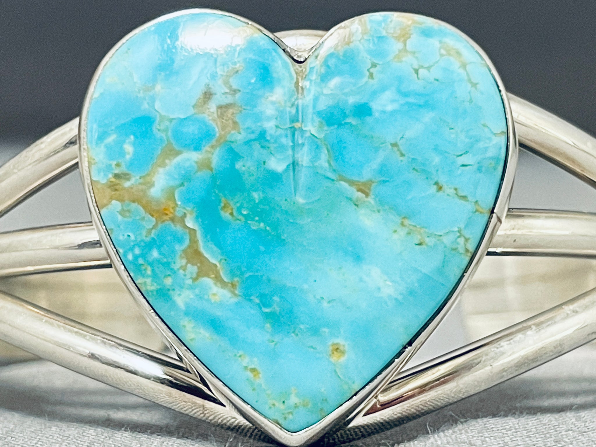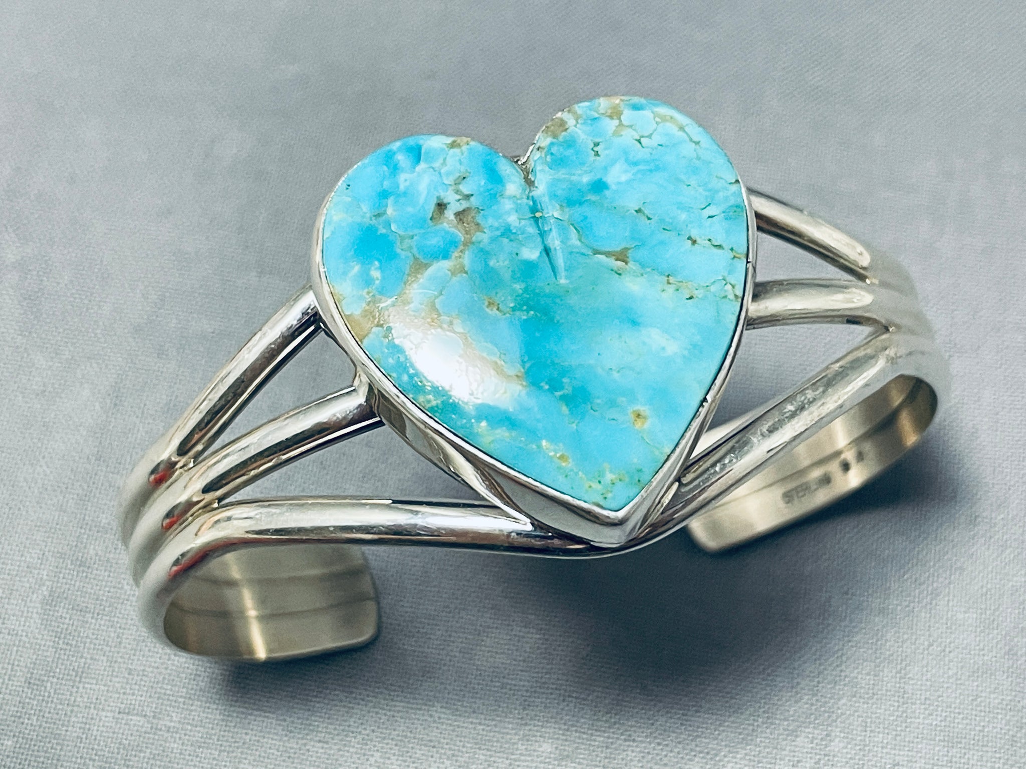 Herm Smith Heart Native American Navajo Turquoise Heart Sterling Silver Bracelet
