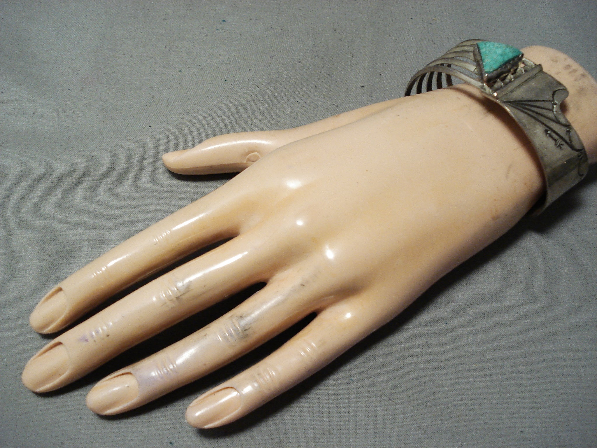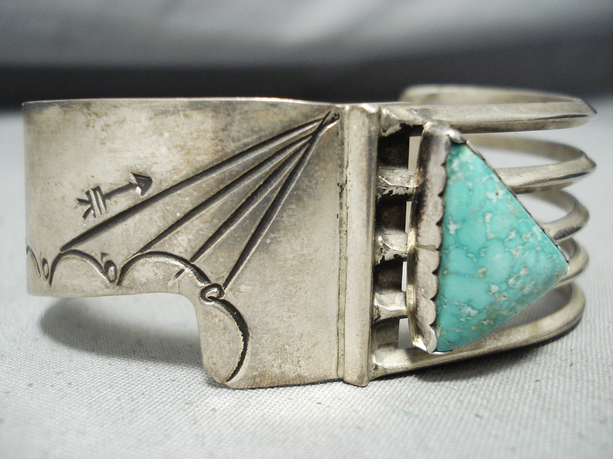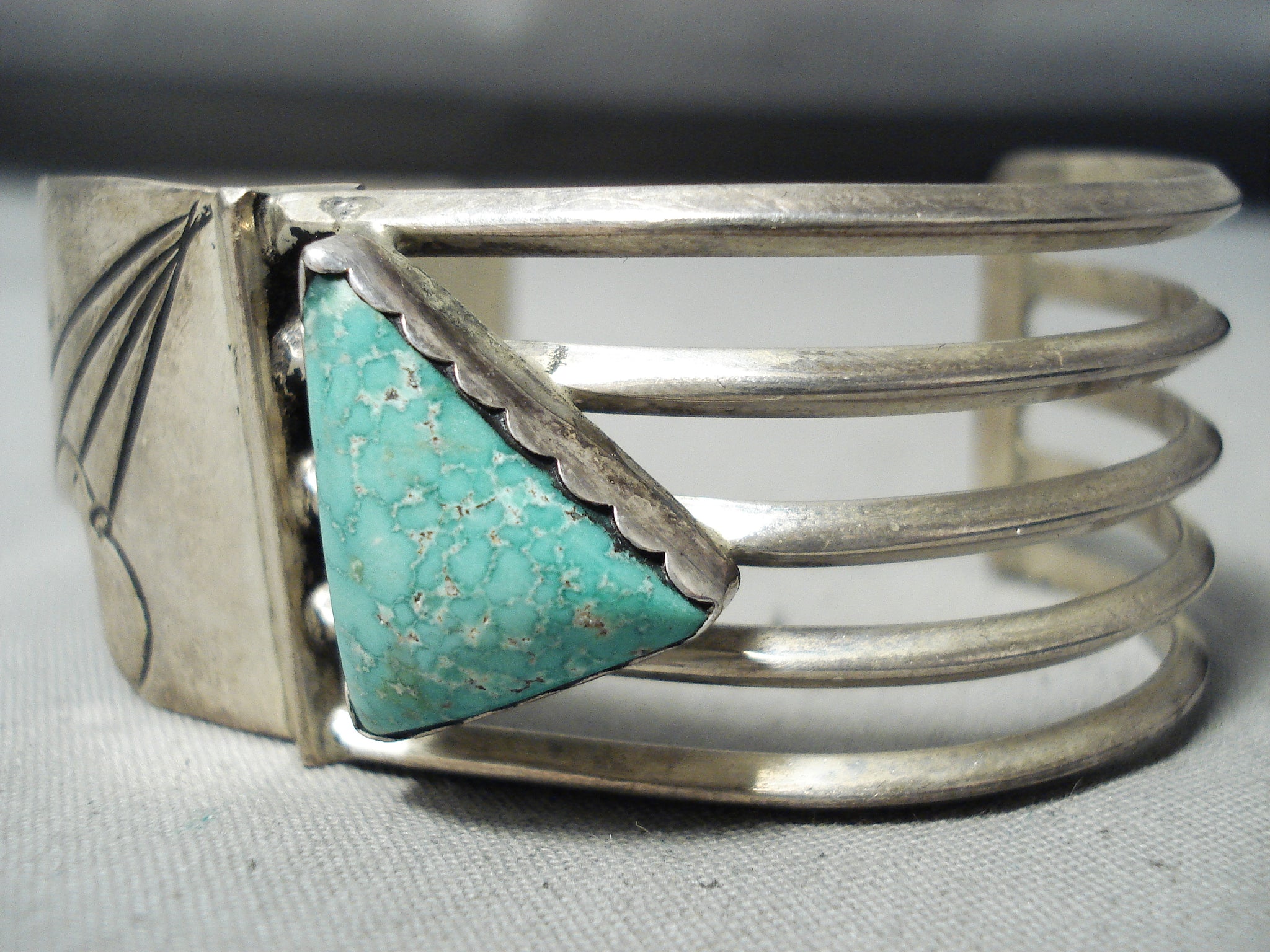 High Quality Vintage Native American Navajo Carico Lake Turquoise Sterling Silver Bracelet