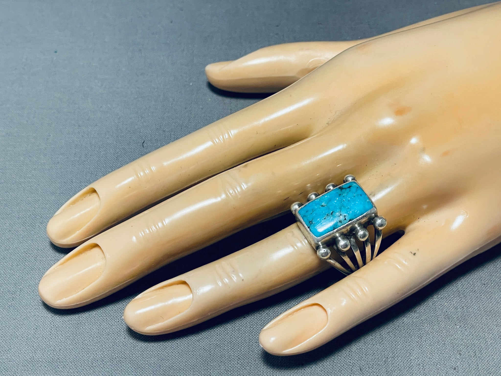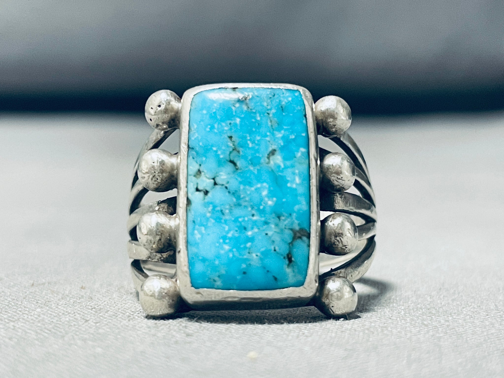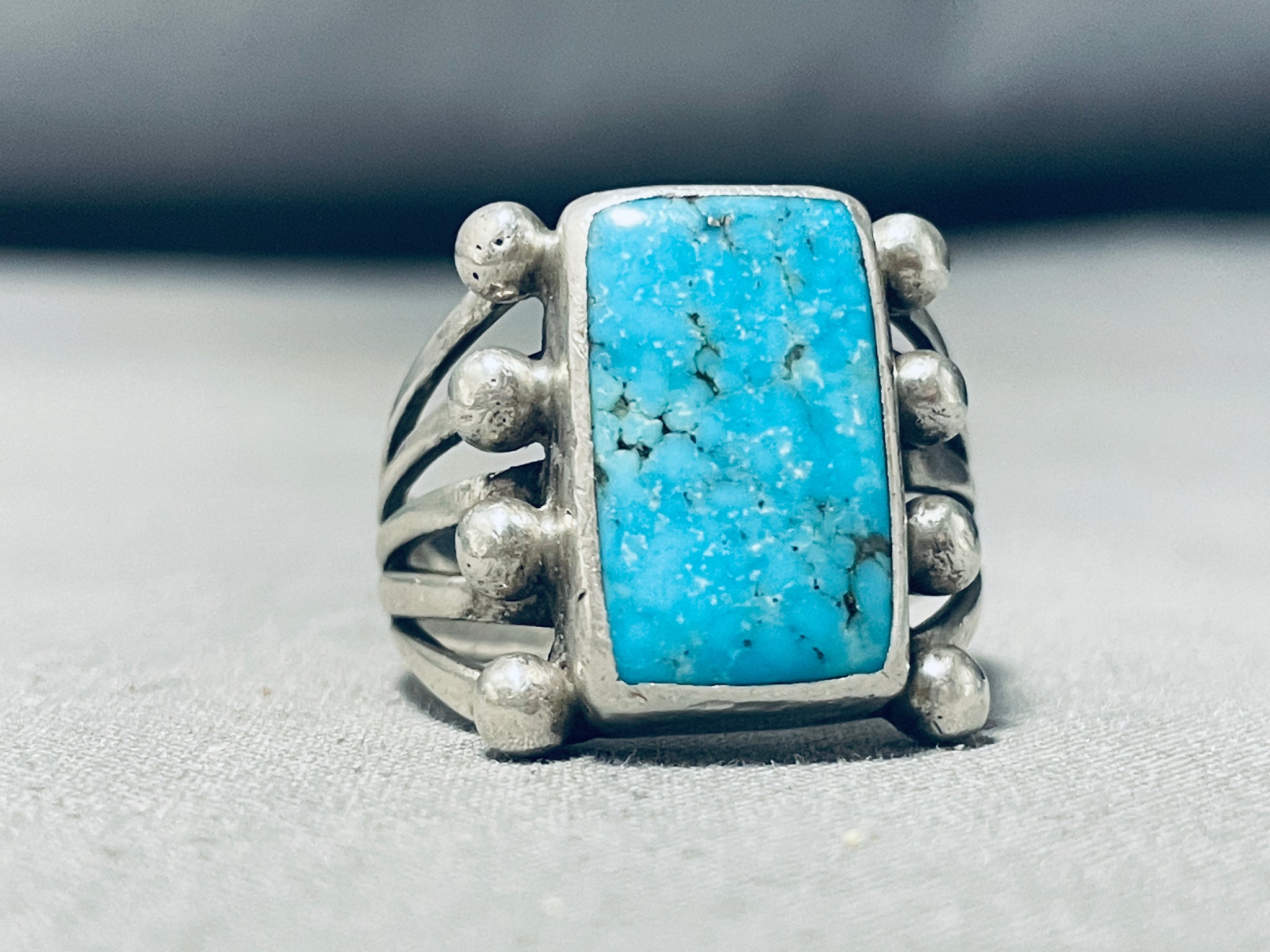High Quality Vintage Native American Navajo Turquoise Sterling Silver Ring Old