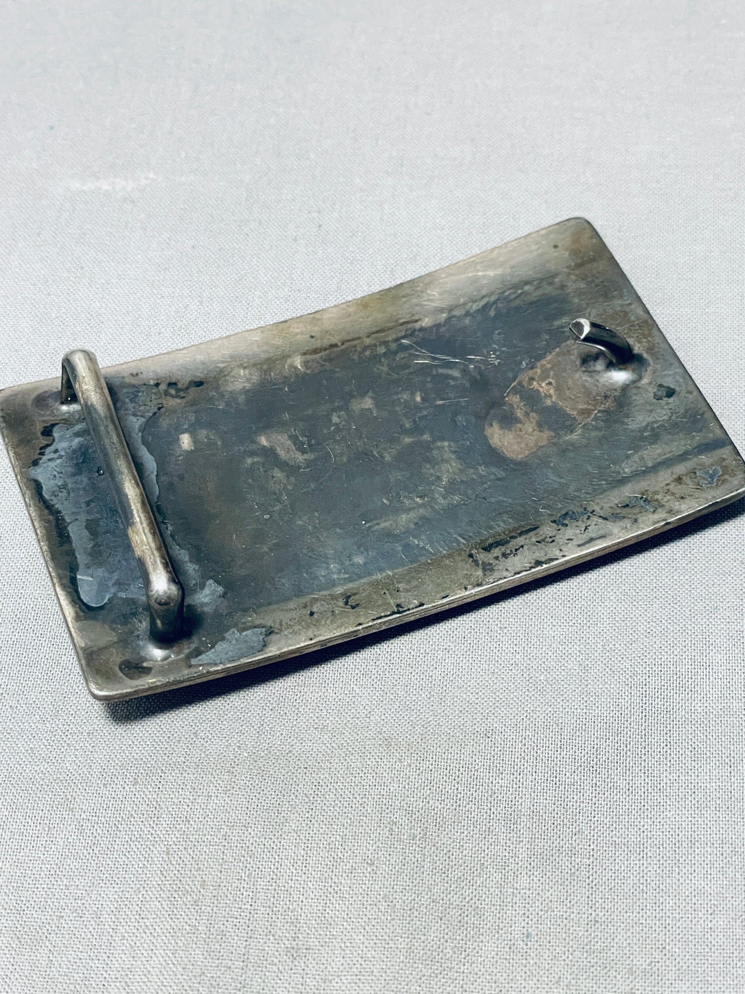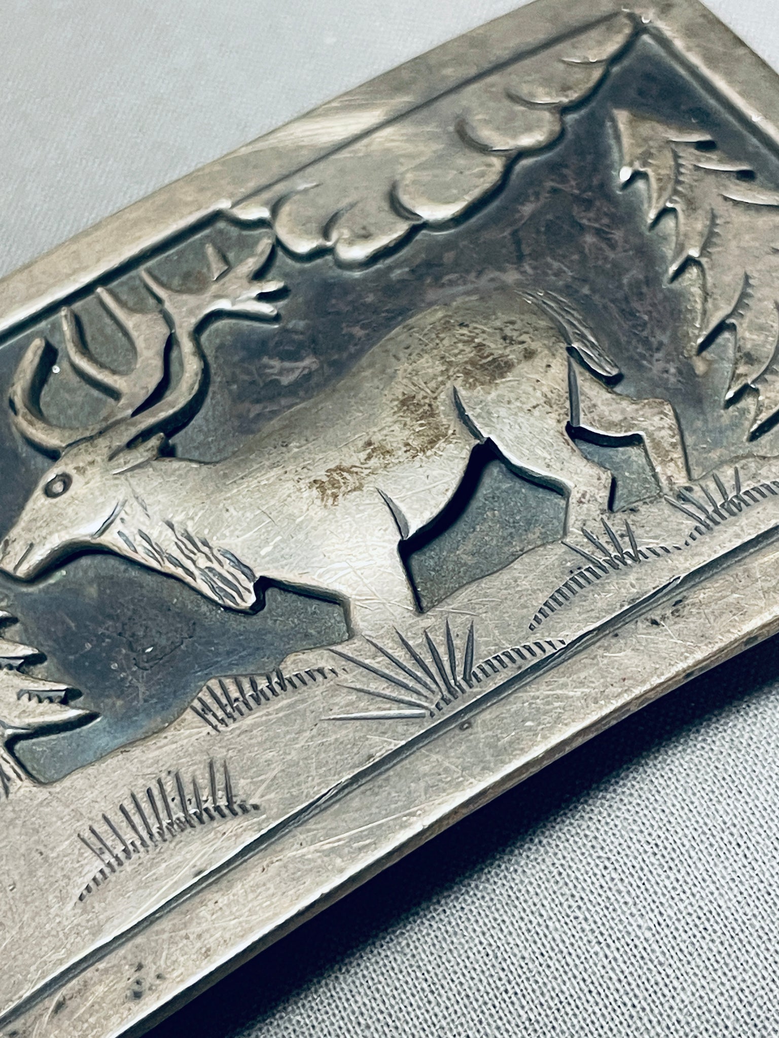 Highly Detailed Elk Vintage Native American Navajo Sterling Silver Buckle