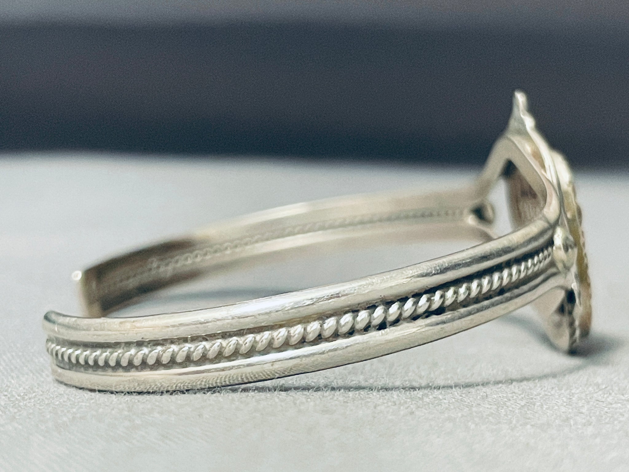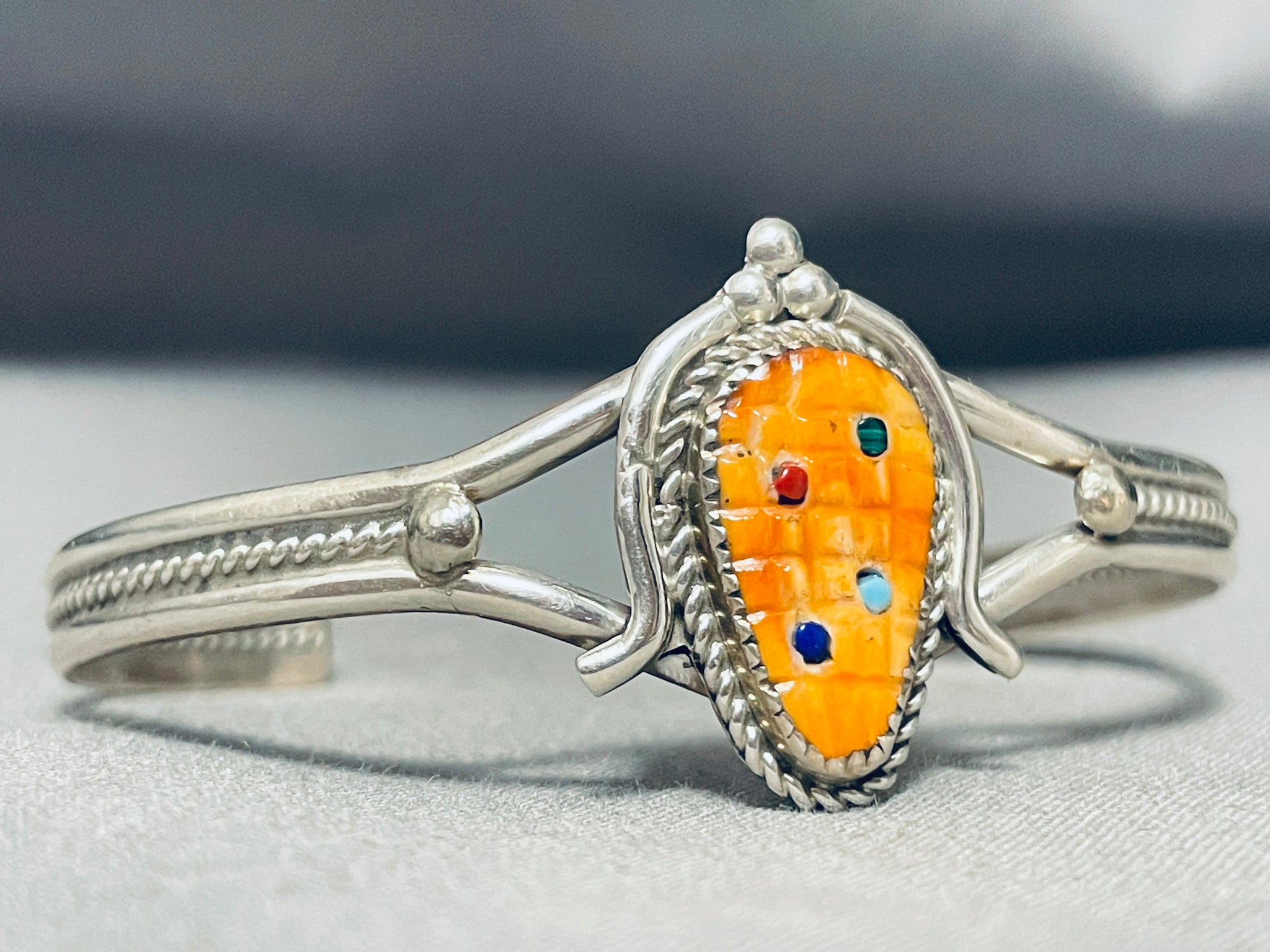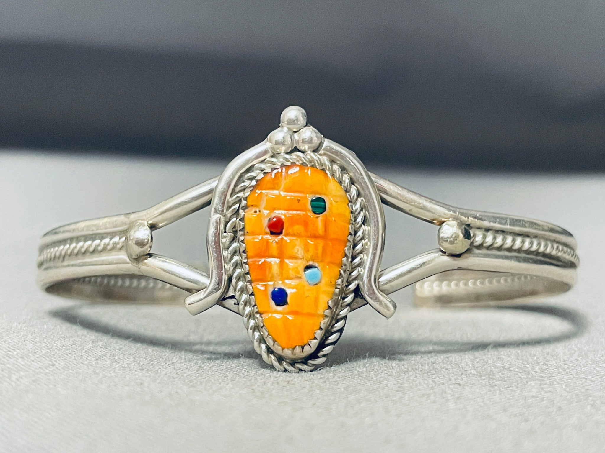 Highly Detailed Hand Cavred Vintage Native American Zuni Shell Turquoise Inlay Bracelet