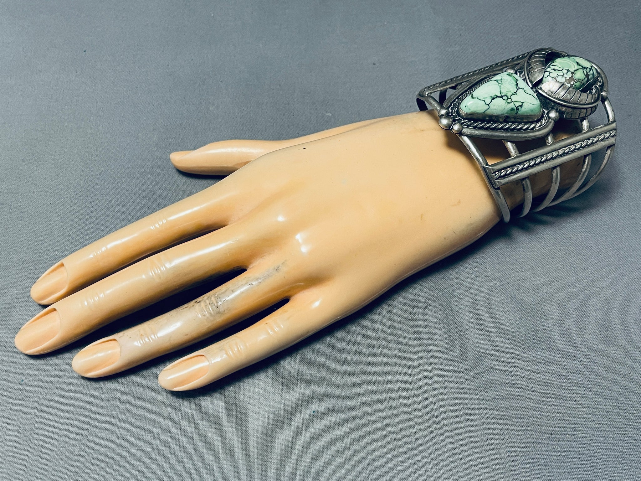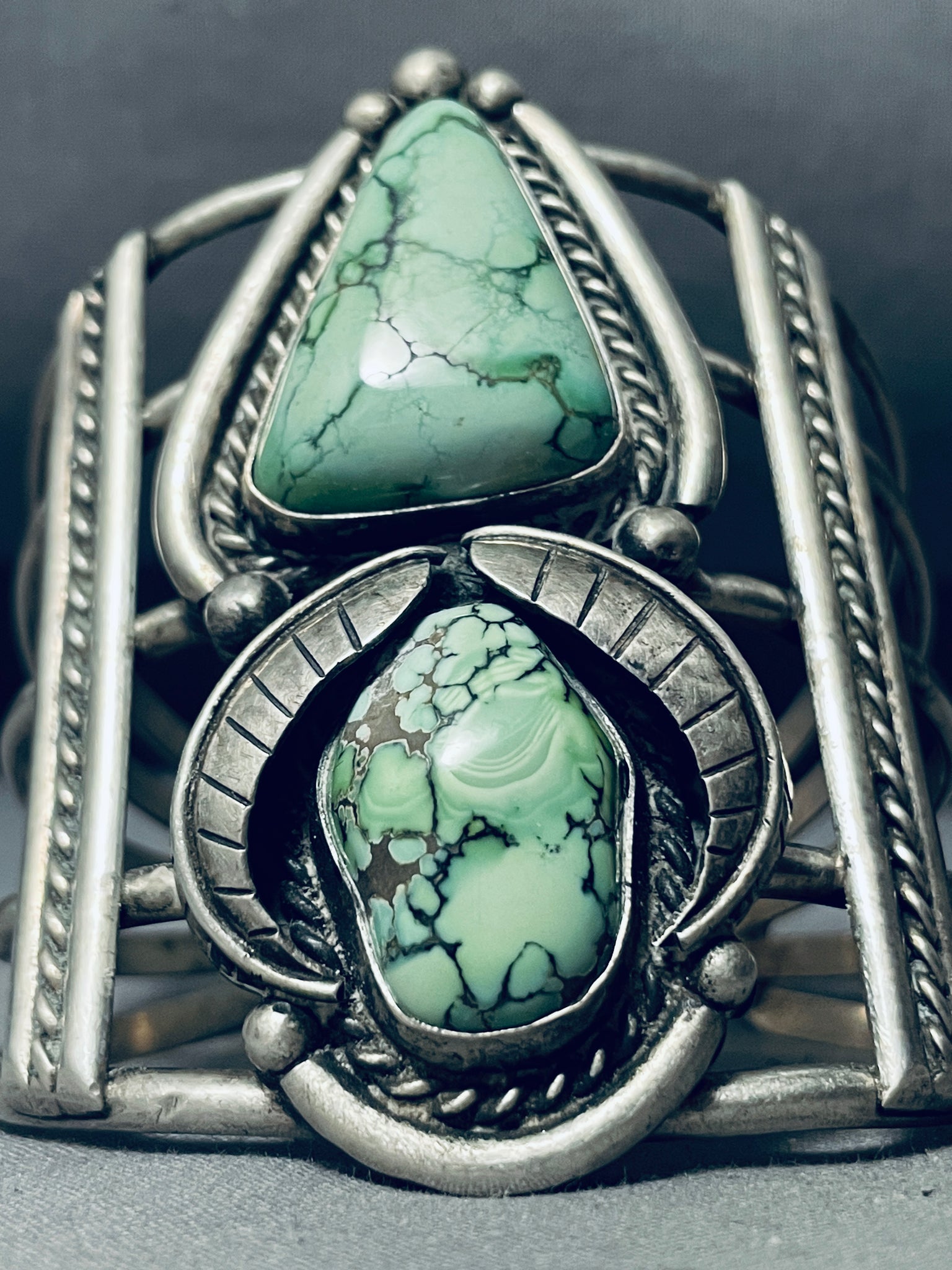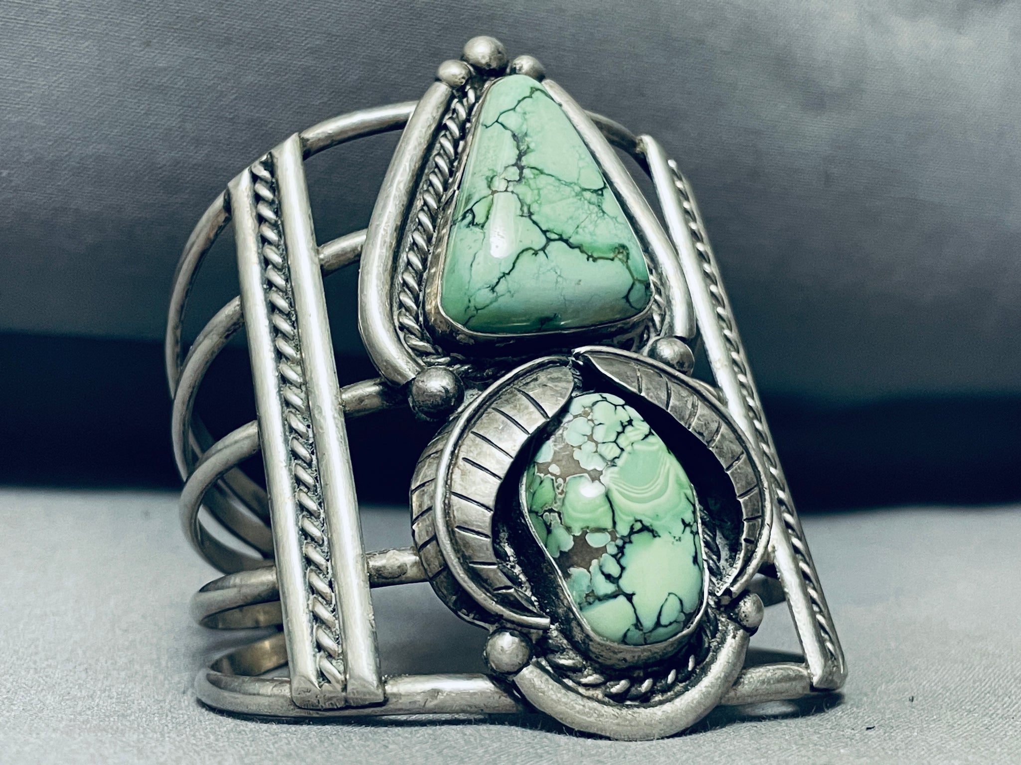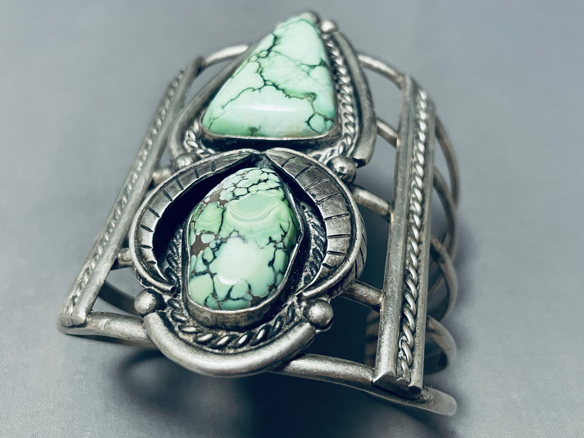 Highly Rare Damale Mine Turquoise Vintage Native American Navajo Sterling Silver Bracelet