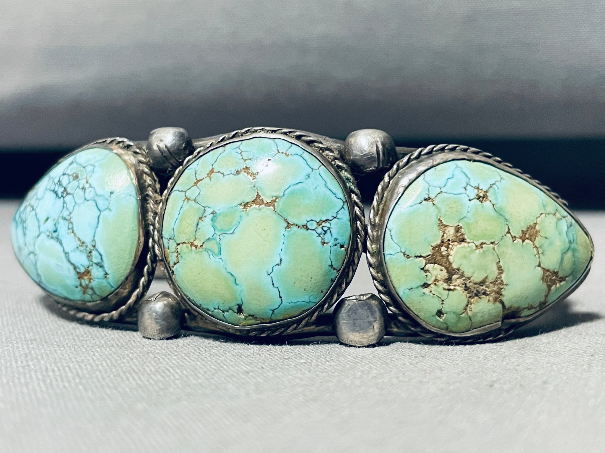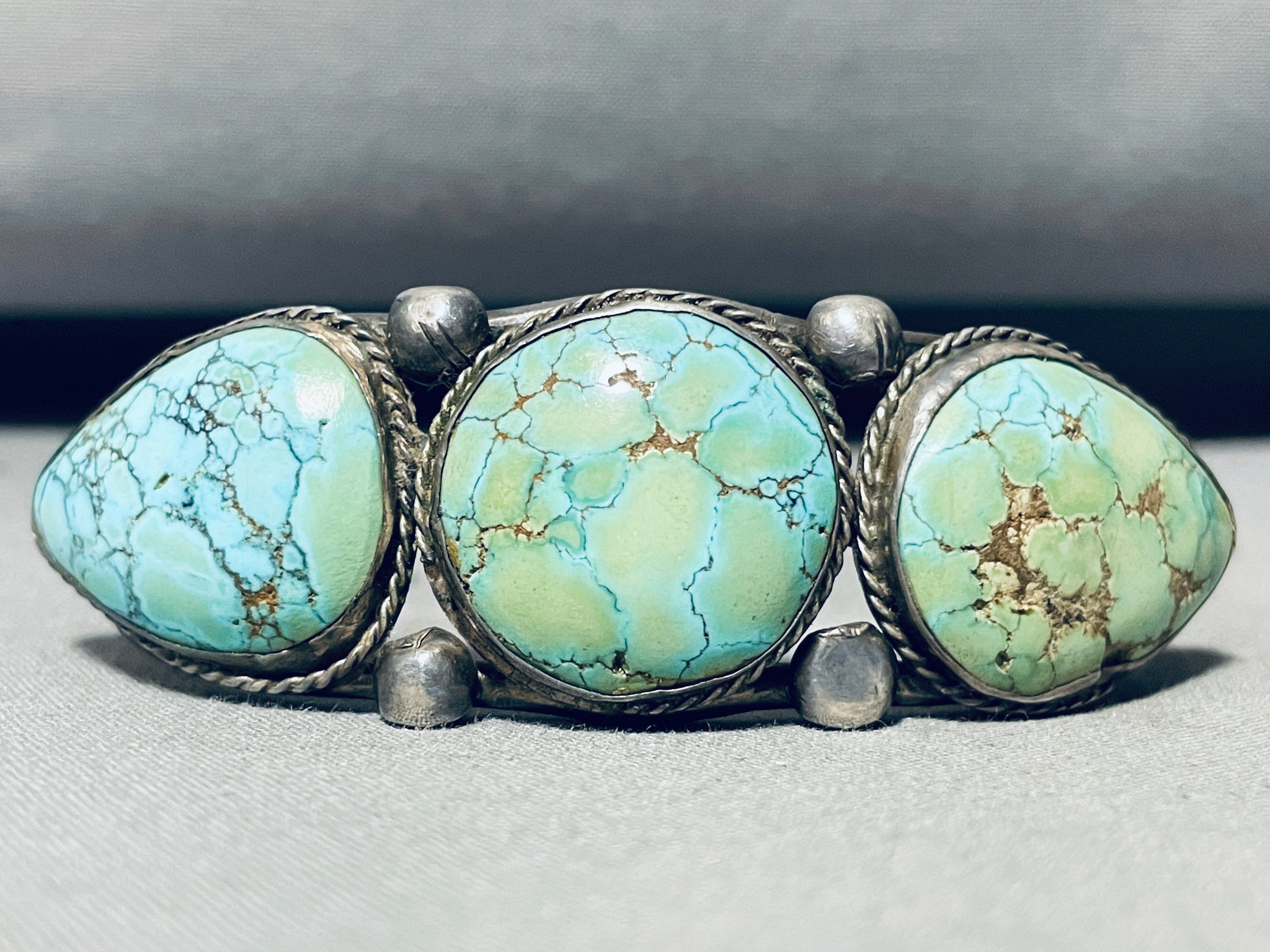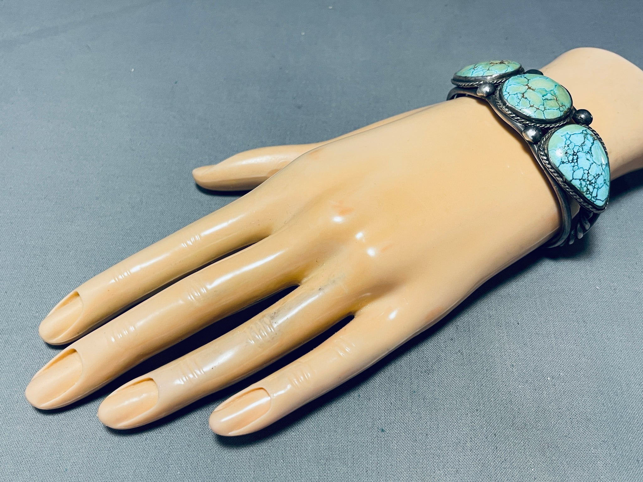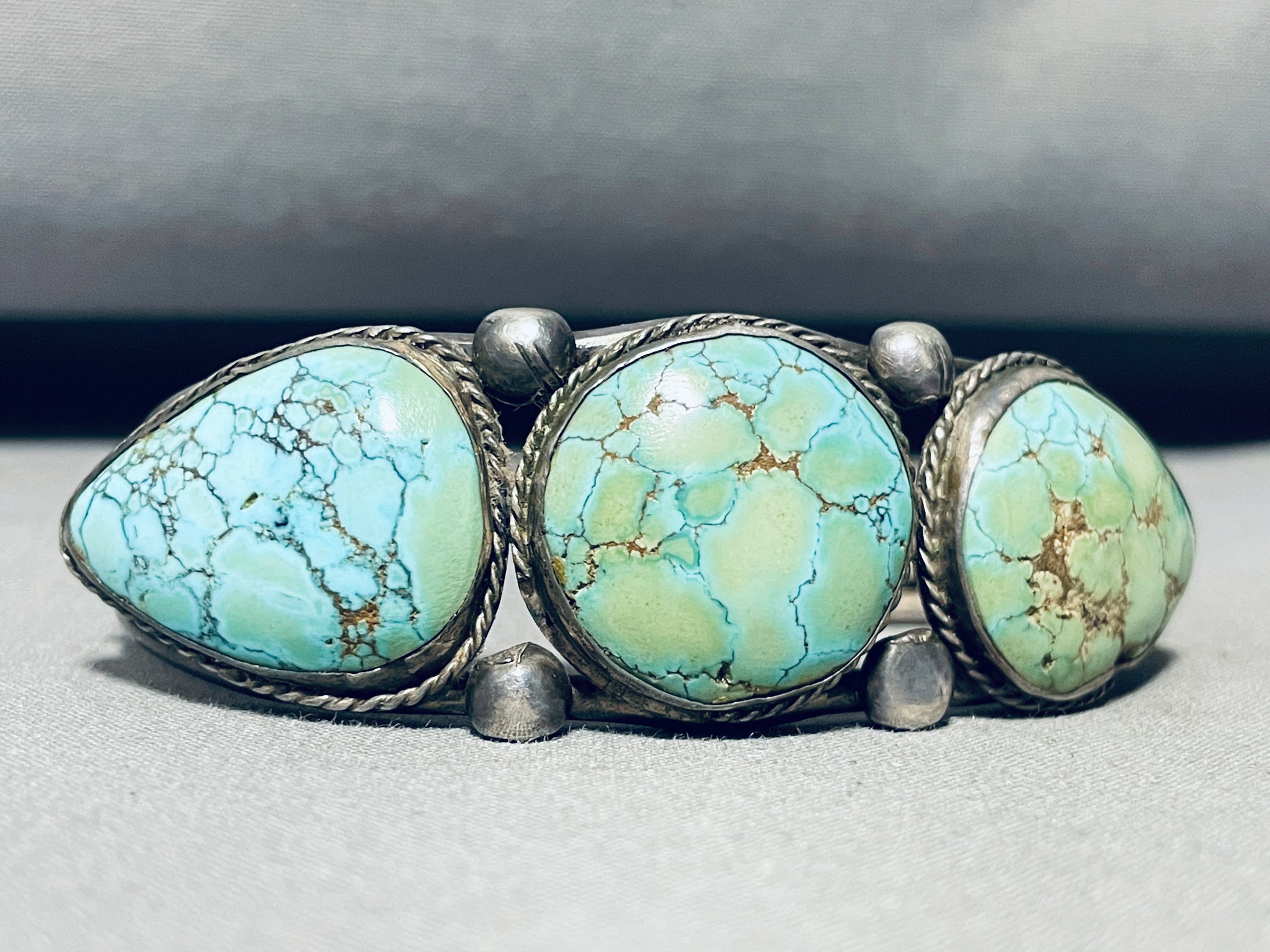 Highly Rare Nevada Blue Turquoise Mine Vintage Native American Navajo Sterling Silver Bracelet
