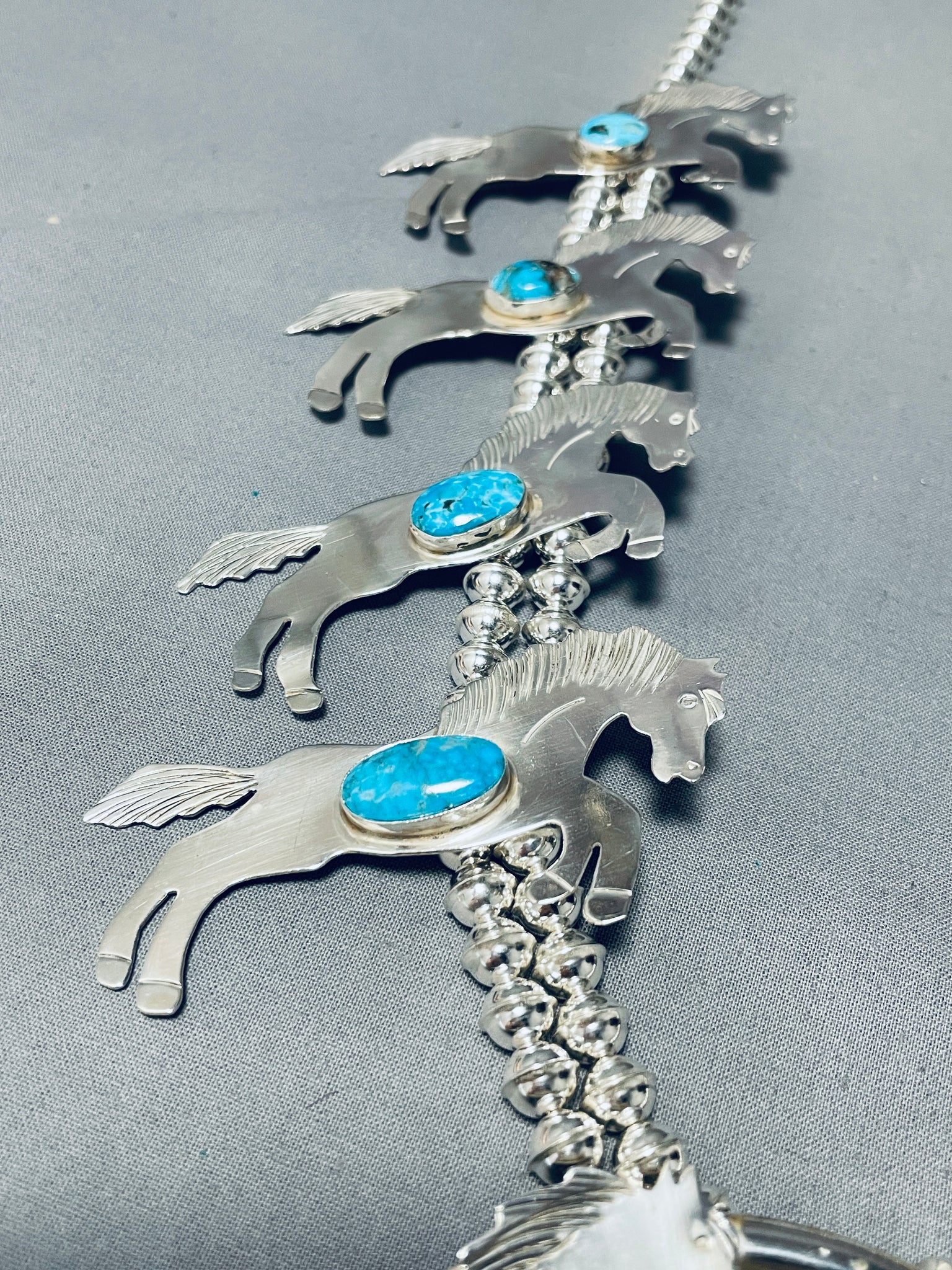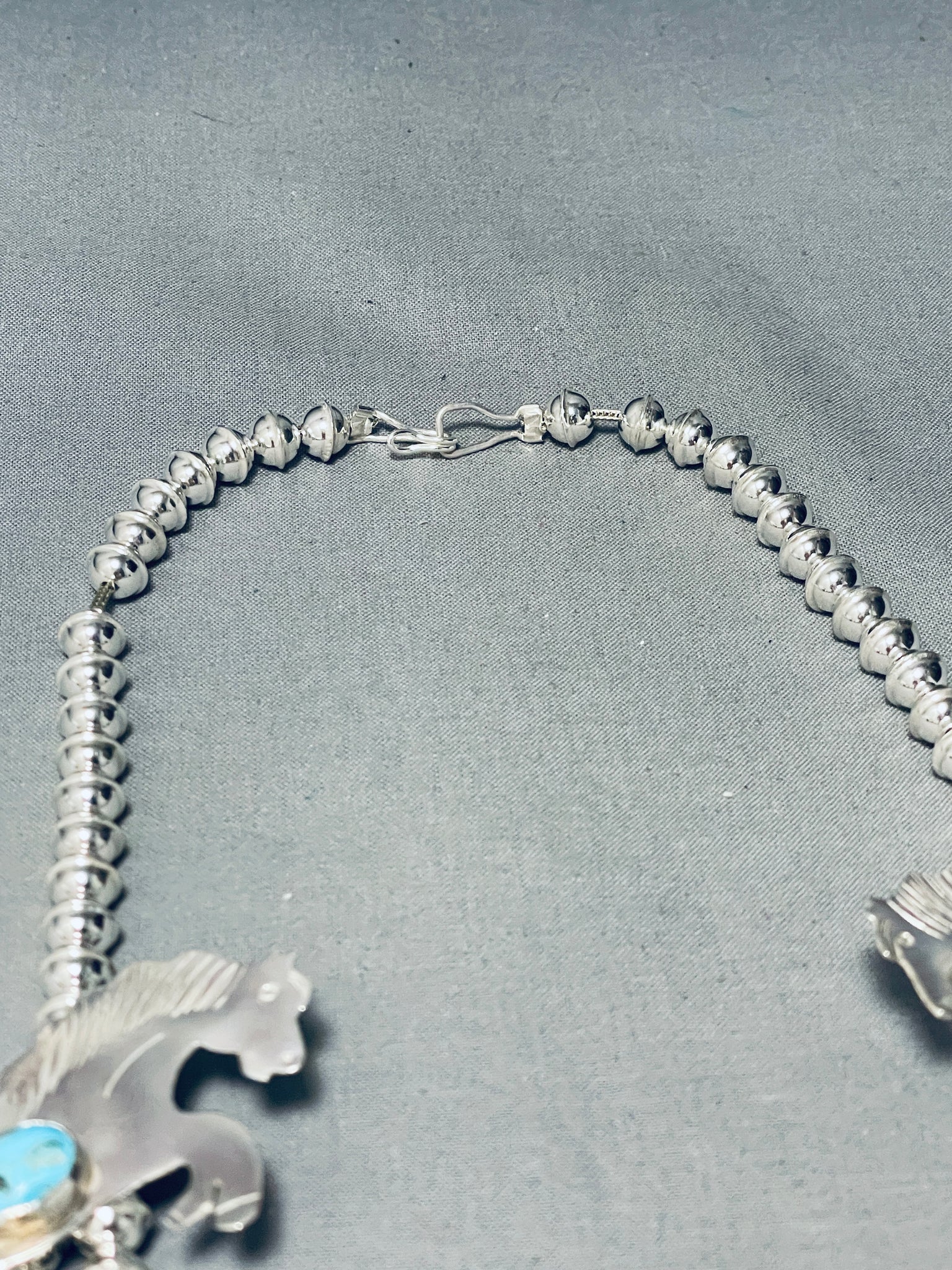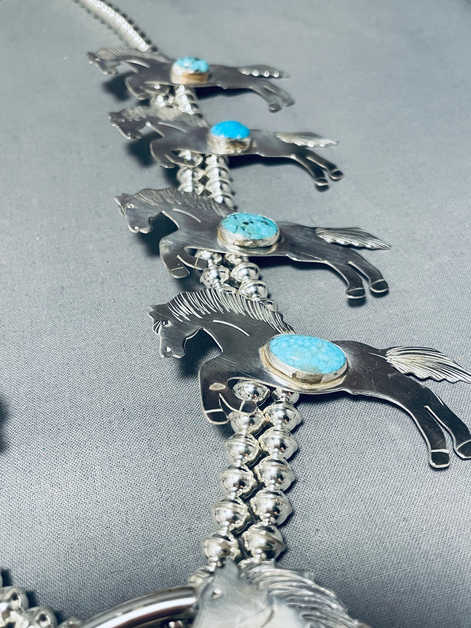 Horse Native American Navajo Turquoise Sterling Silver Squash Blossom Necklace- 190 Grams
