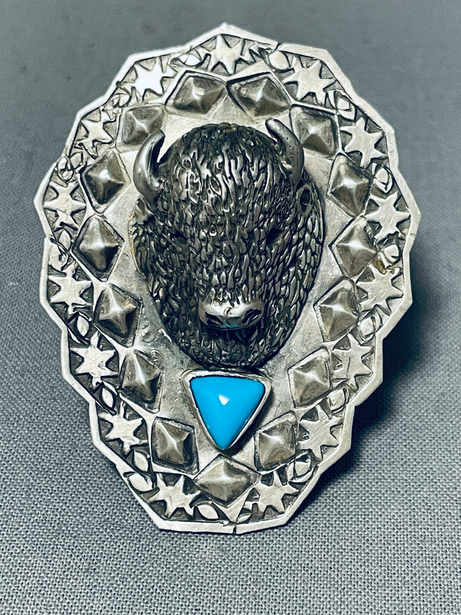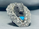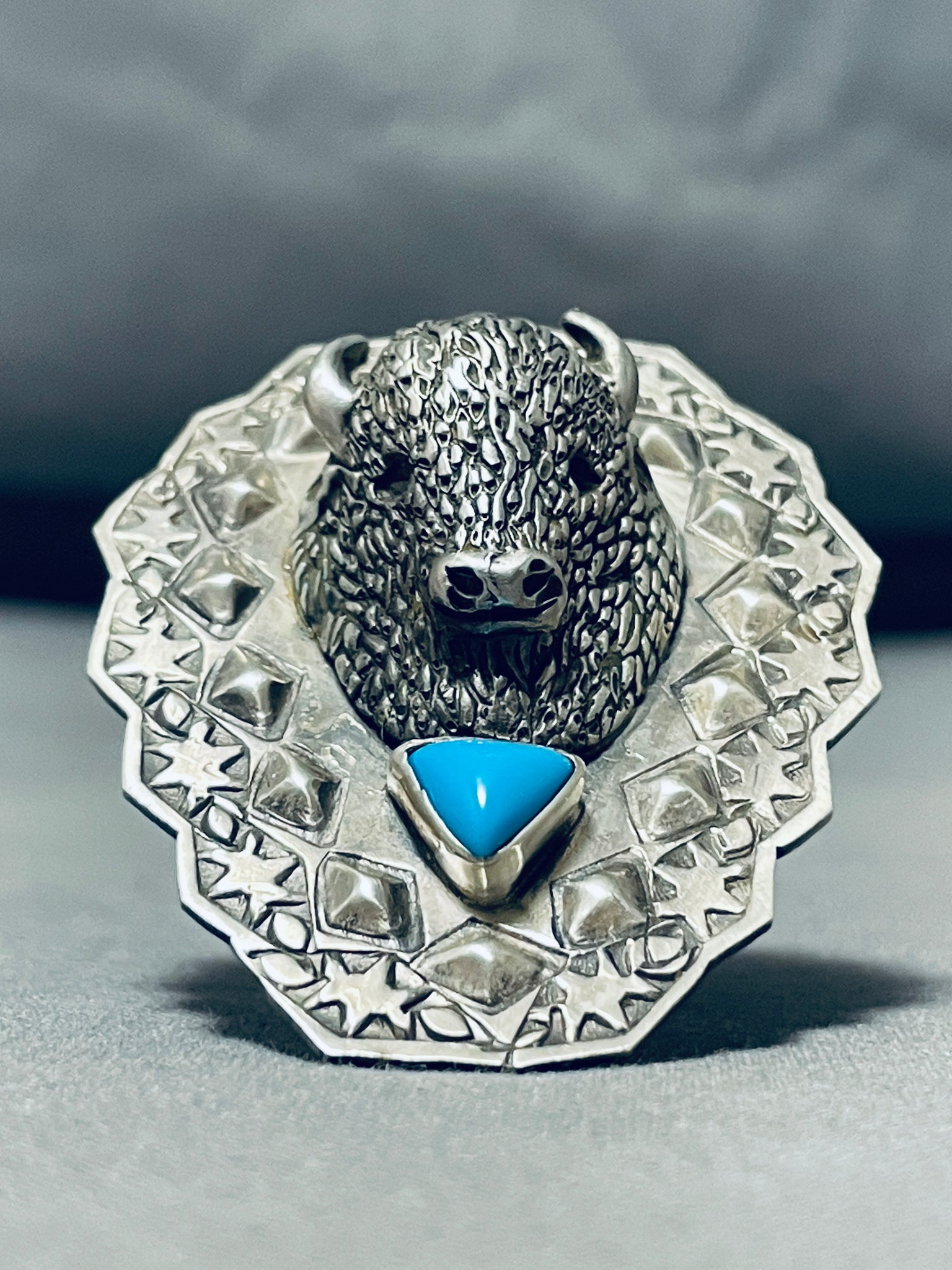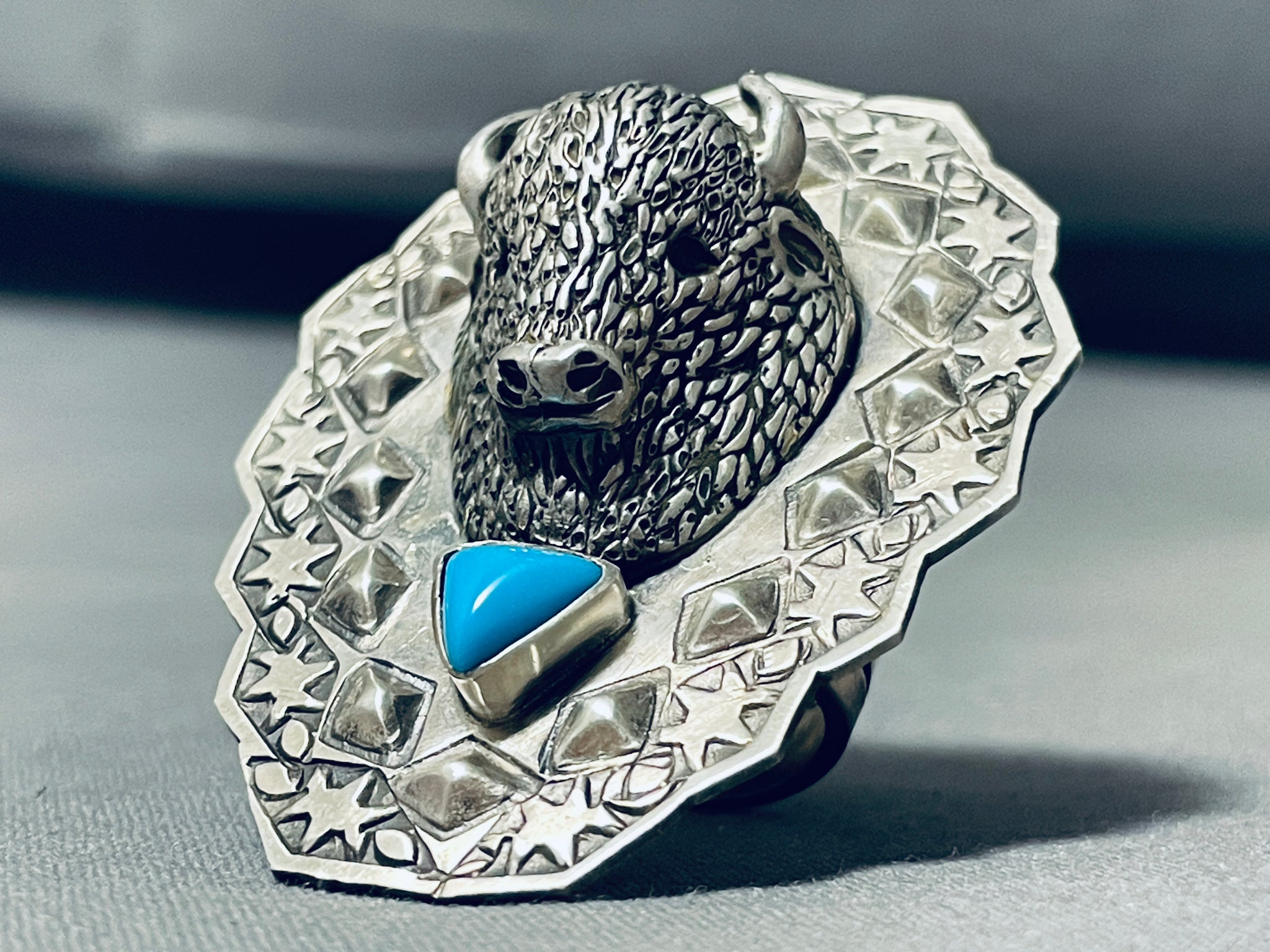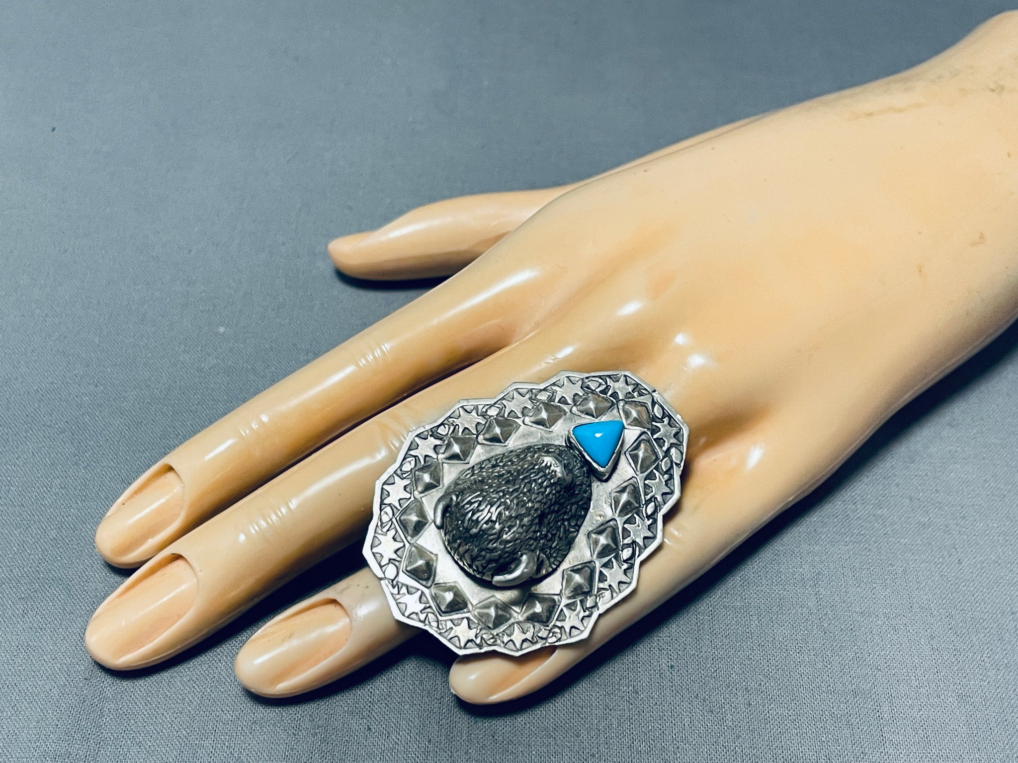 Huge 30 Gram Native American Bison Turquoise Sterling Silver Ring