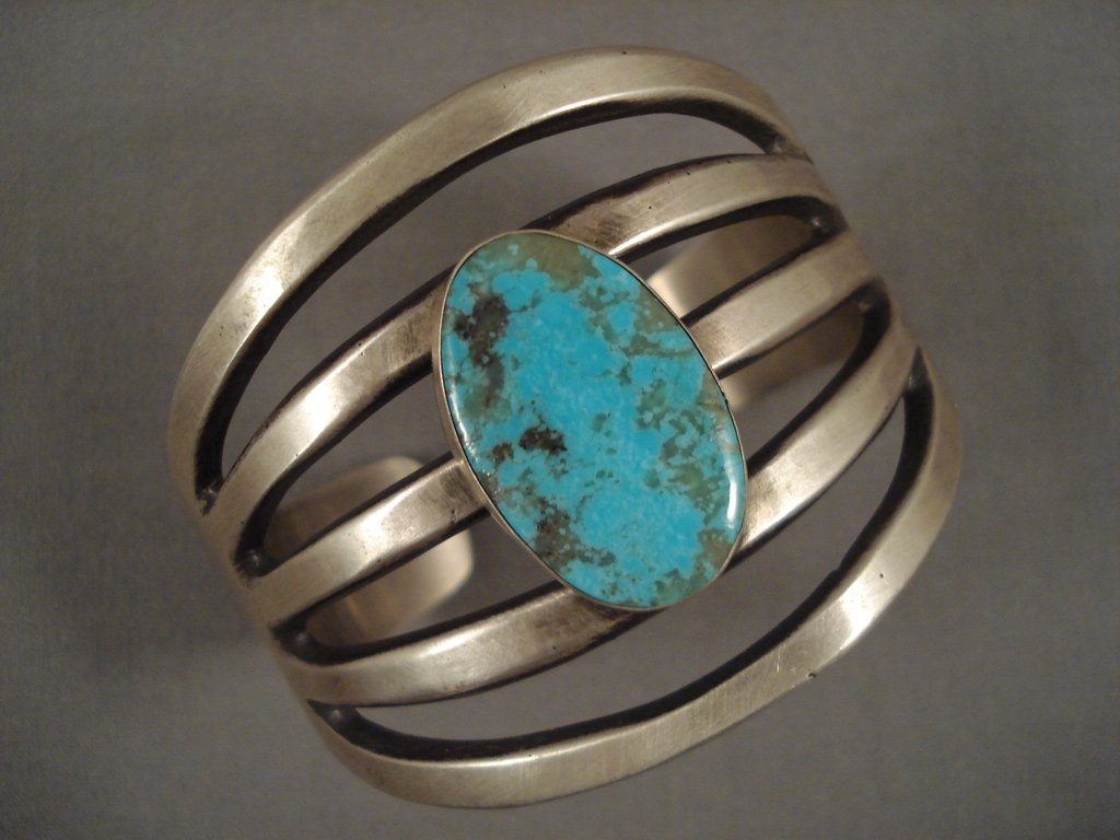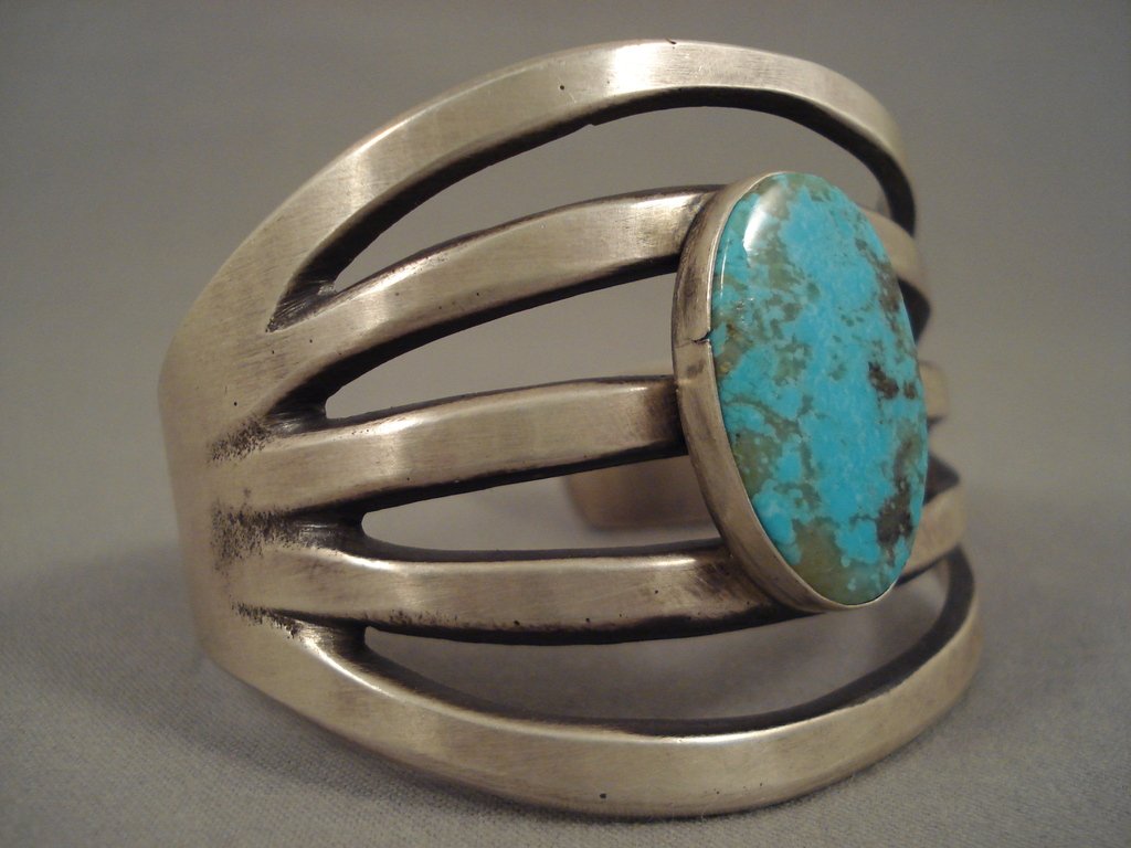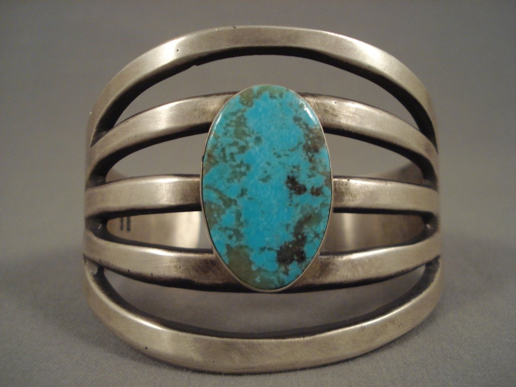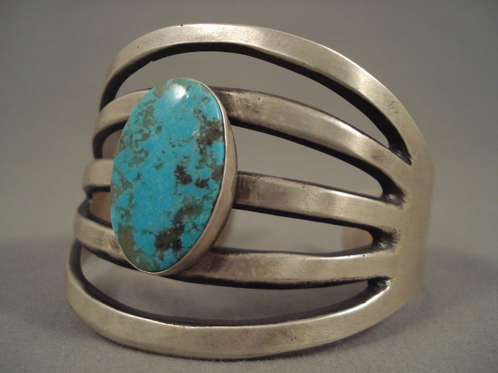 Huge 5-shank Royston Turquoise Native American Jewelry Silver Bracelet