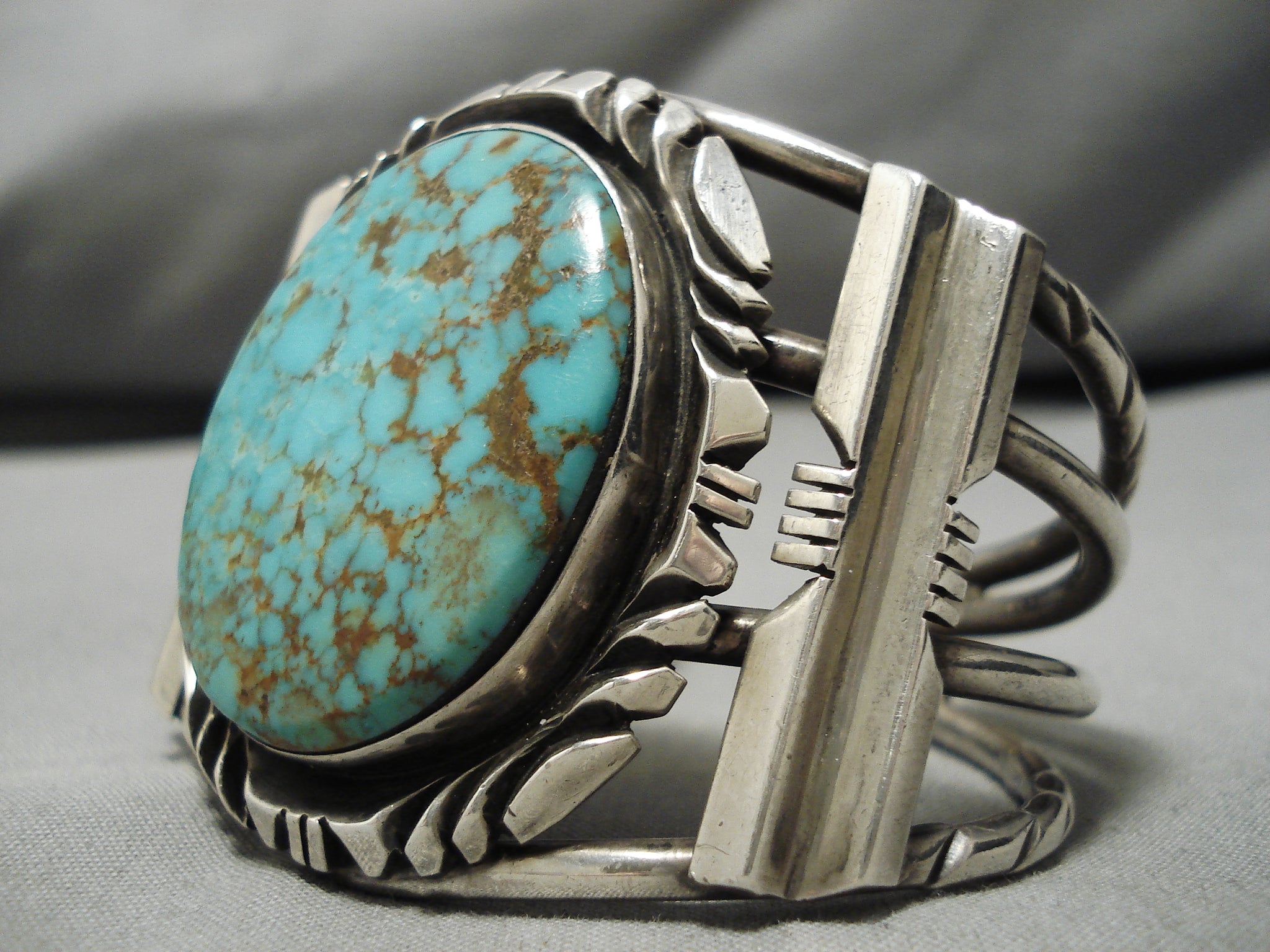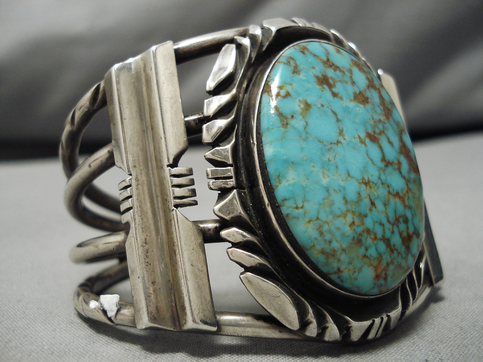 Huge And Heavy Vintage Native American Navajo Royston Turquoise Sterling Silver Bracelet Old