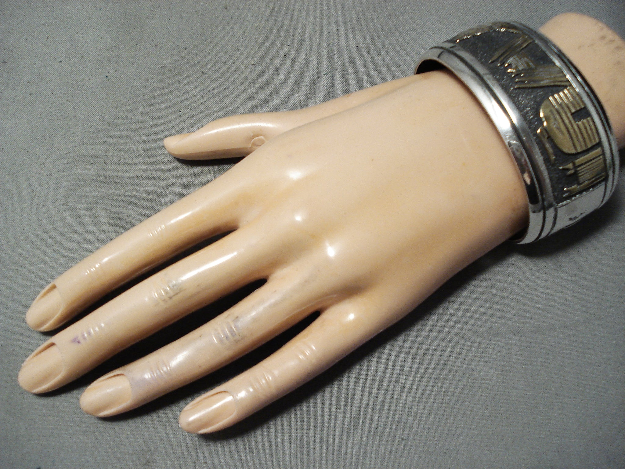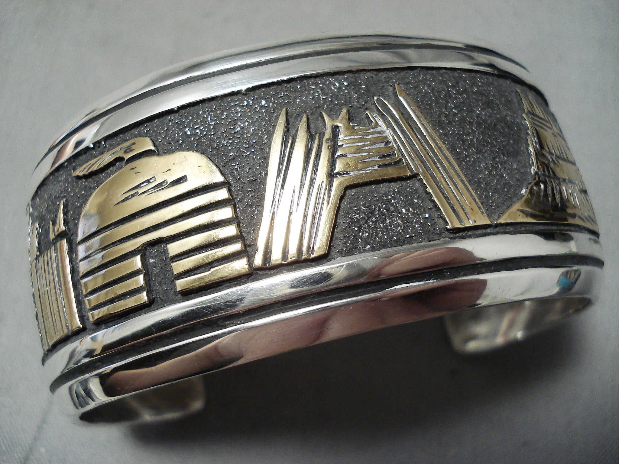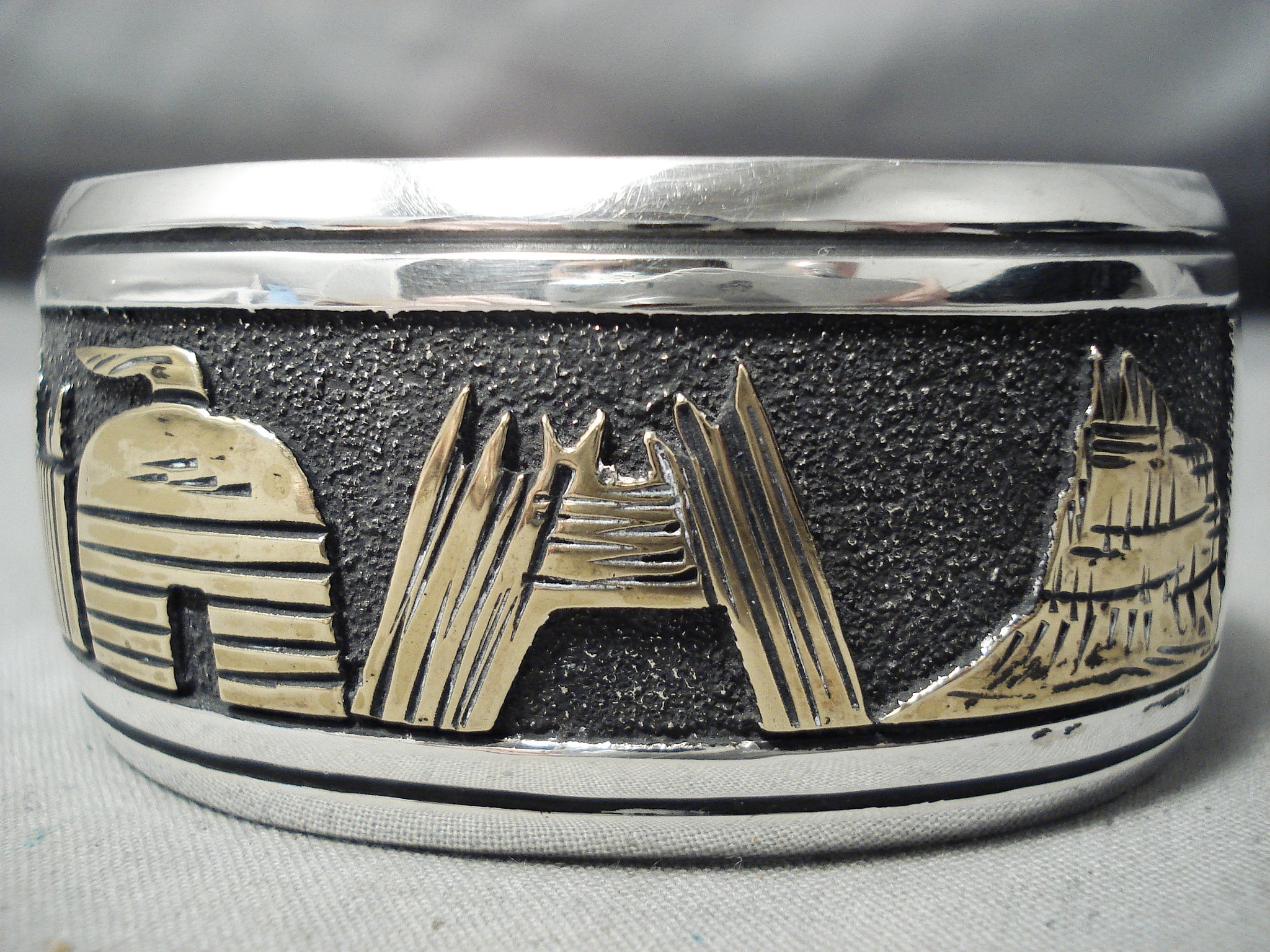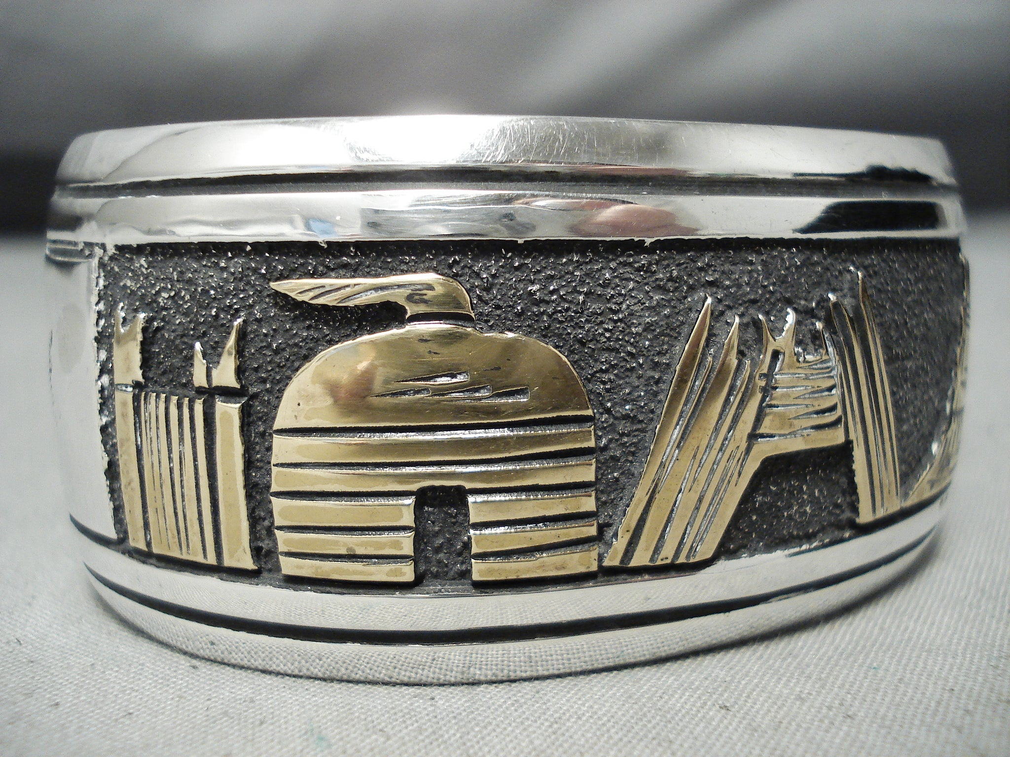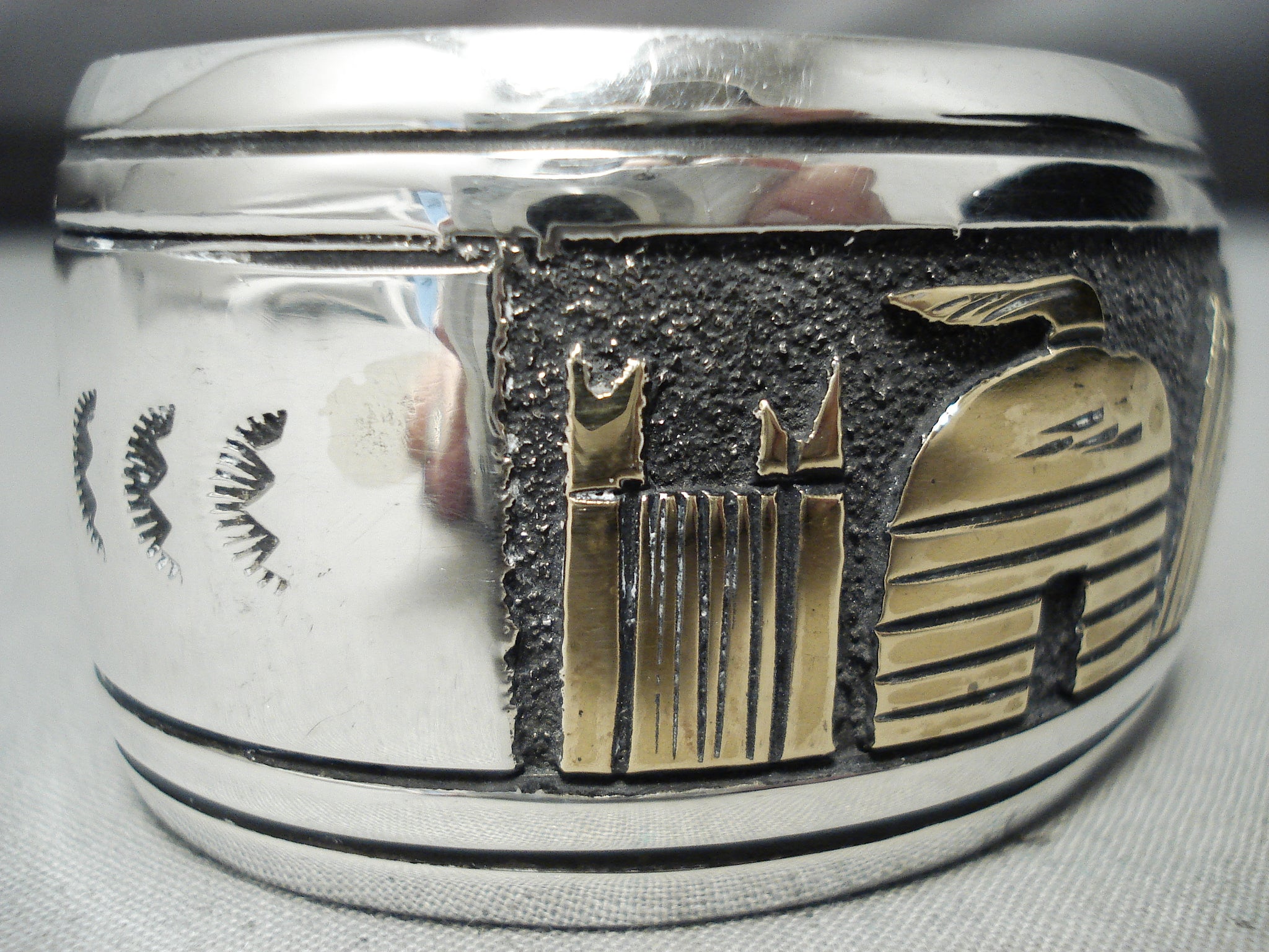 Huge Authentic Thomas Singer Vintage Native American Navajo Sterling Silver Gold Bracelet