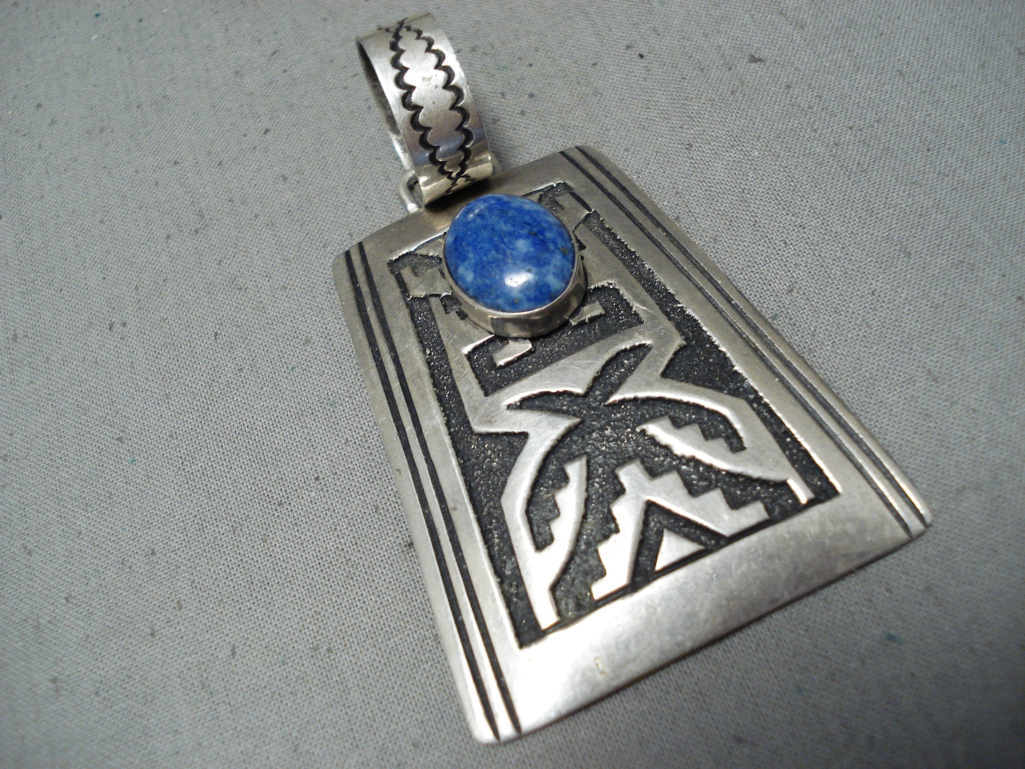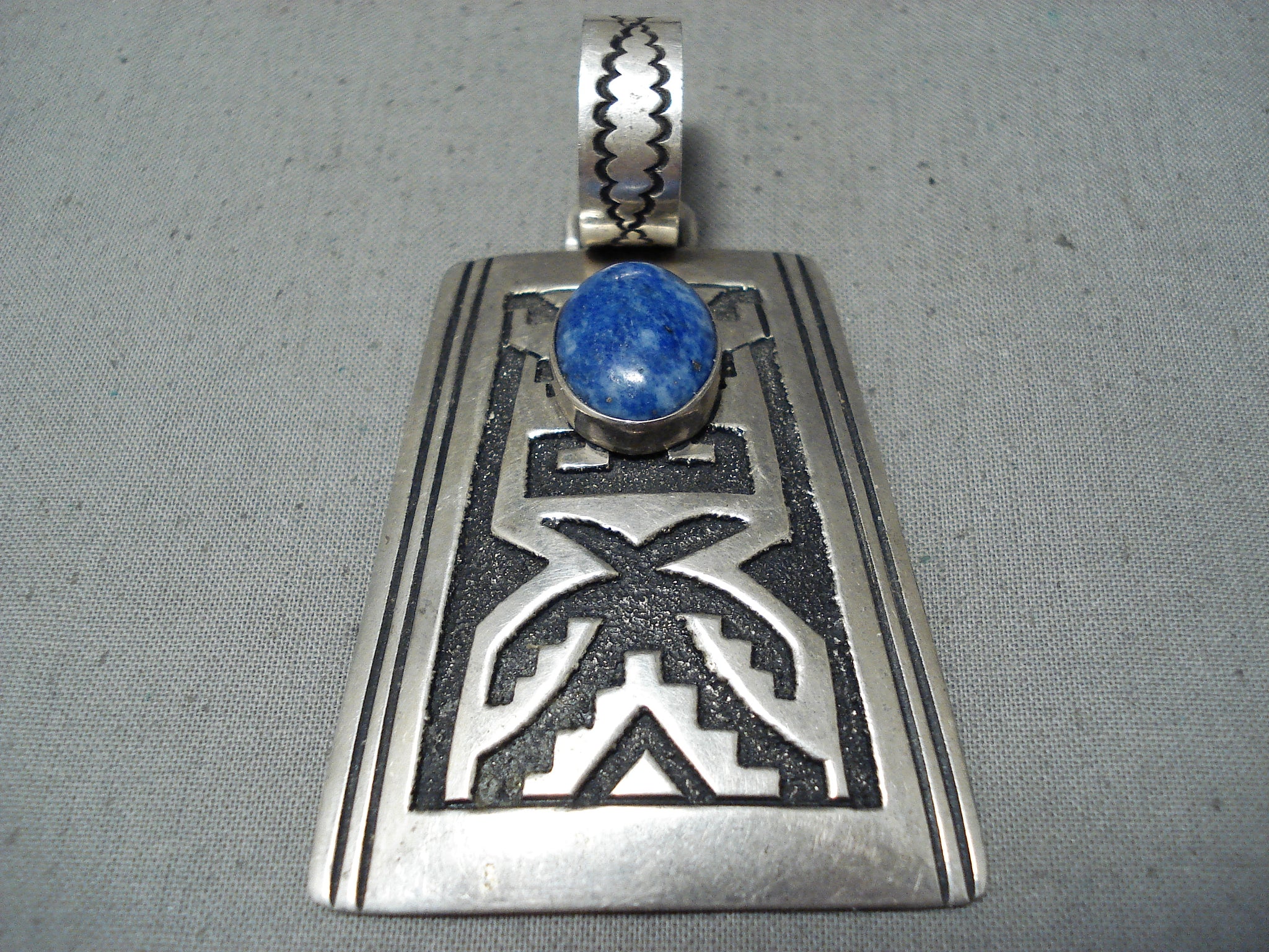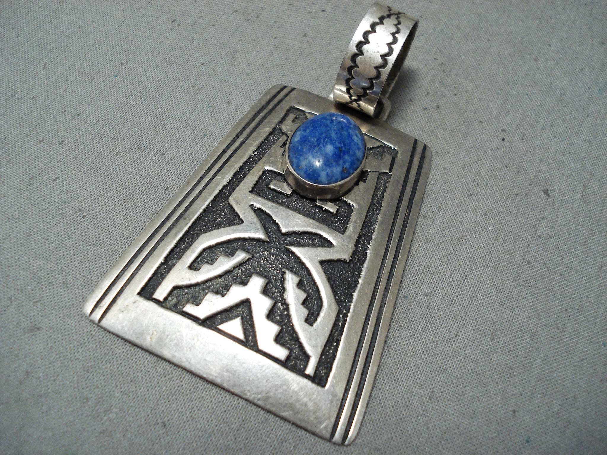 Huge Authentic Vintage Native American Navajo Thomas Singer Sterling Silver Lapis Pendant