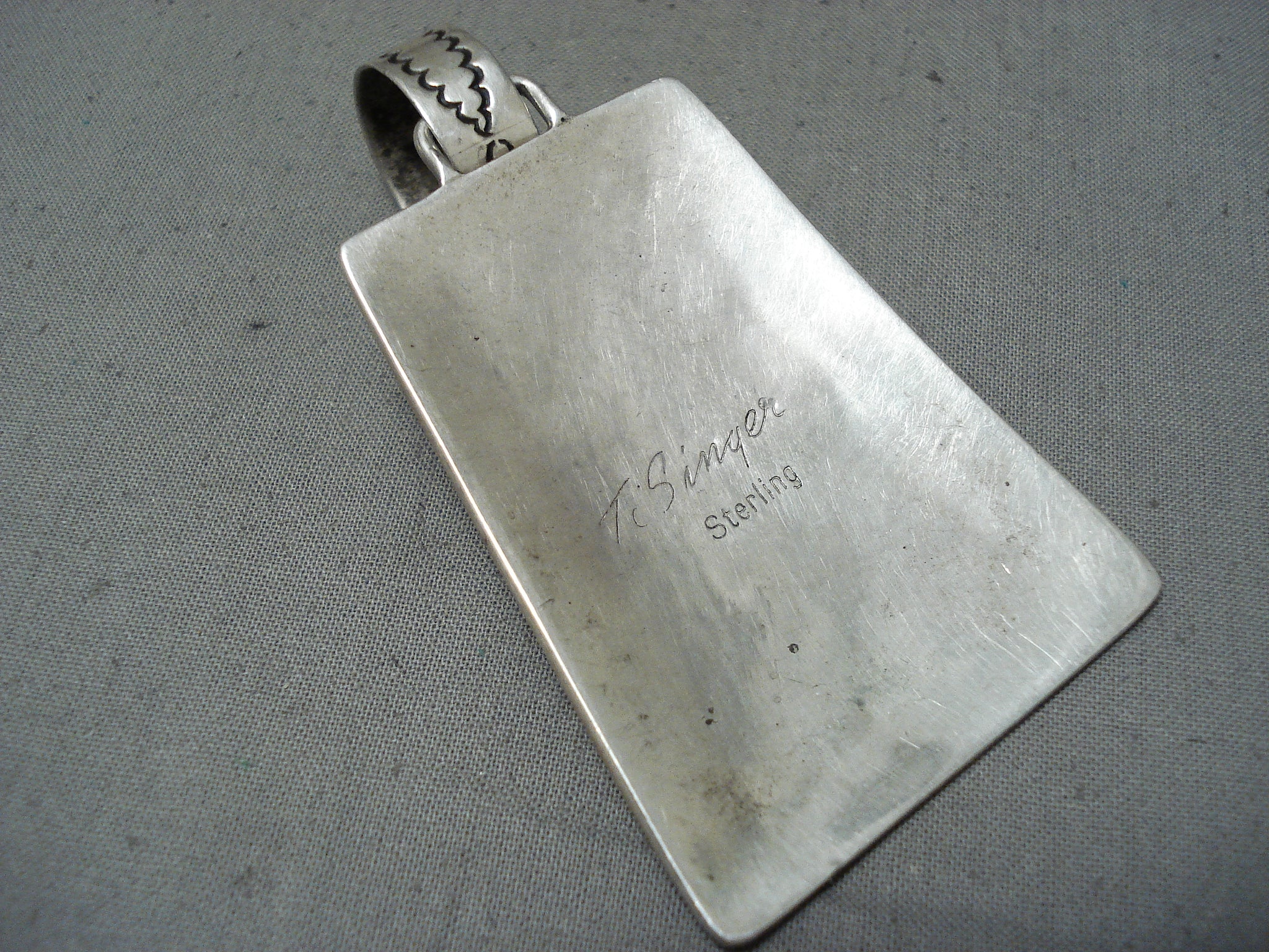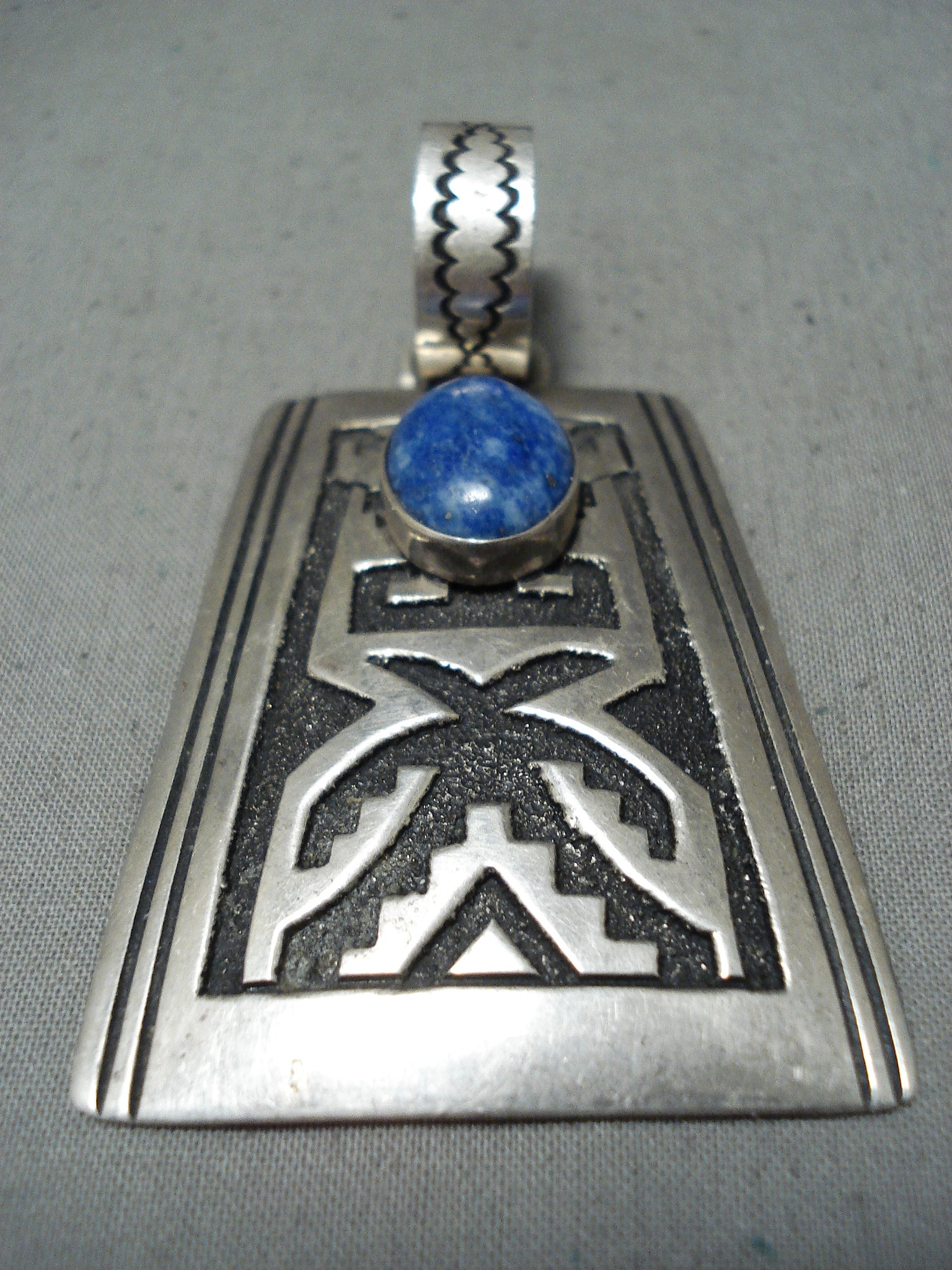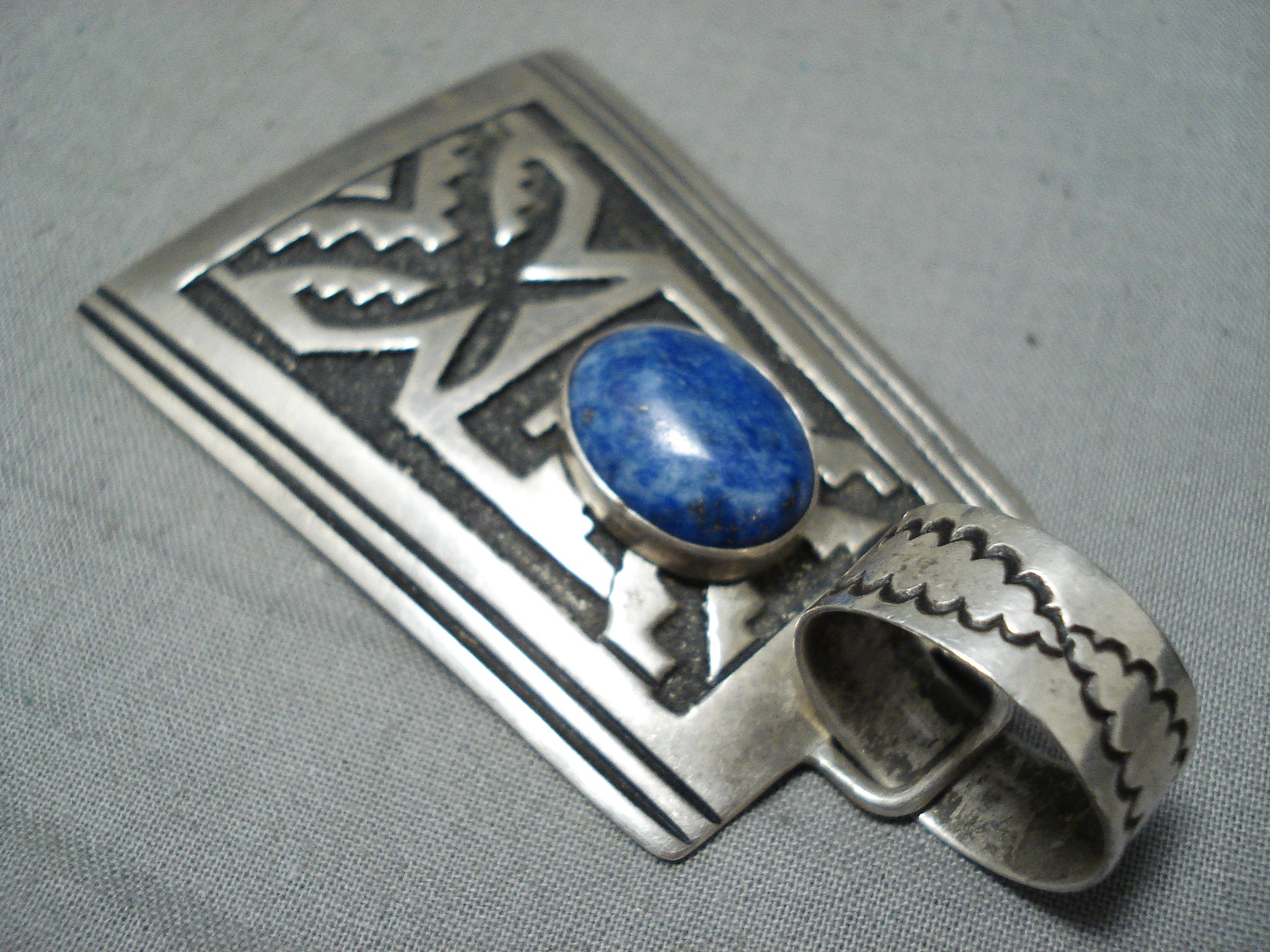 Huge Authentic Vintage Native American Navajo Thomas Singer Sterling Silver Lapis Pendant