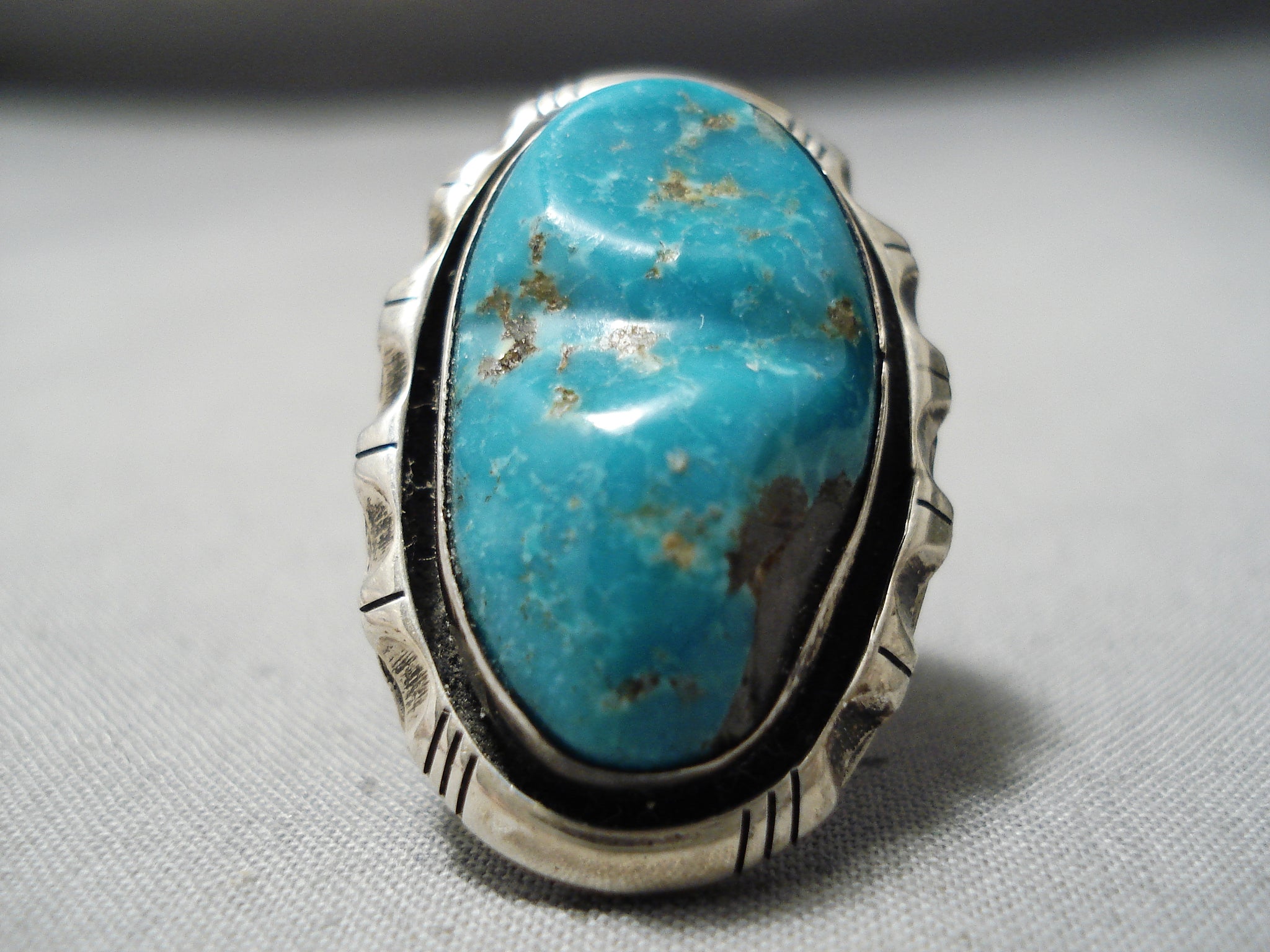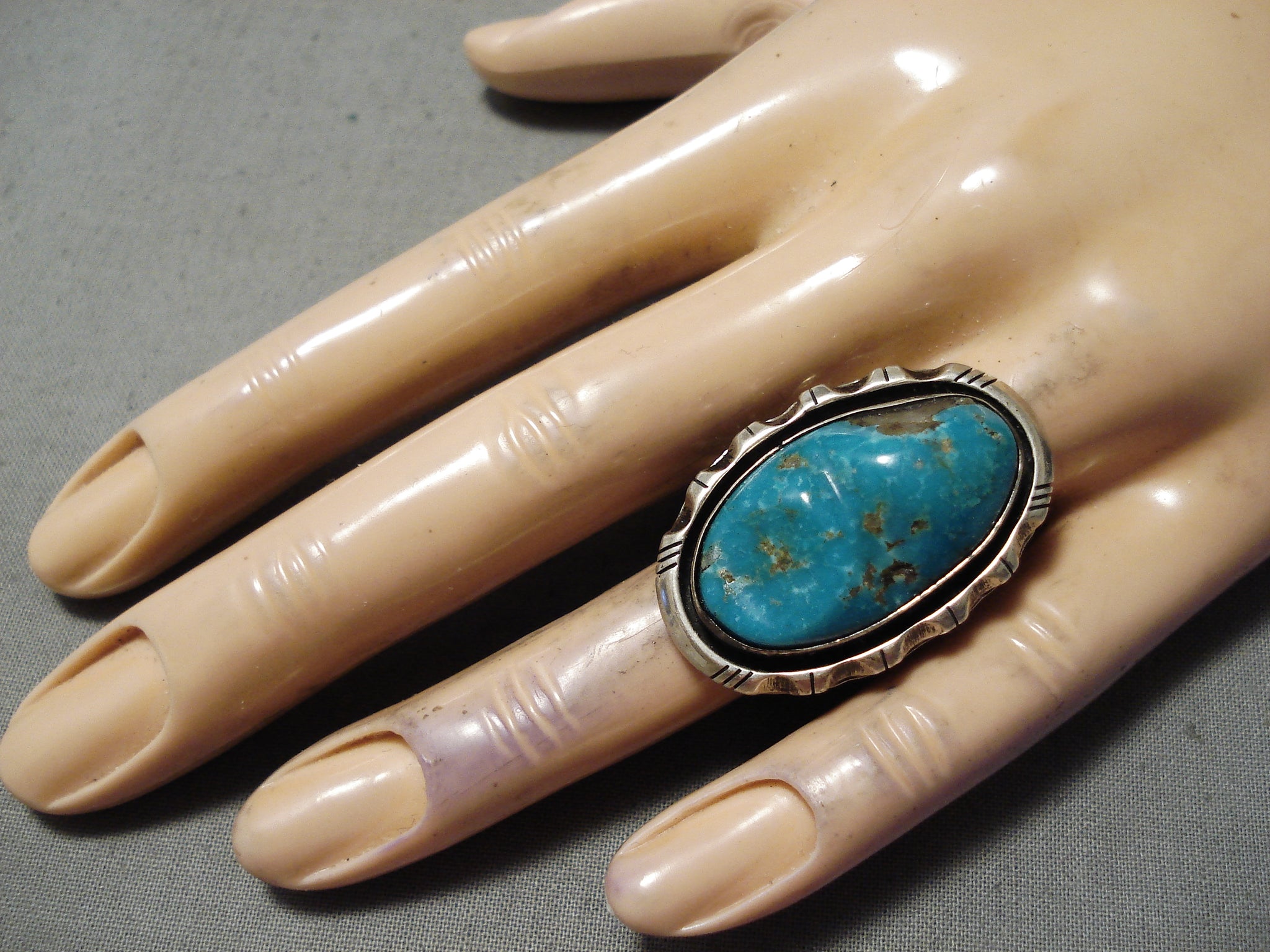 Huge Bea Johnson Vintage Native American Navajo Turquoise Sterling Silver Ring