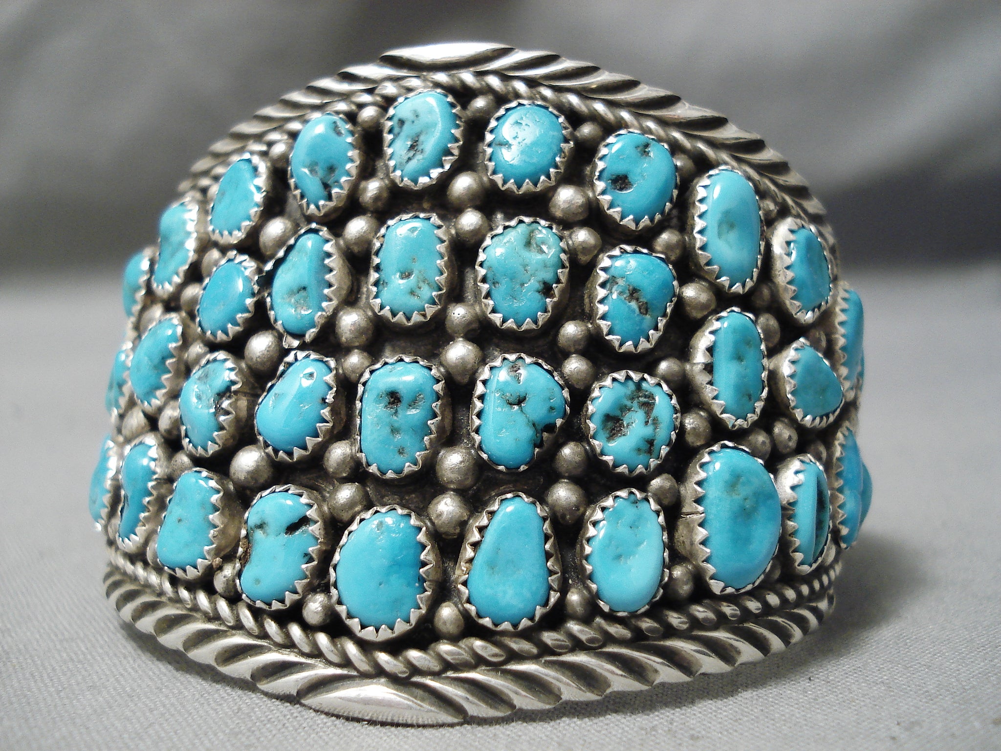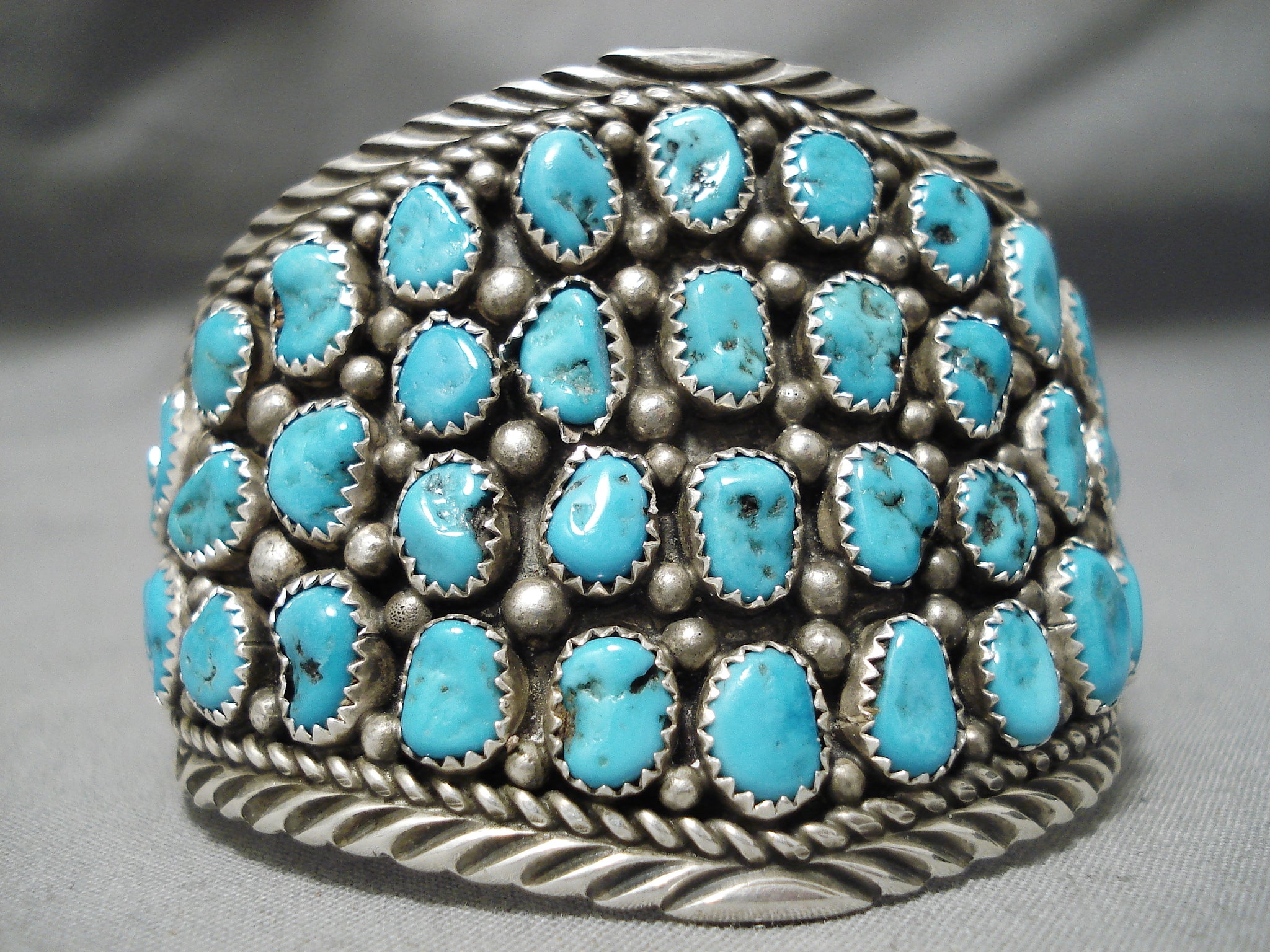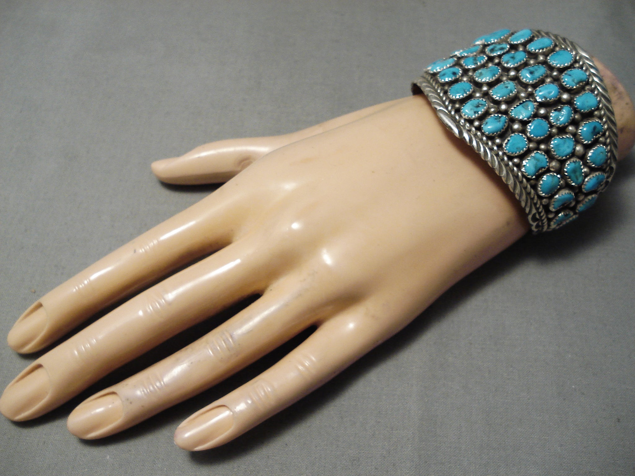 Huge Big Wide Vintage Native American Navajo Turquoise Collection Sterling Silver Bracelet