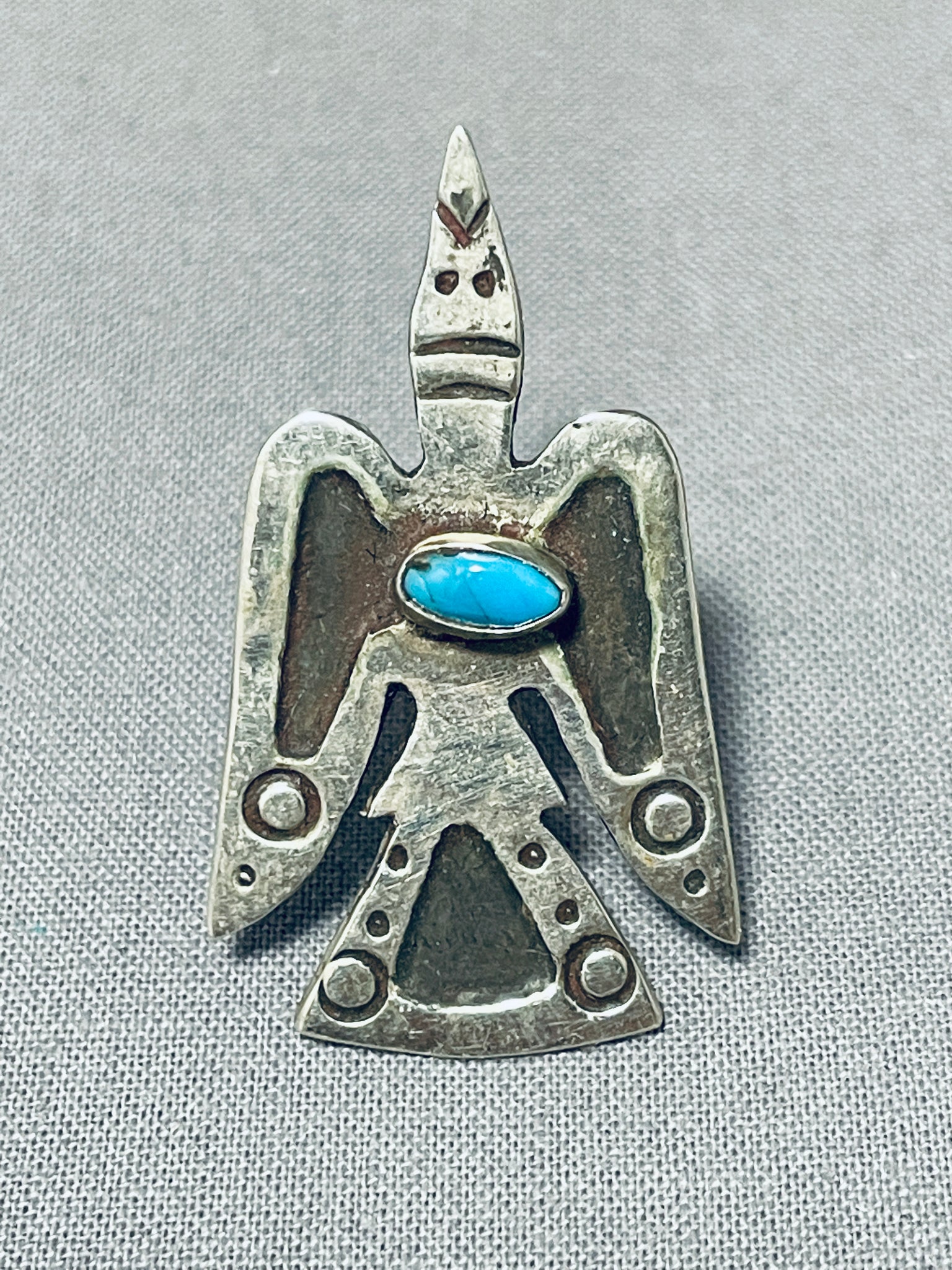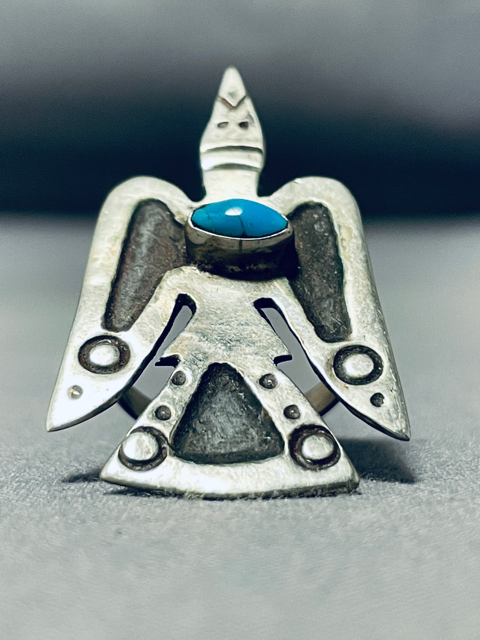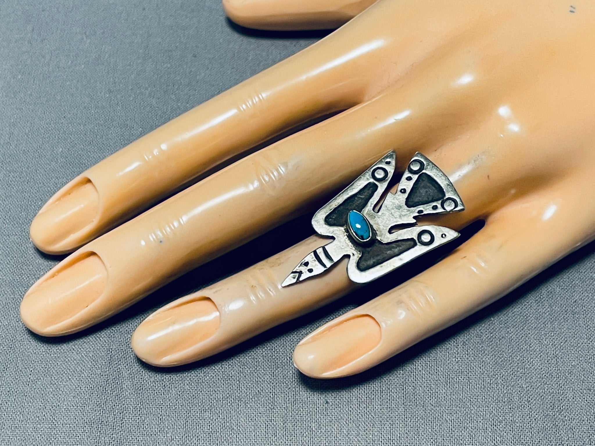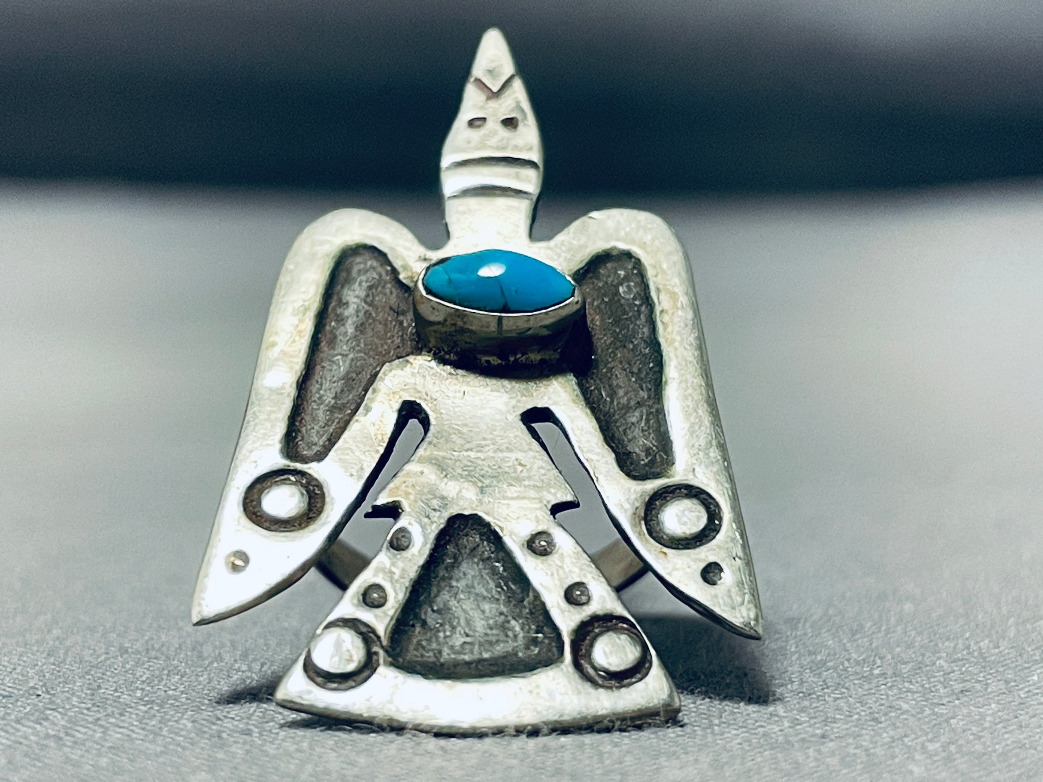 Huge Bird Vintage Native American Navajo Turquoise Sterling Silver Ring