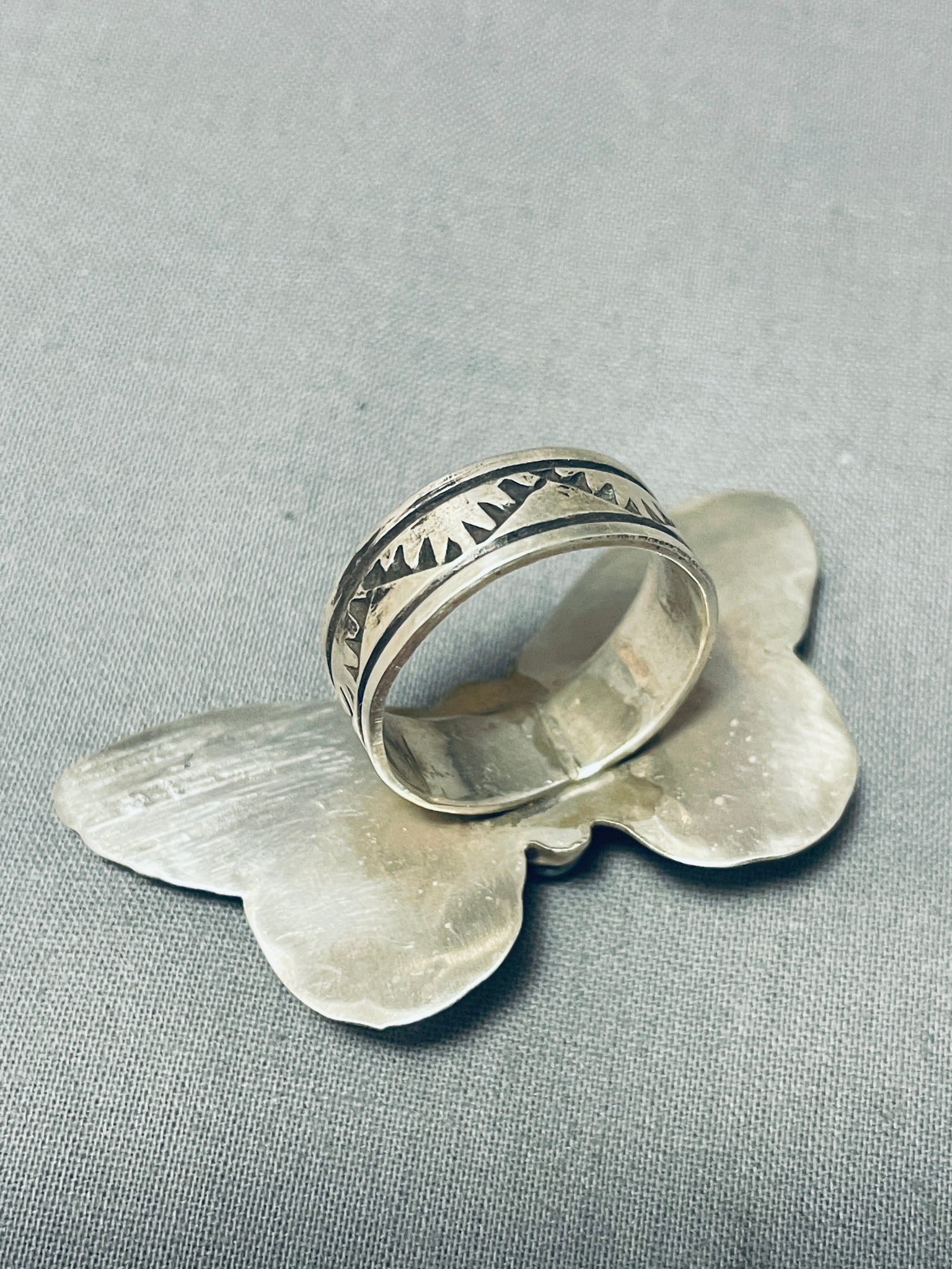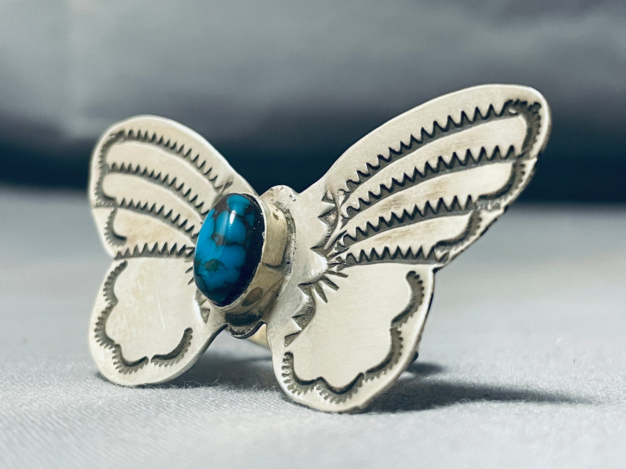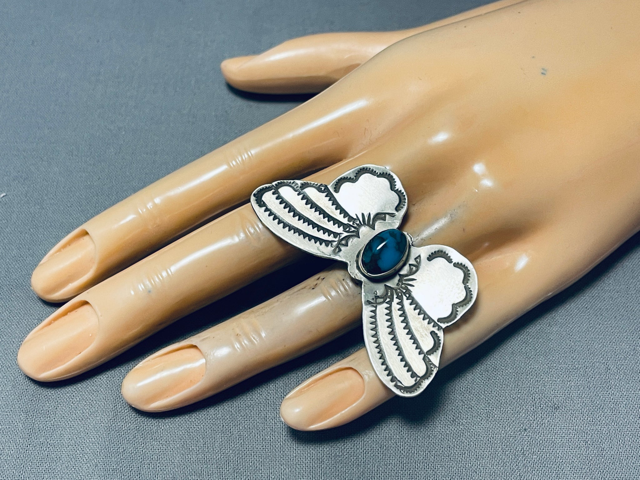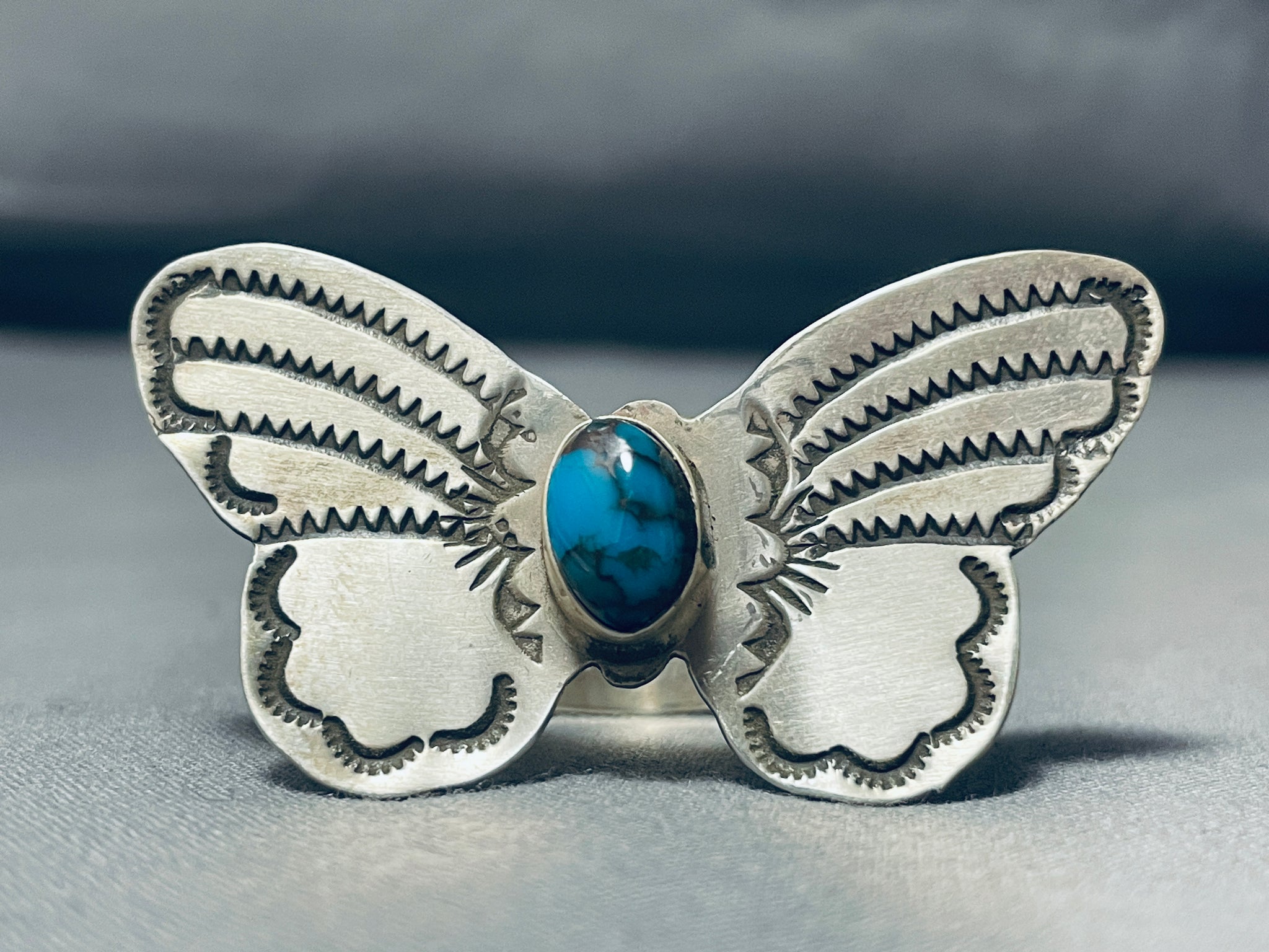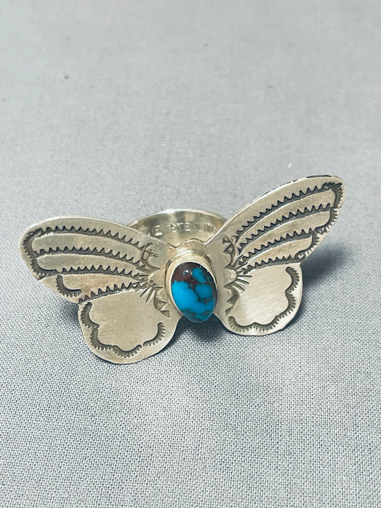 Huge Bisbee Turquoise Native American Navajo Butterfly Sterling Silver Ring