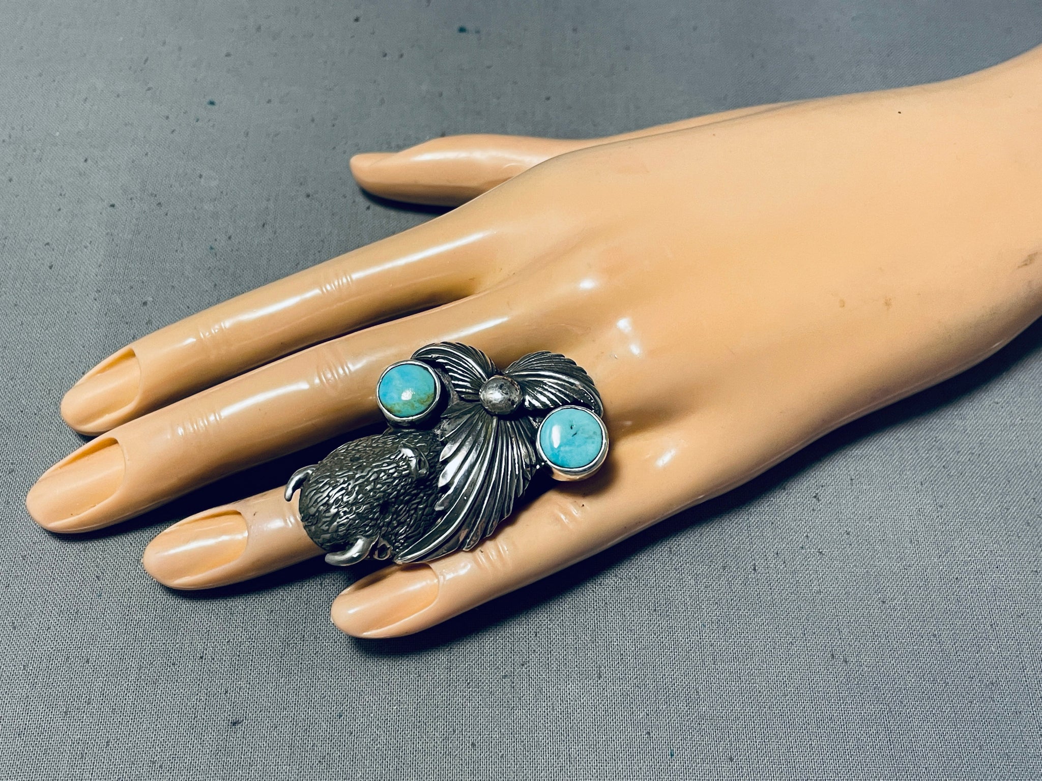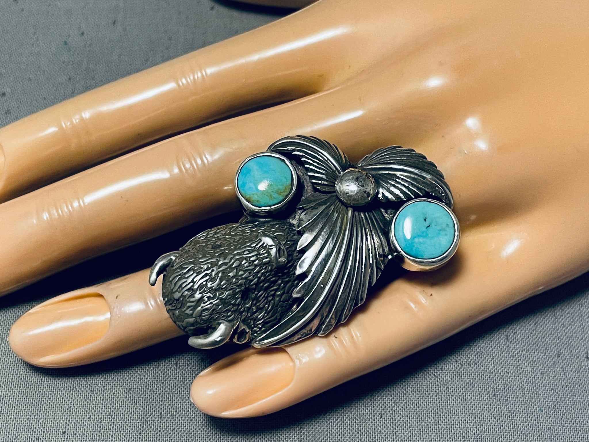 Huge Buffalo Native American Turquoise Sterling Silver Ring